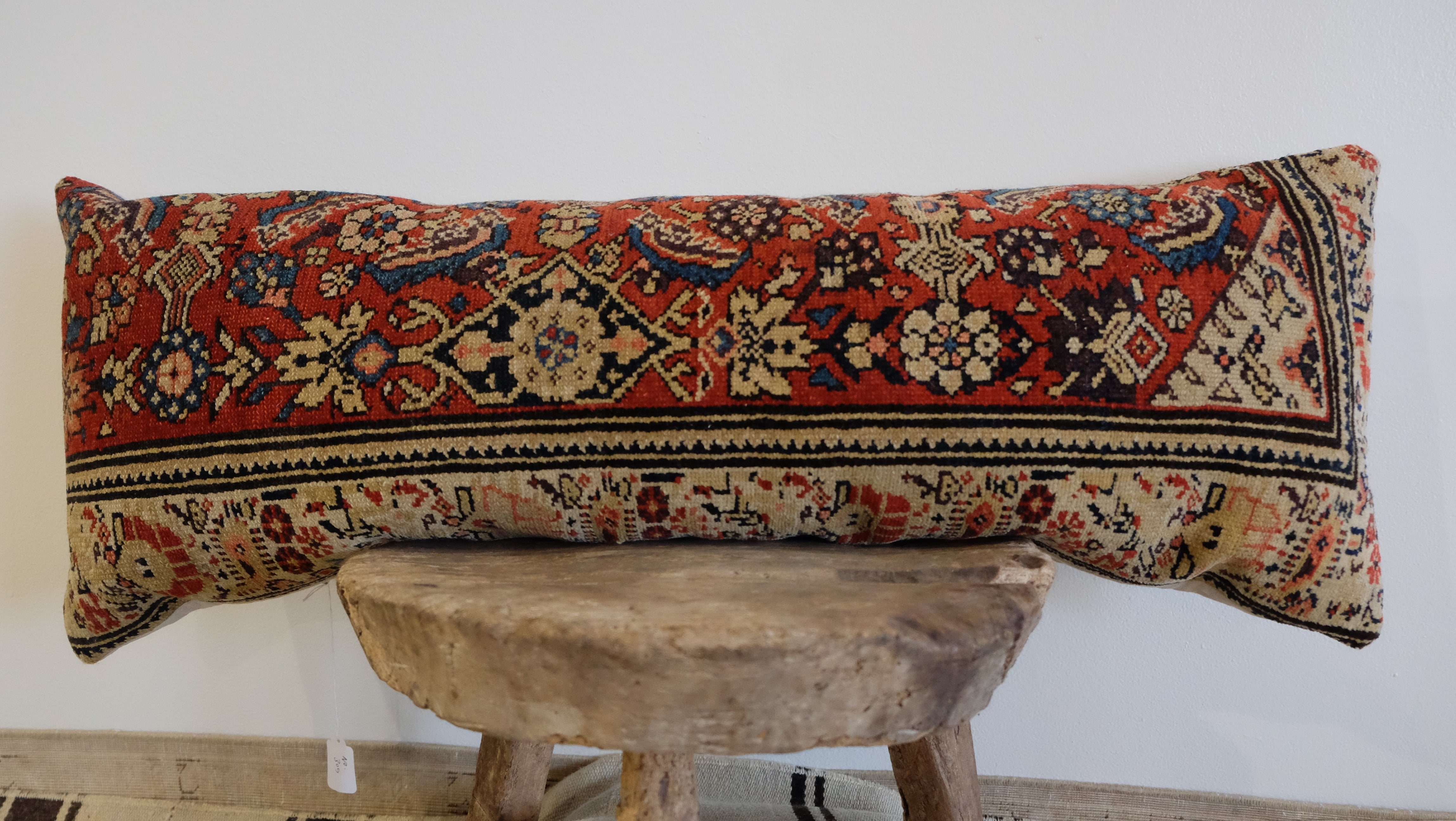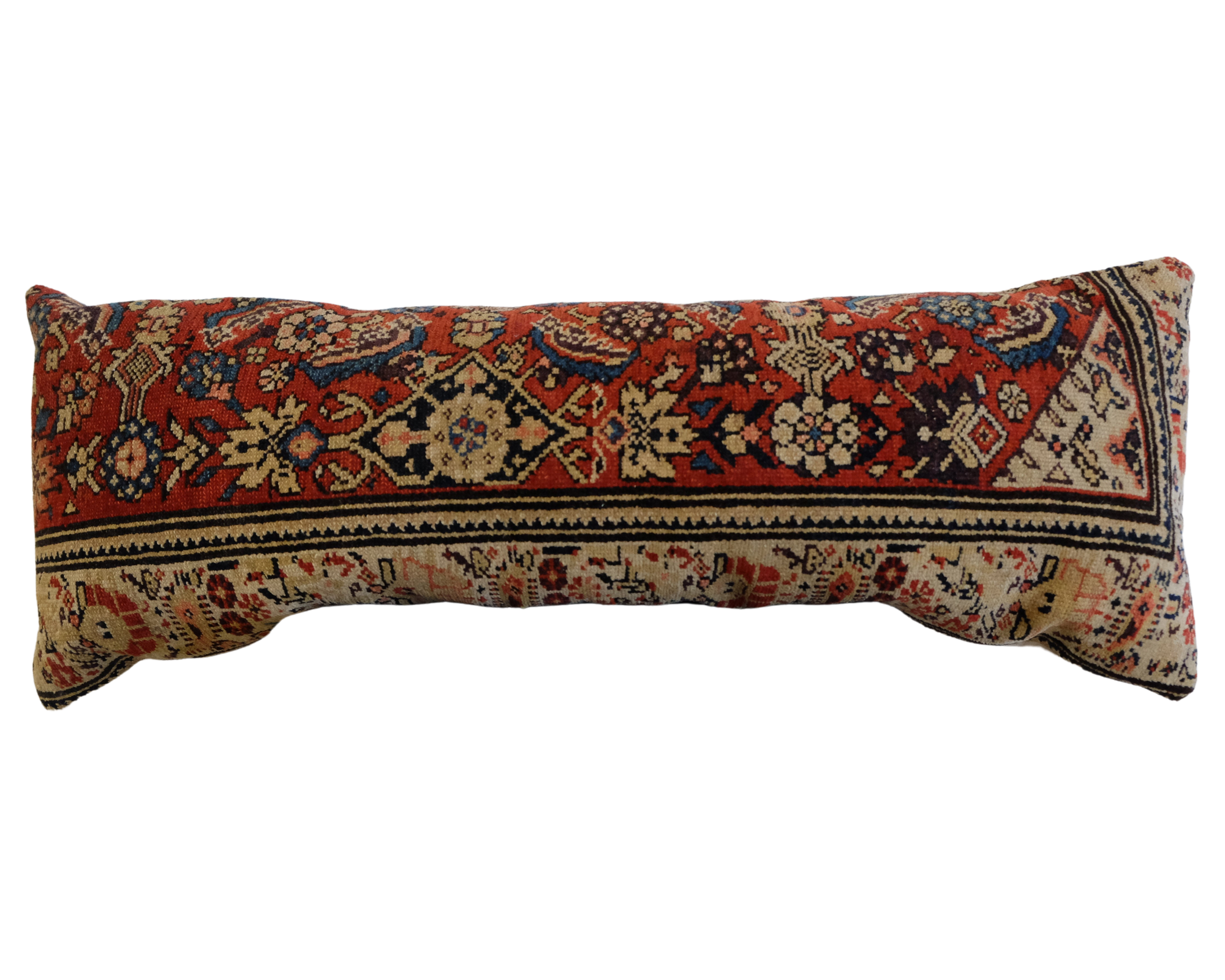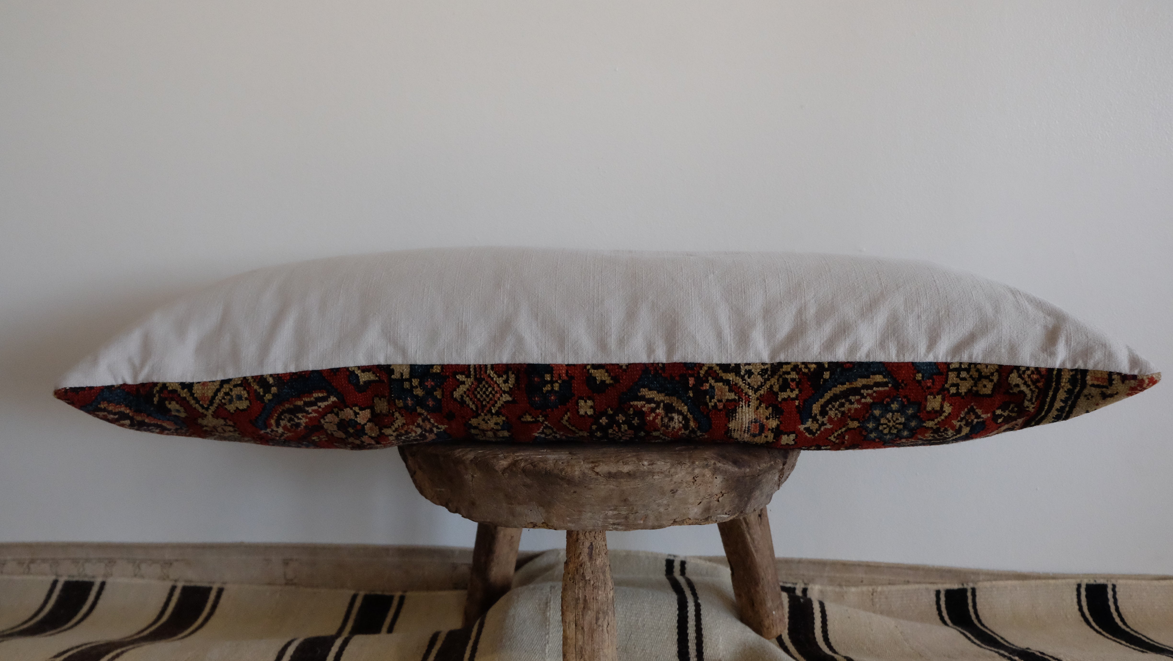 Antique Persian Malayer rug pillow with a greige cotton backing. Down and feather insert included