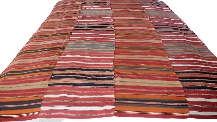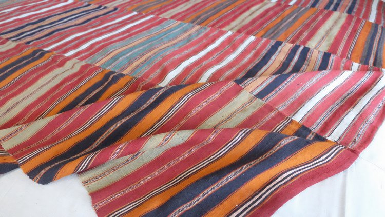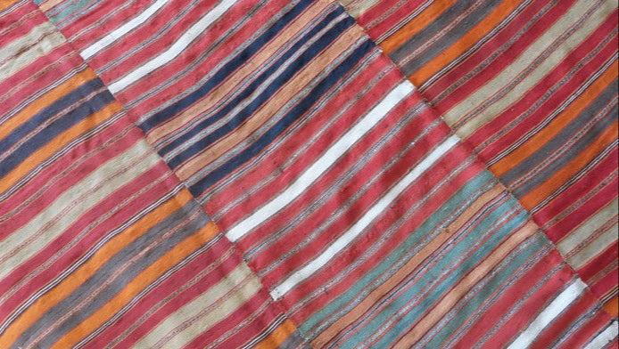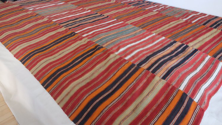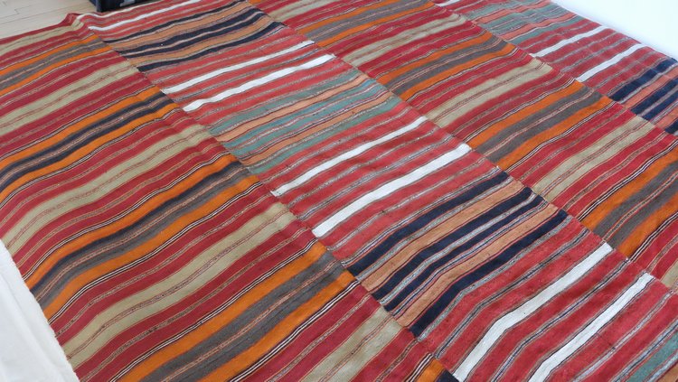 Turn of the century striped kilim in deep red, navy, emerald, orange and ivory