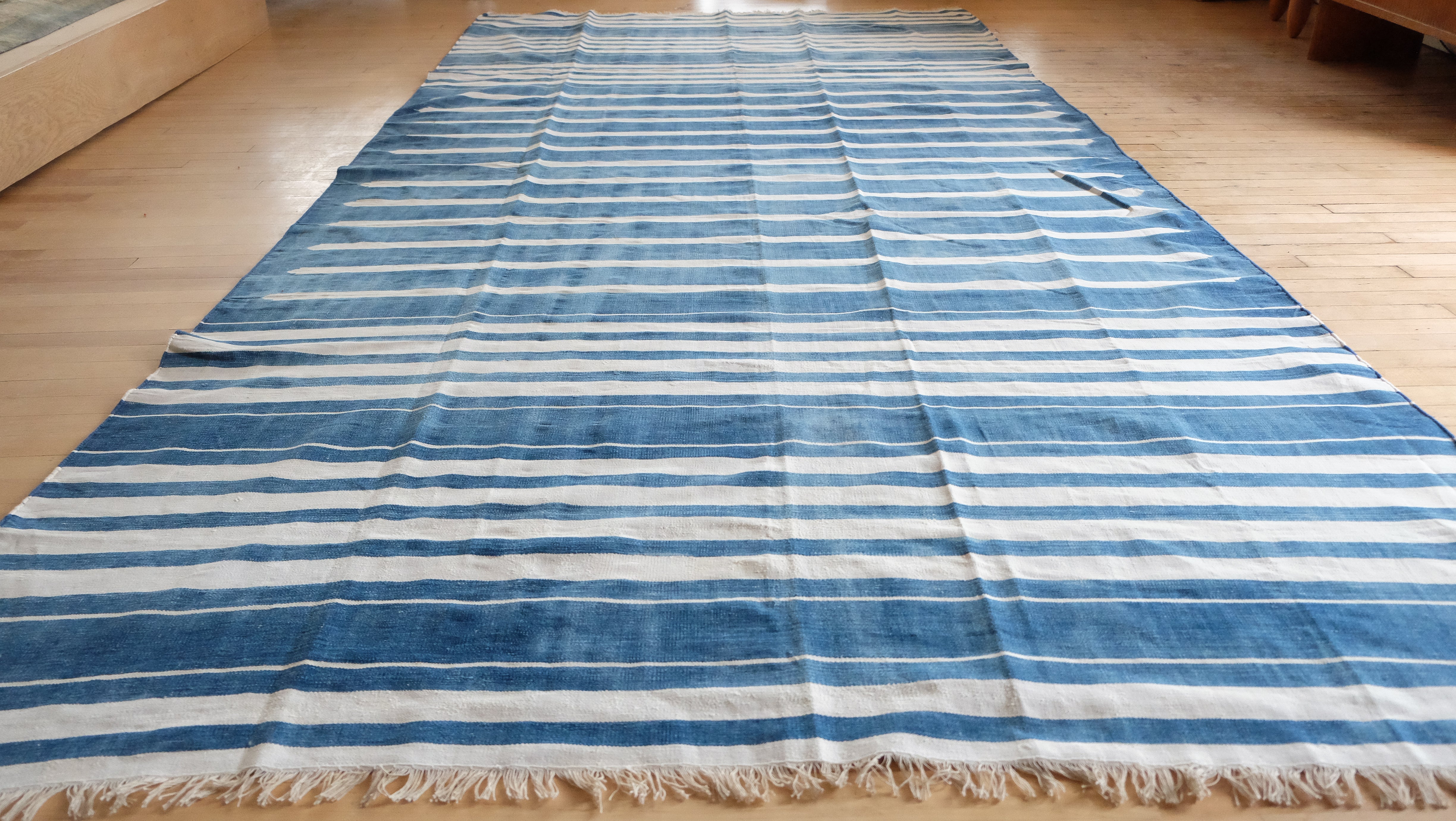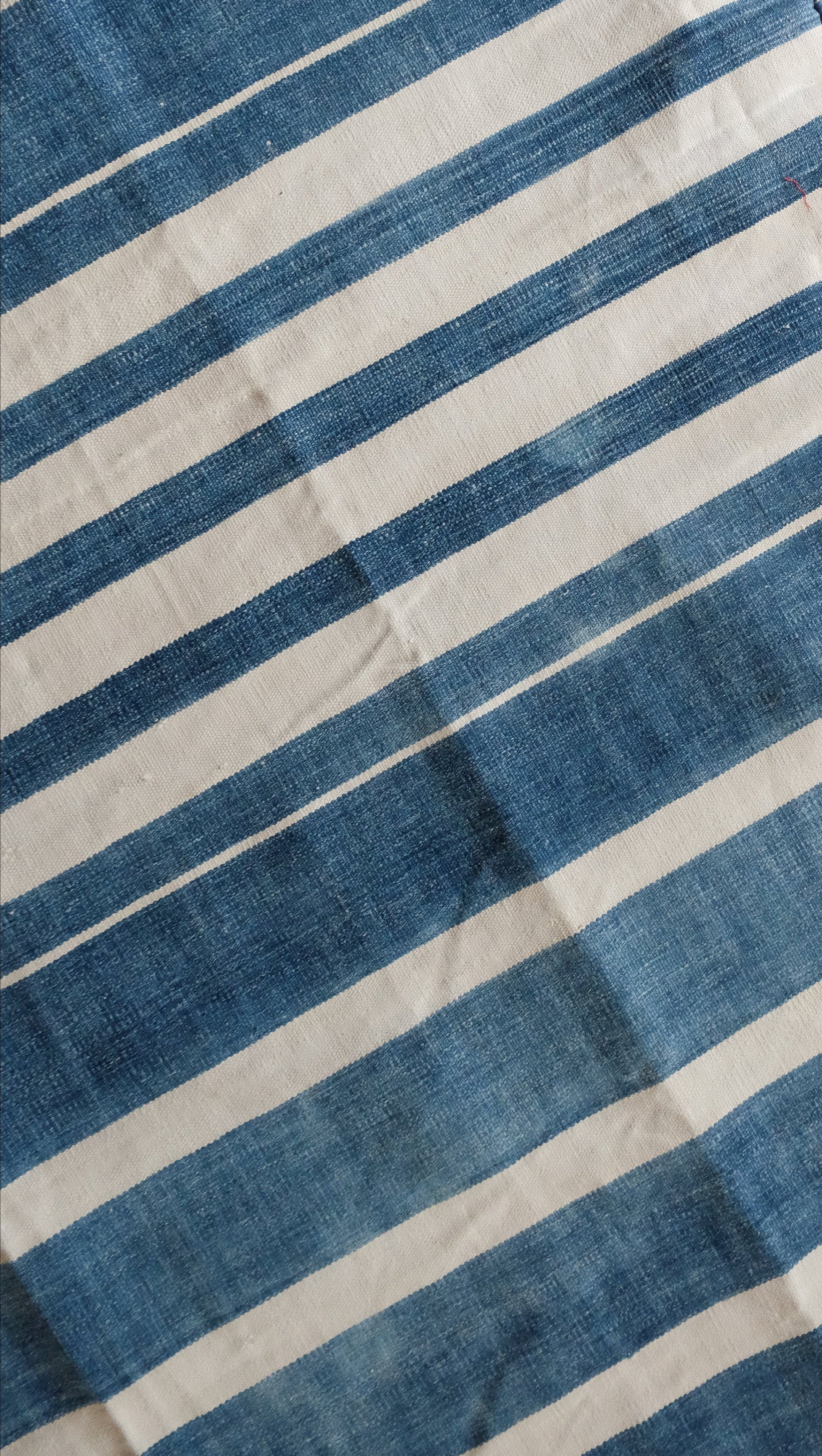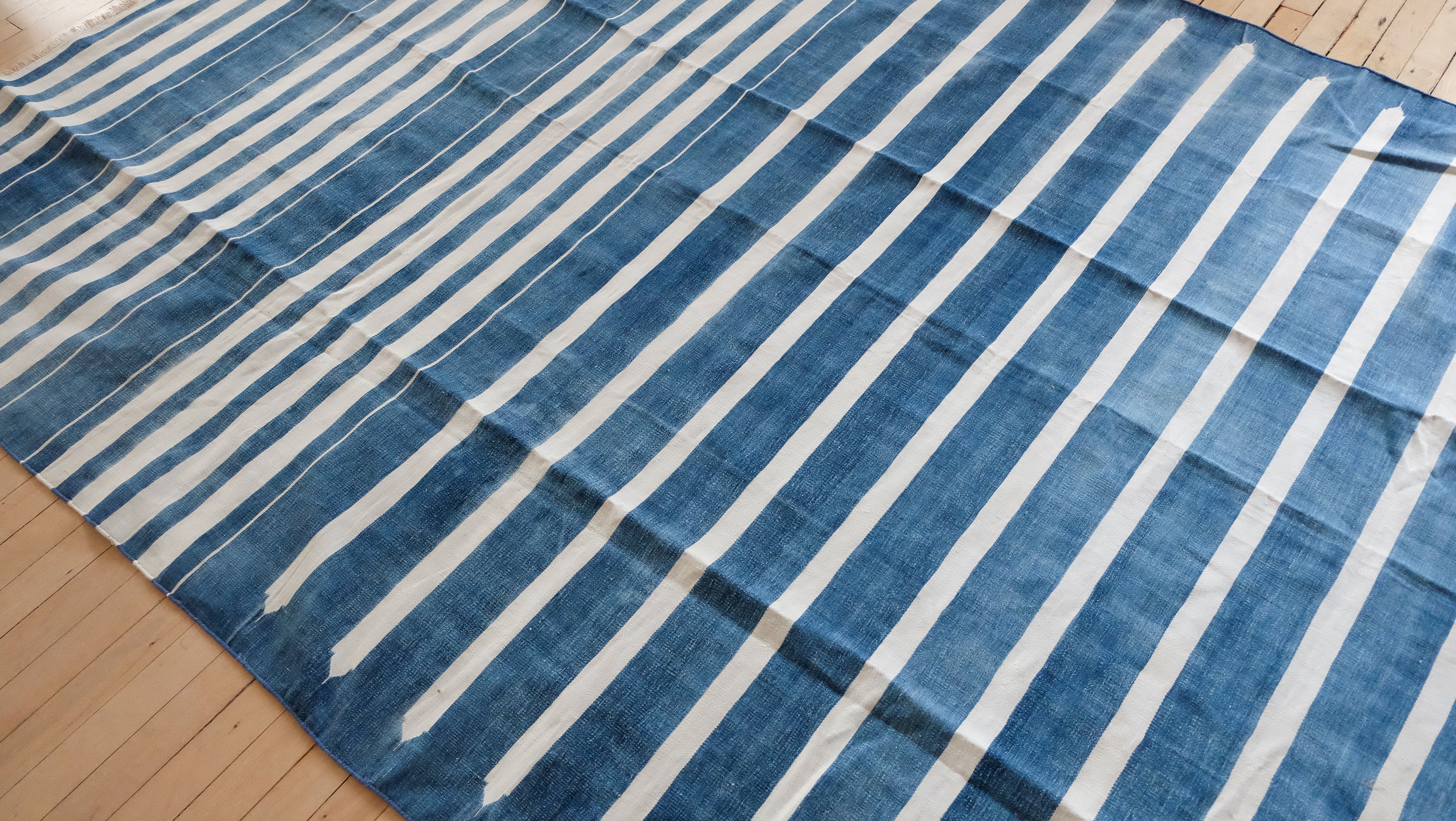 Antique Dhurrie with a soft cotton and an indigo and ivory stripe