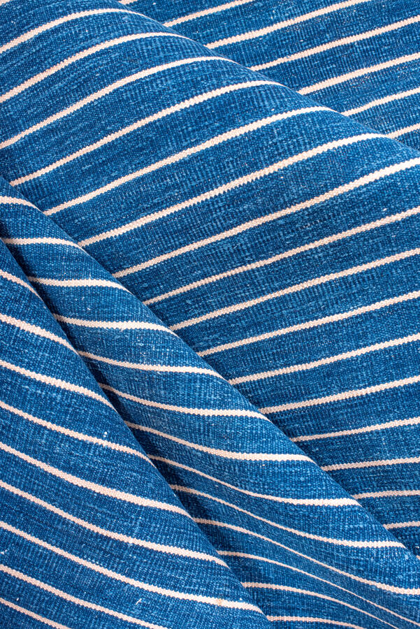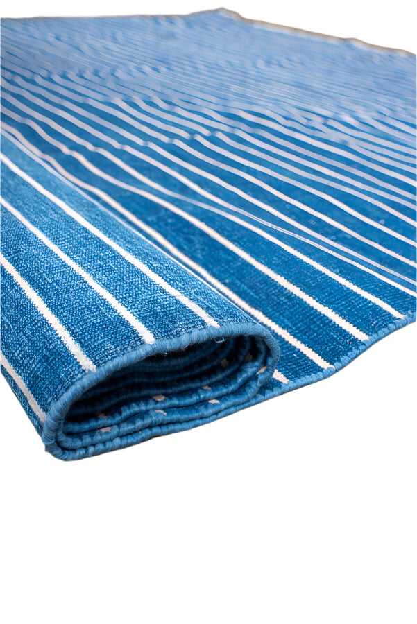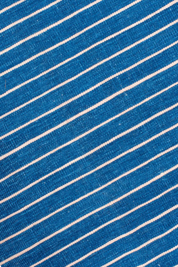 Antique denim blue Dhurrie with a white stripe