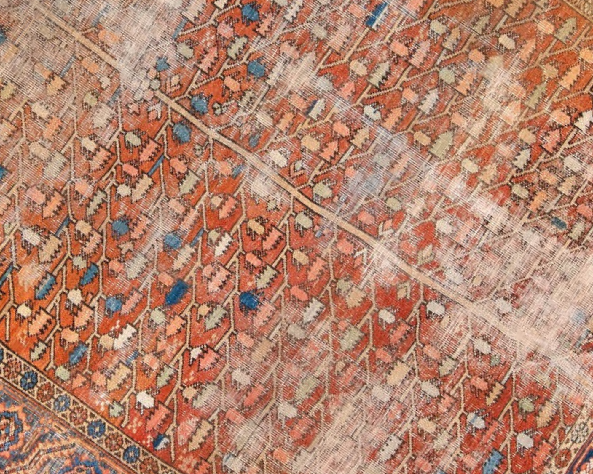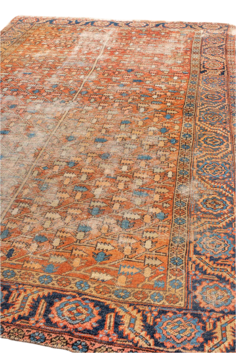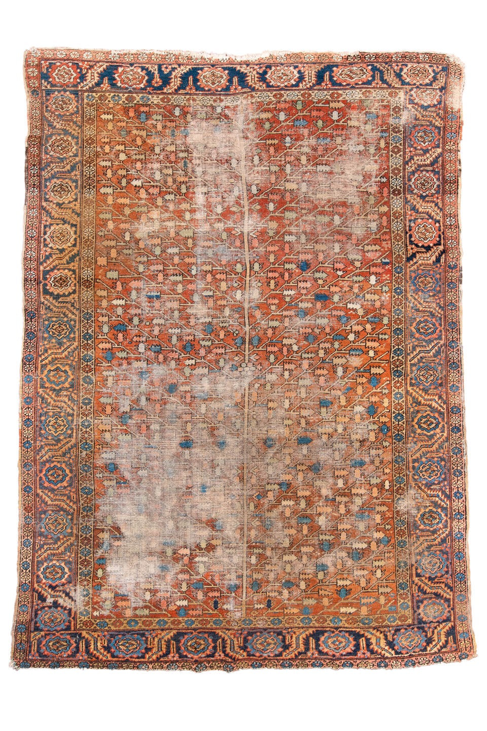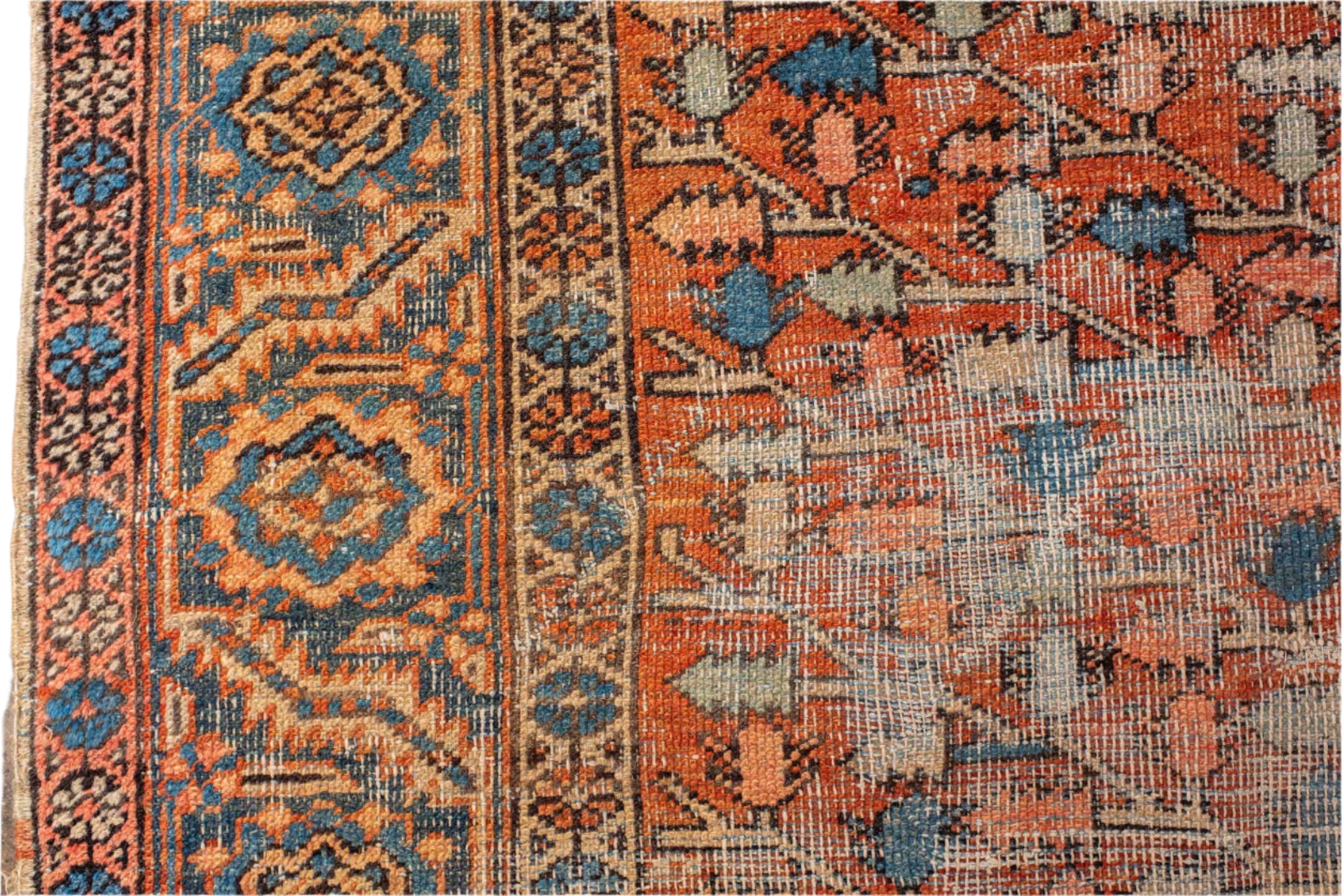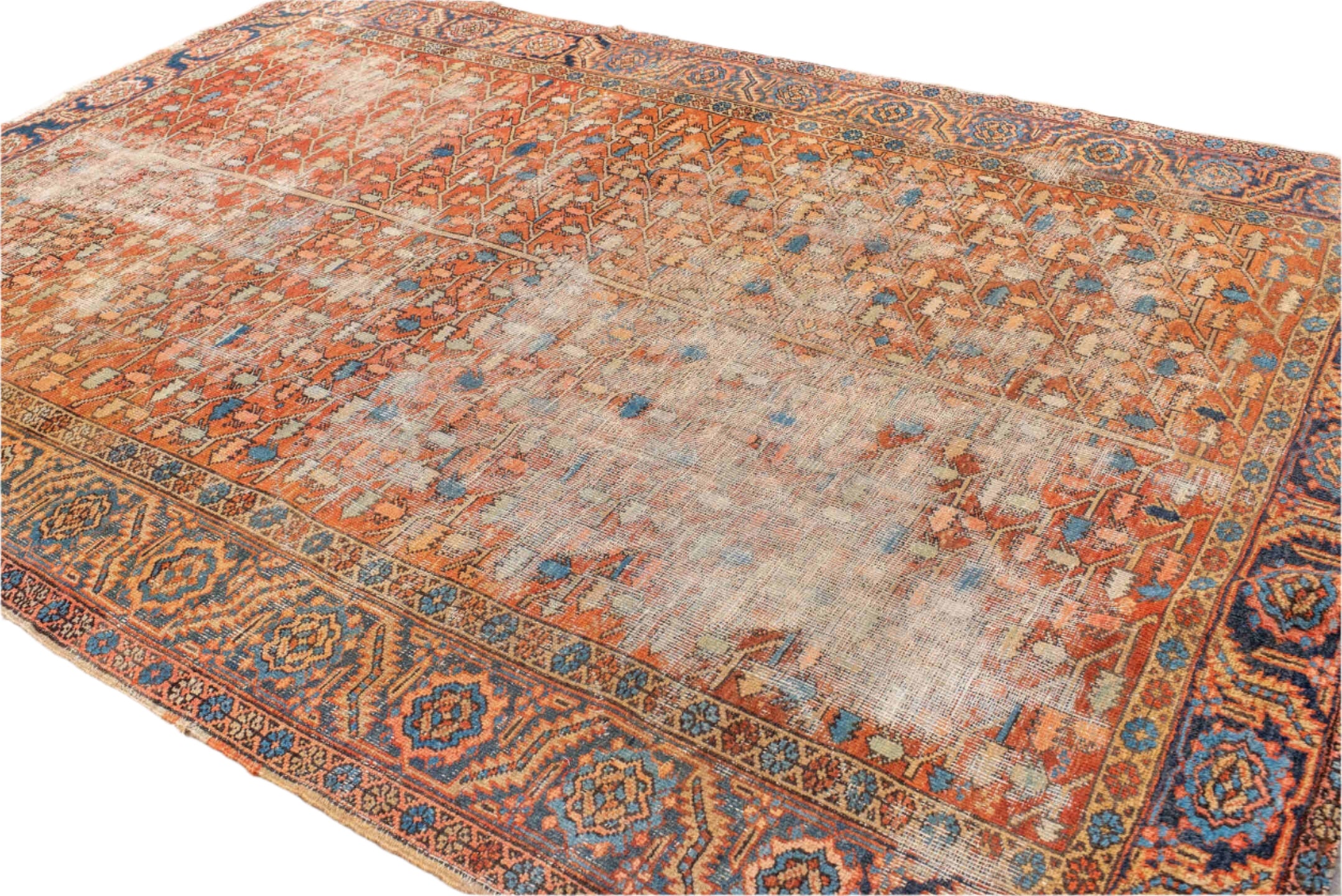 Turn of the century Heriz with a rust red field and natural distressing