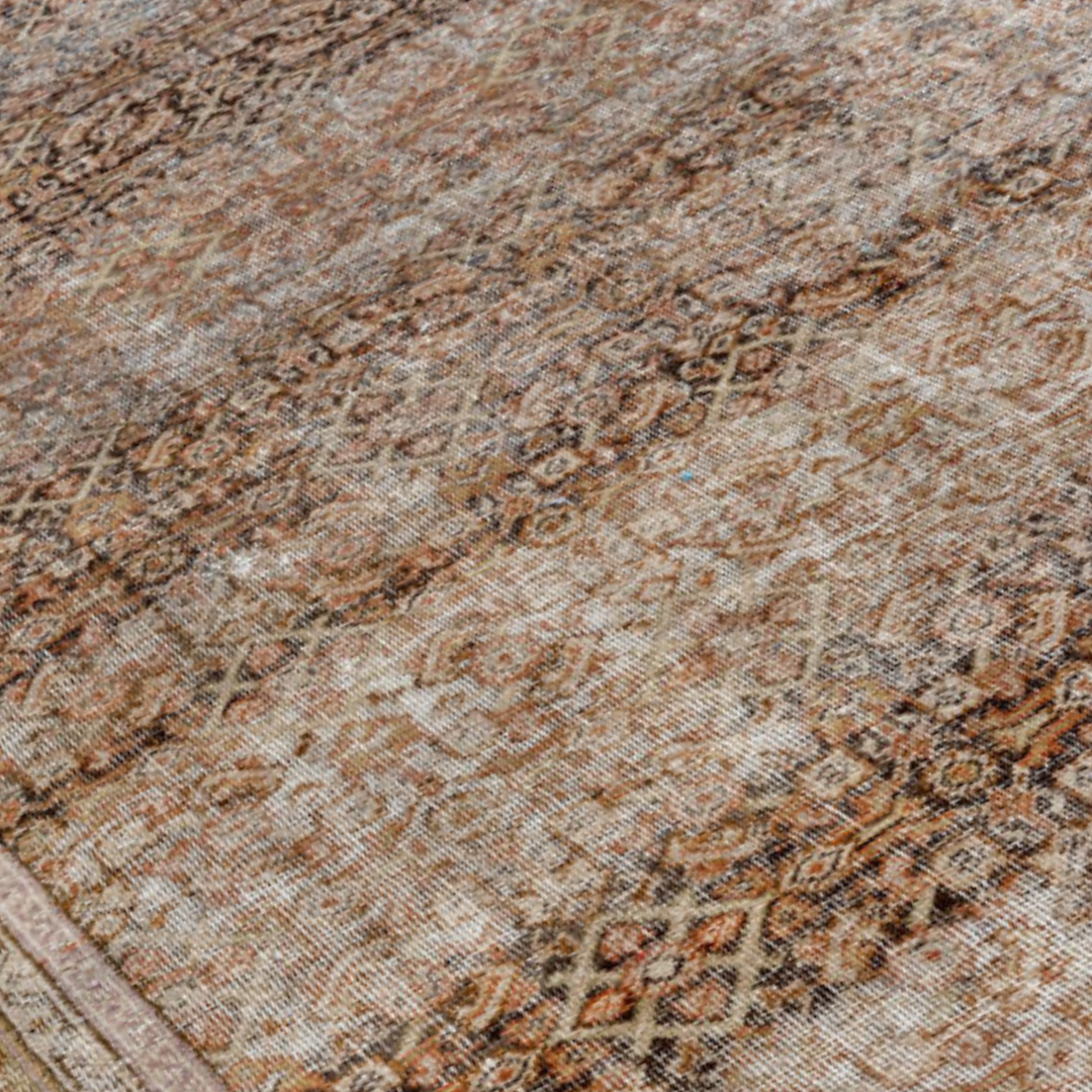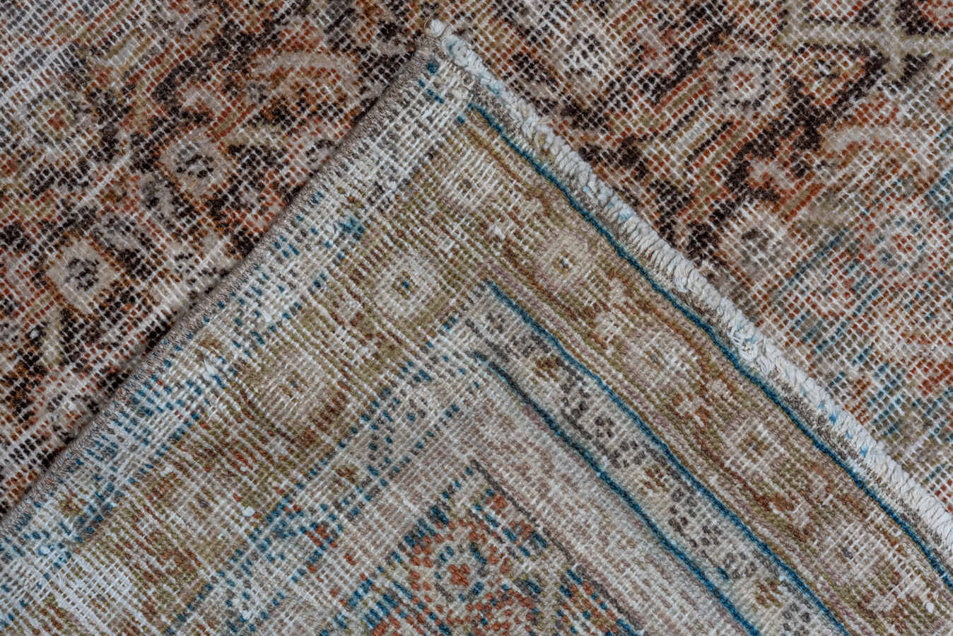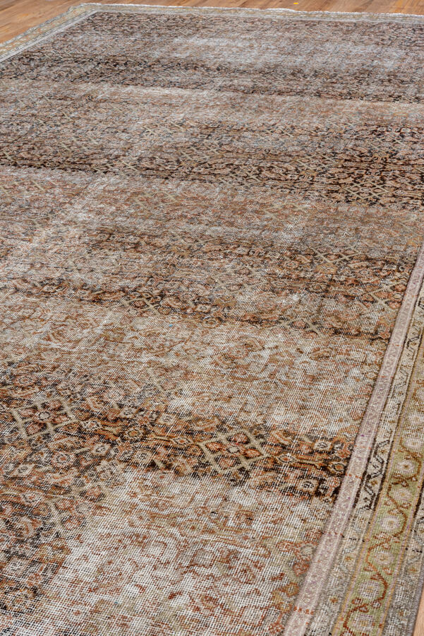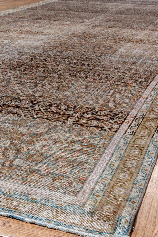 Ferehan with an antique wash. Soft tones of jade green, camel, lavender and browns
