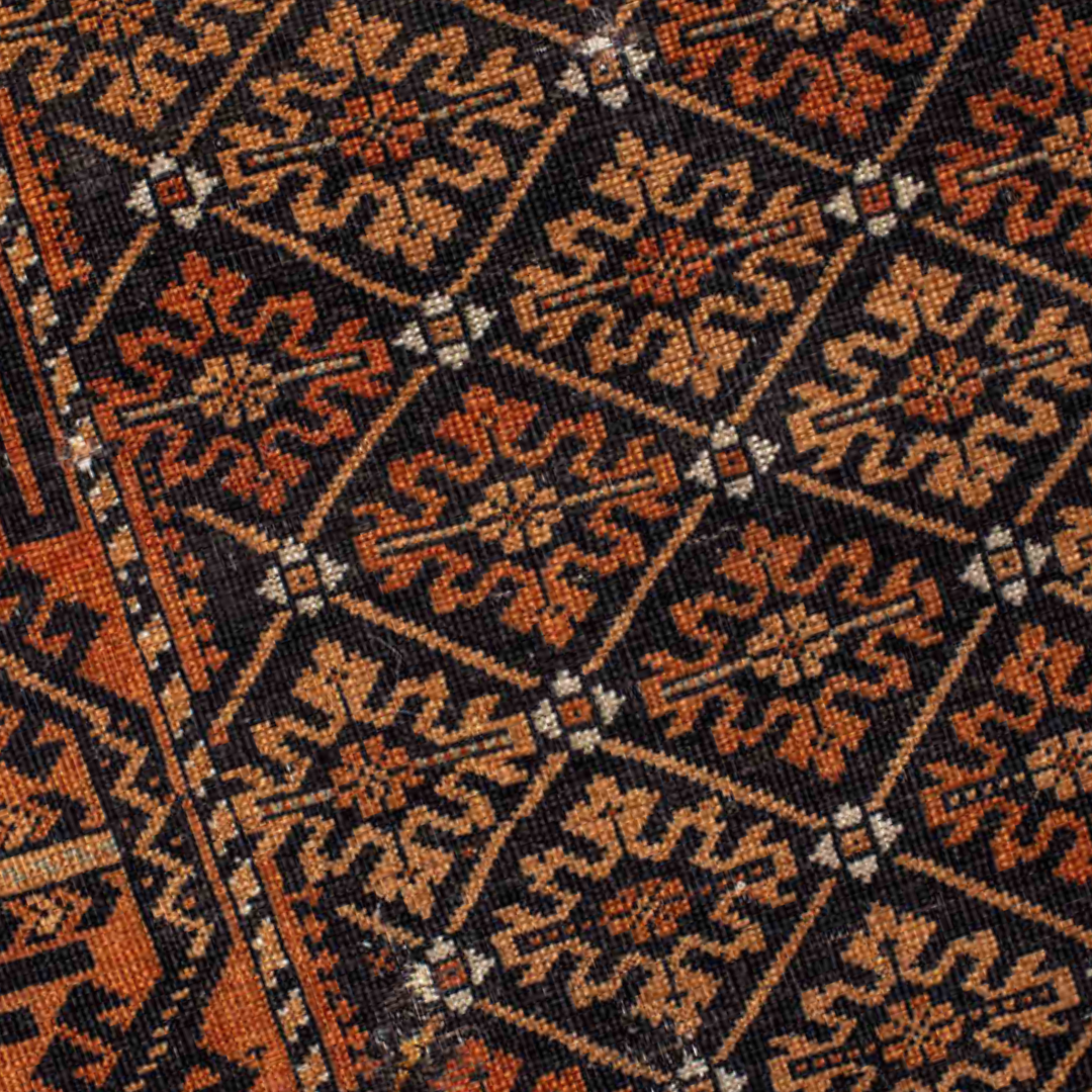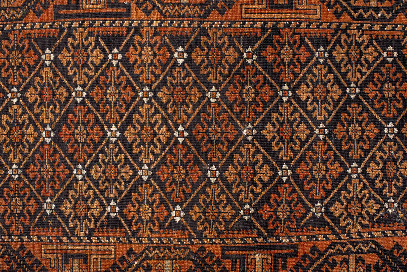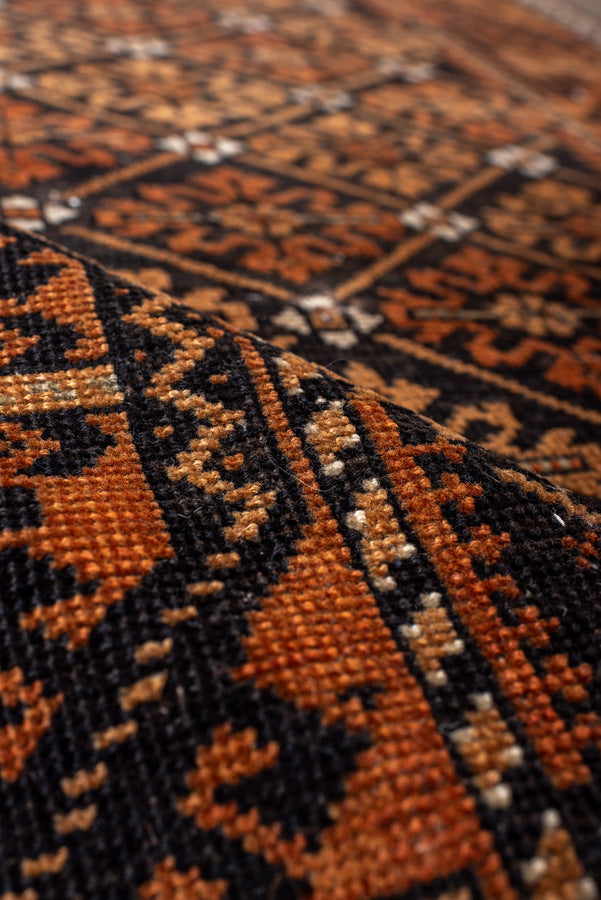 Baluch with shades of terracotta, camel, charcoal and ivory