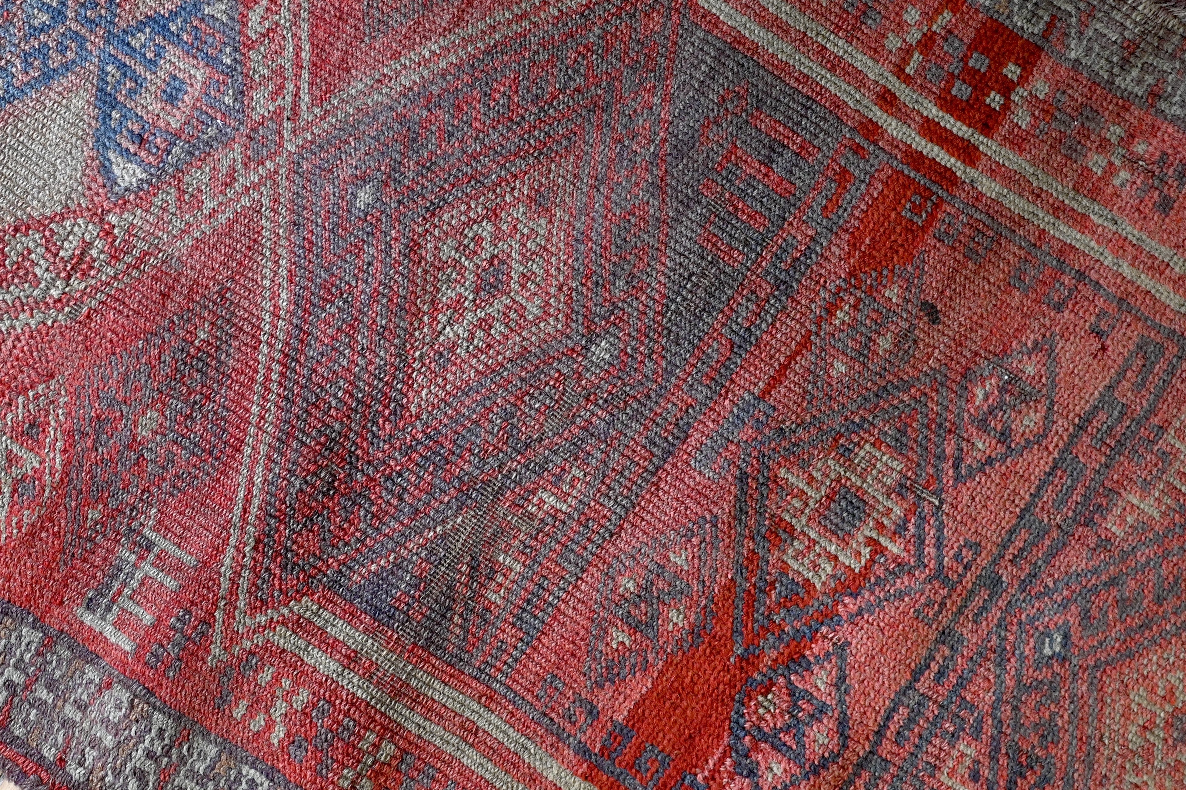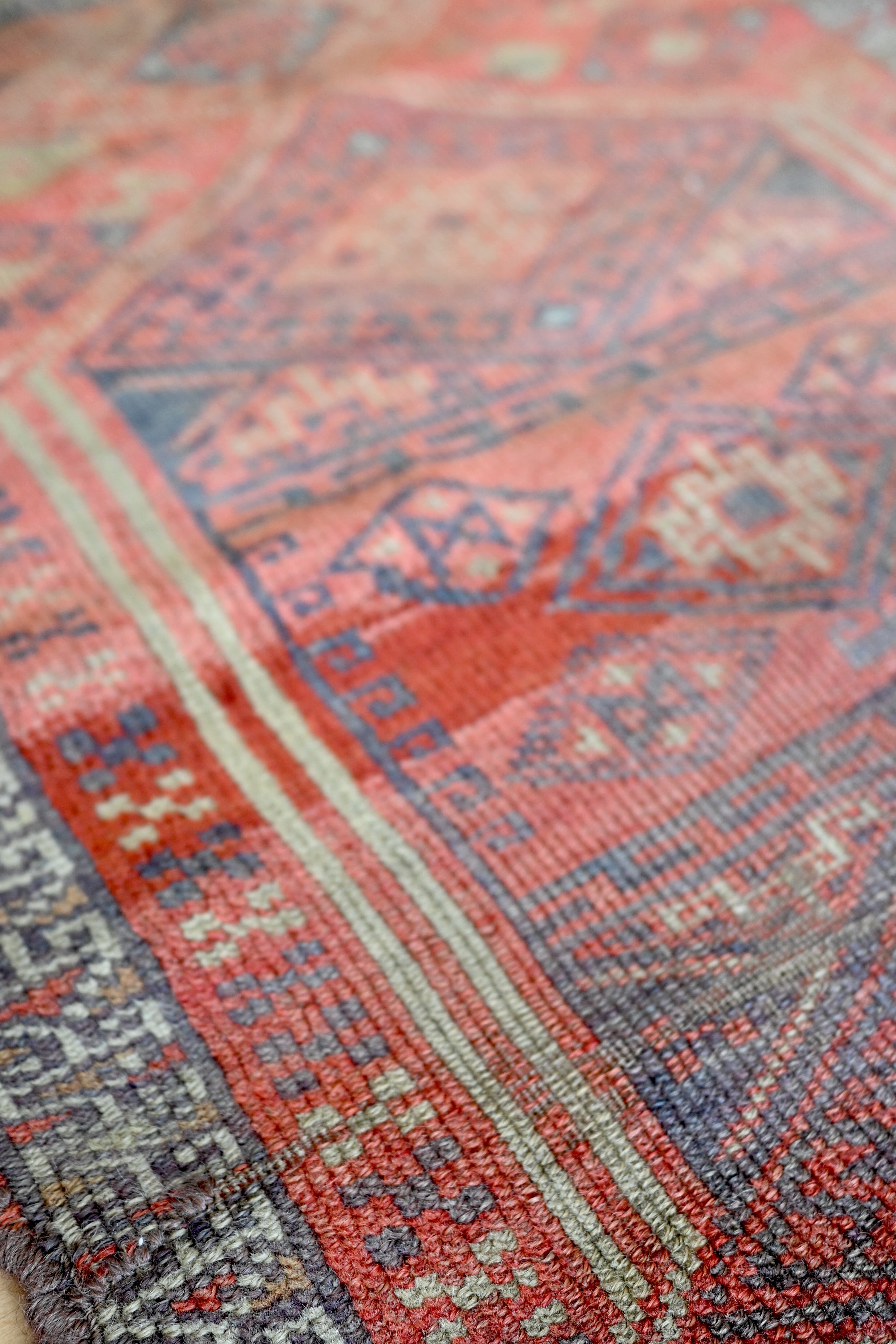 a bright and berry toned mat with cherry, coral, cornflower blue and pale green