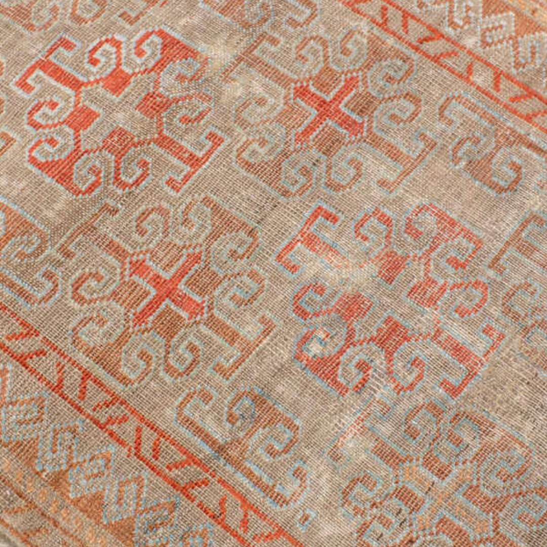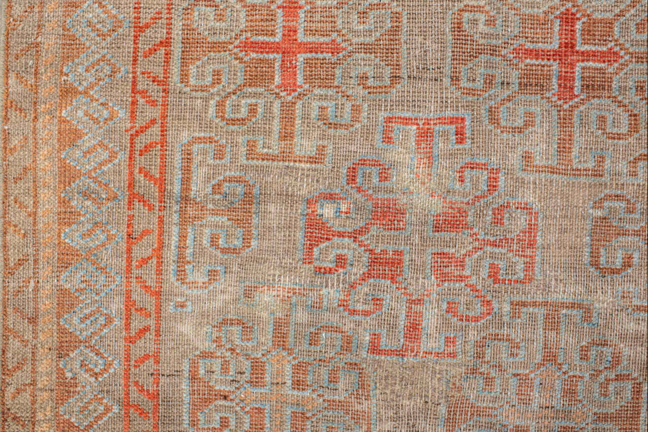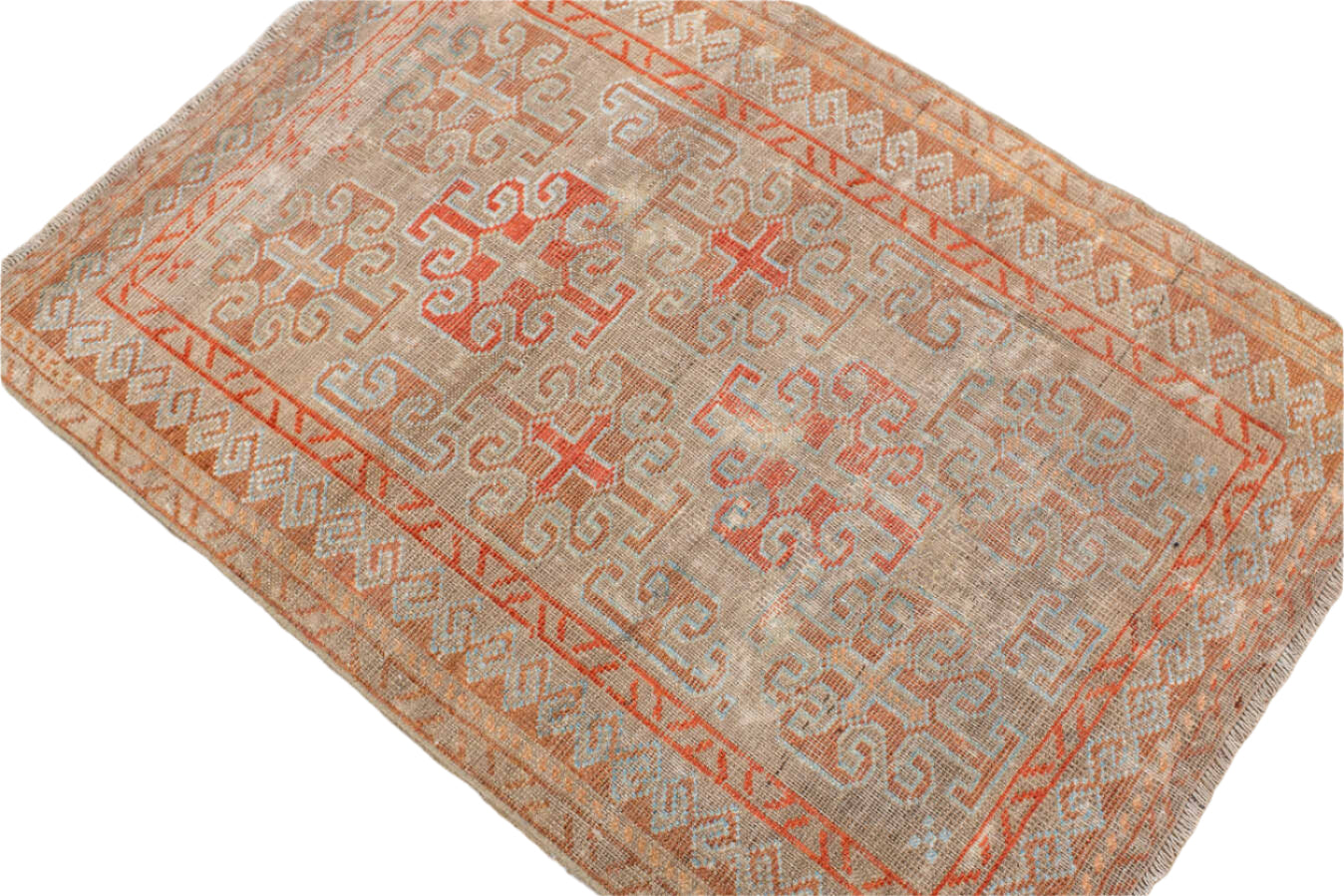 An earthy Baluch with shades of pale blue, camel, rust, coral and gray