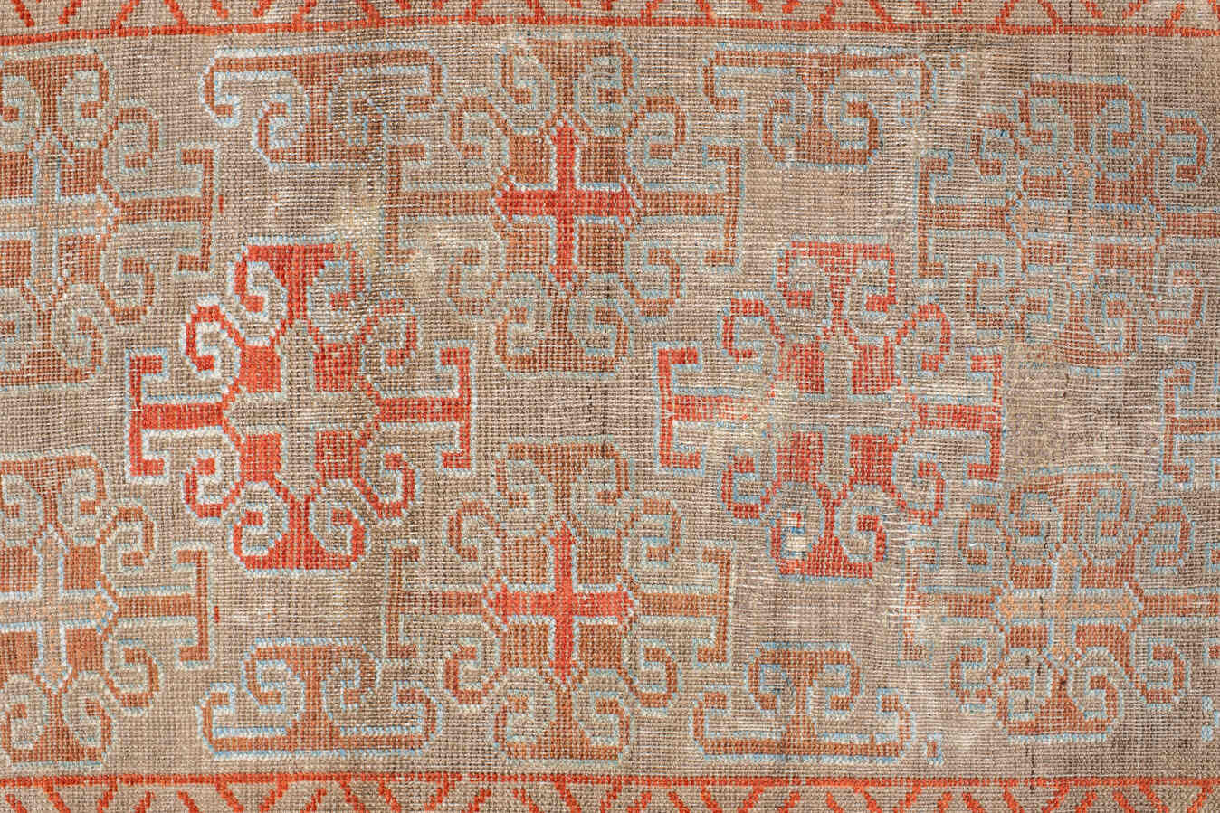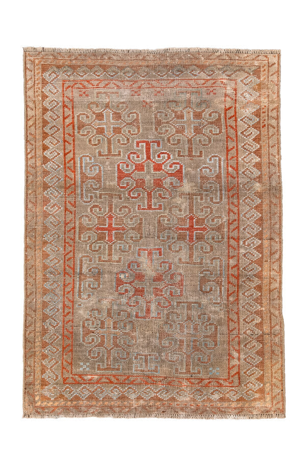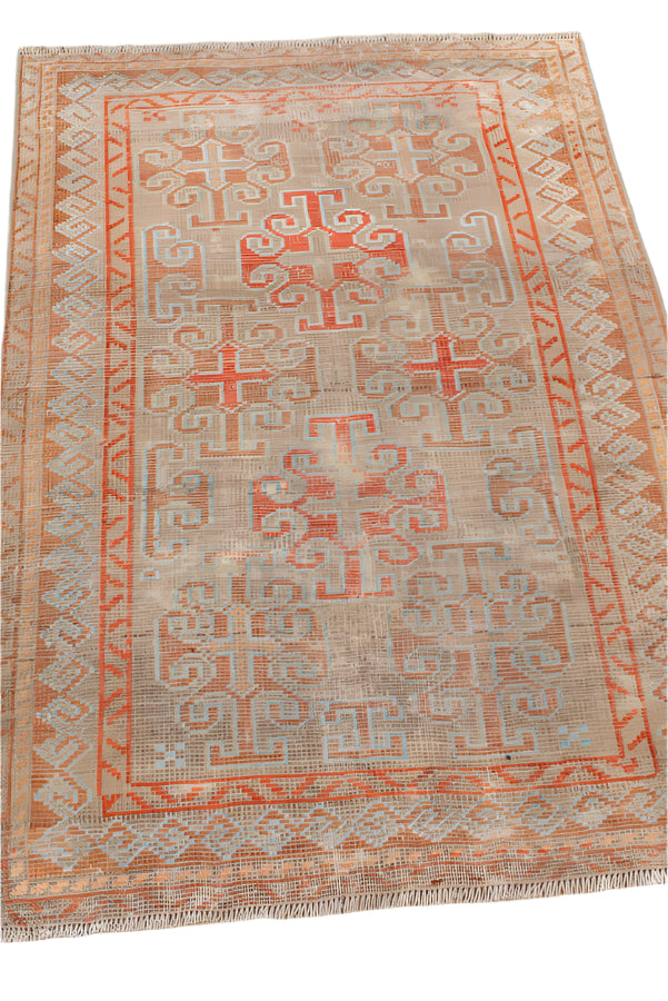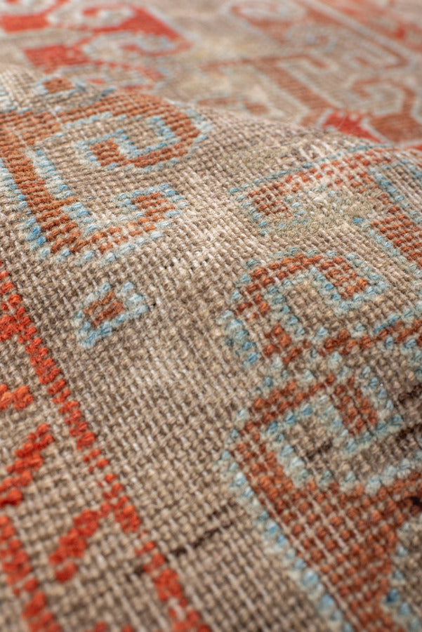 An earthy Baluch with shades of pale blue, camel, rust, coral and gray