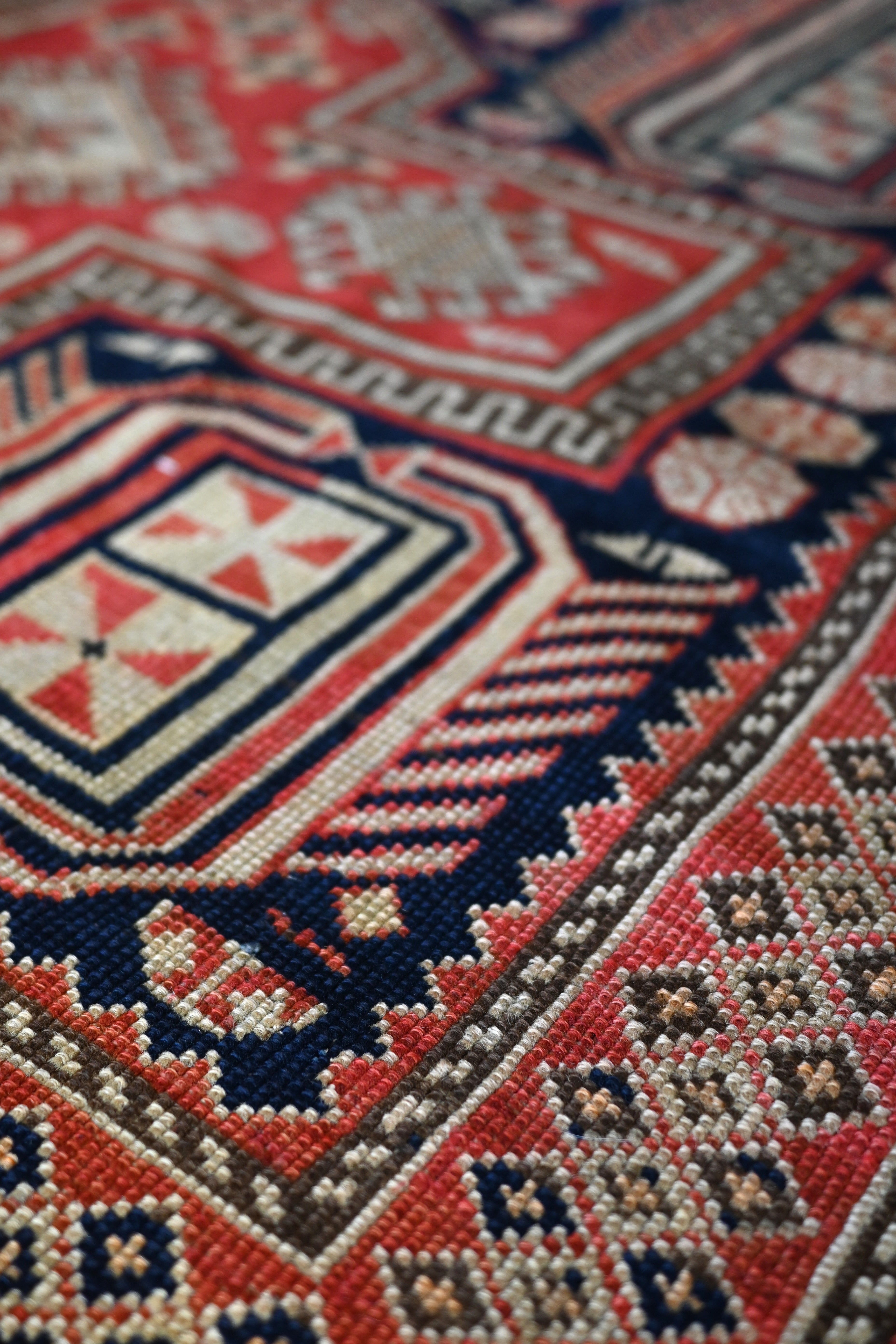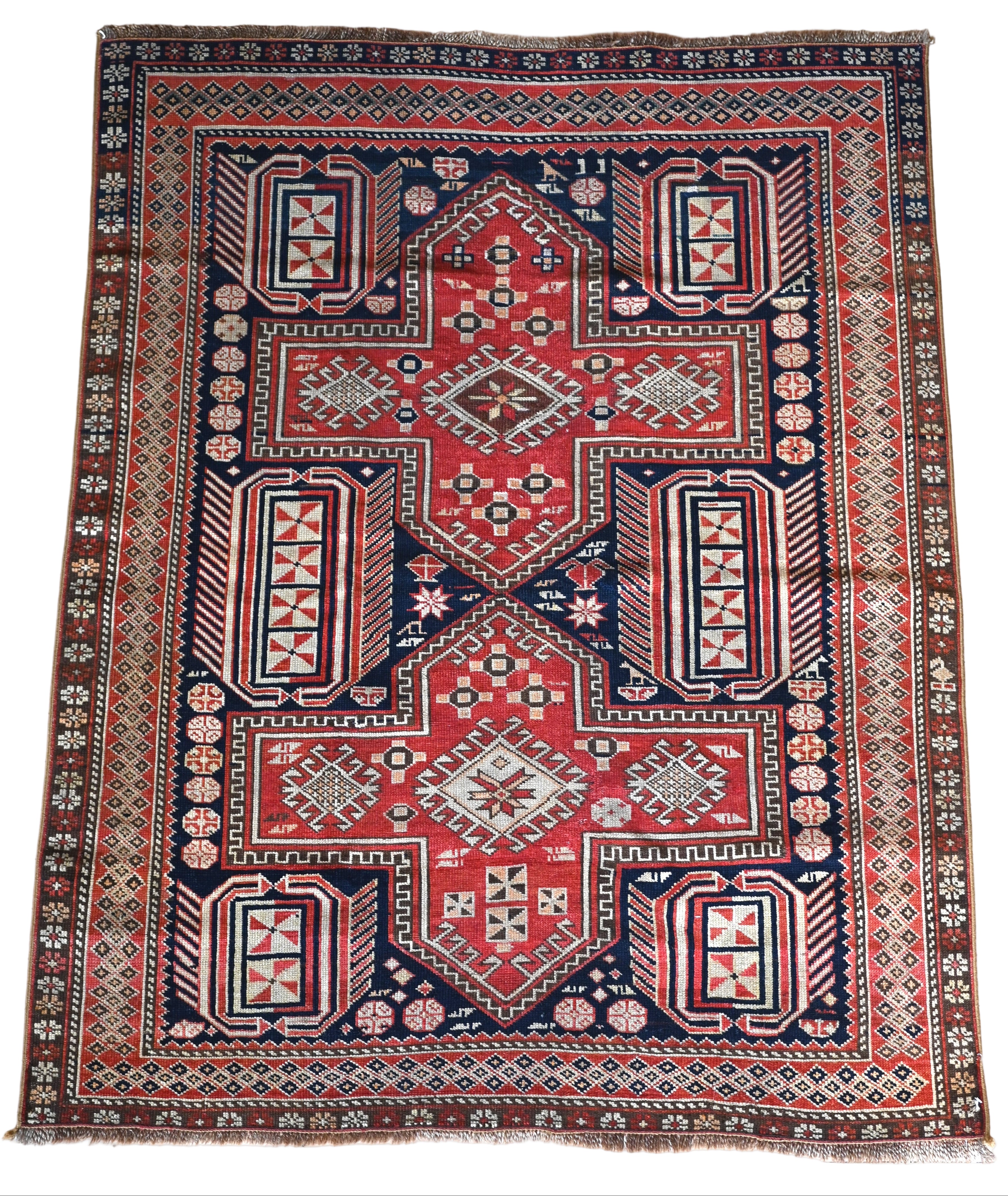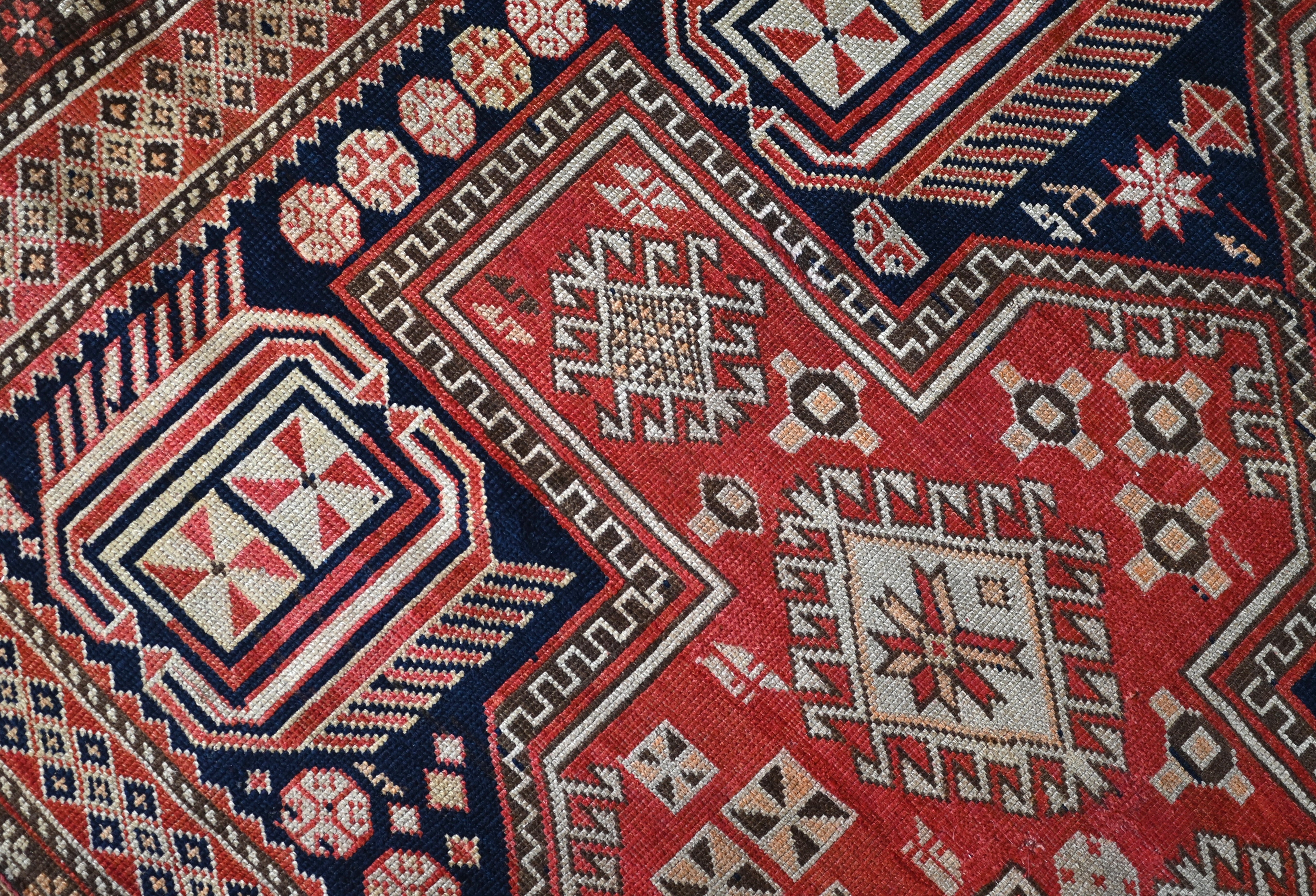 Late 19th century Shirvan Kazak with deep navy, camel, madder red and ivory