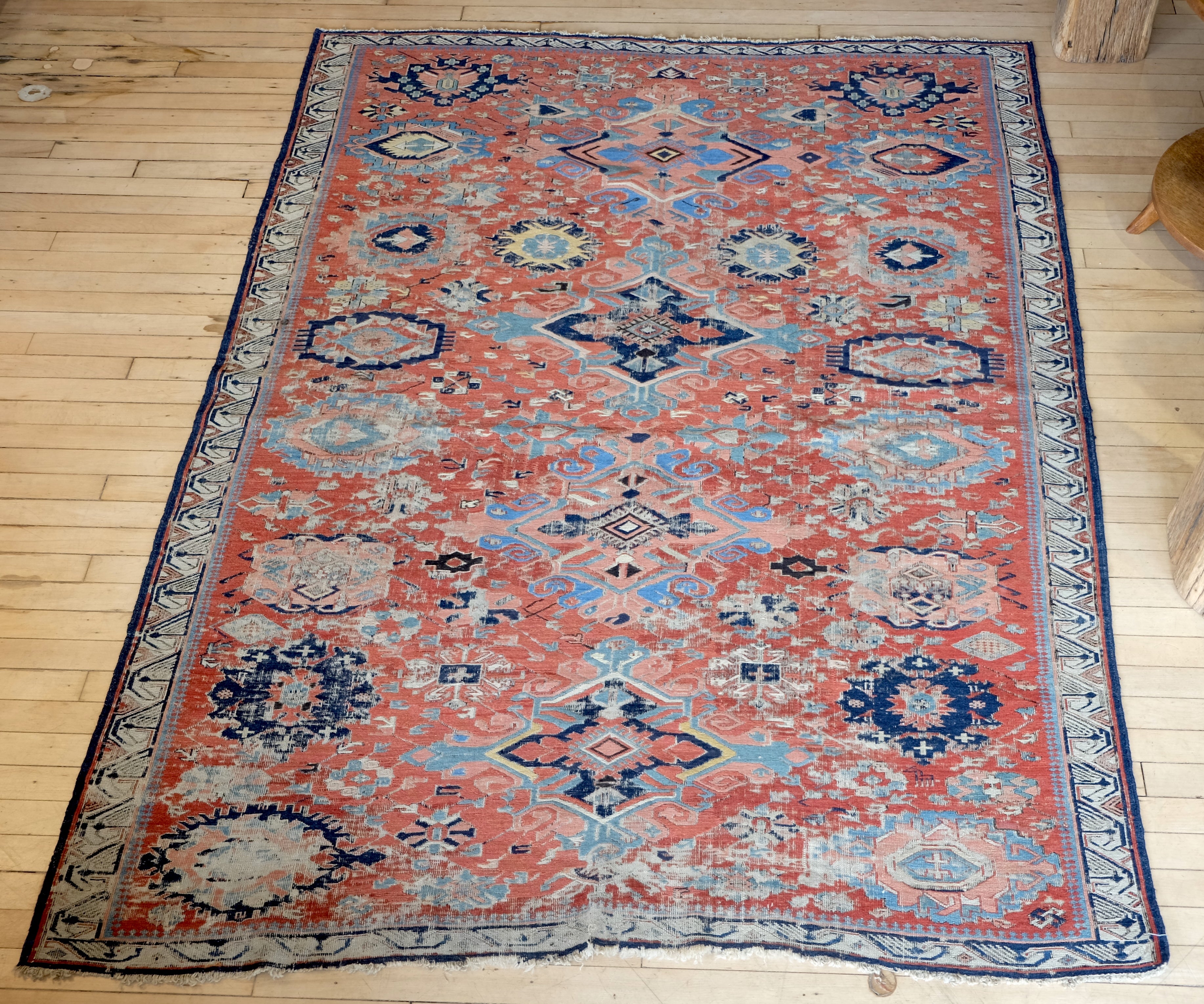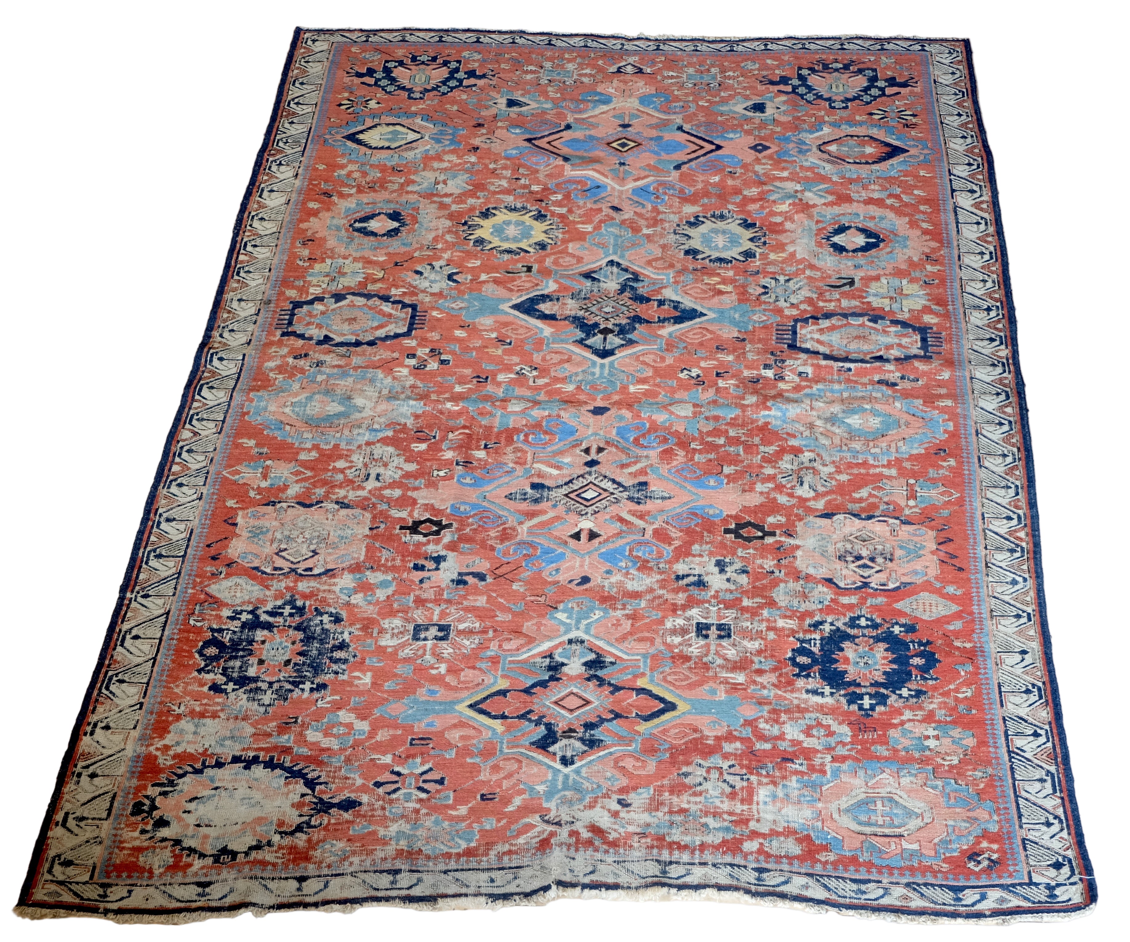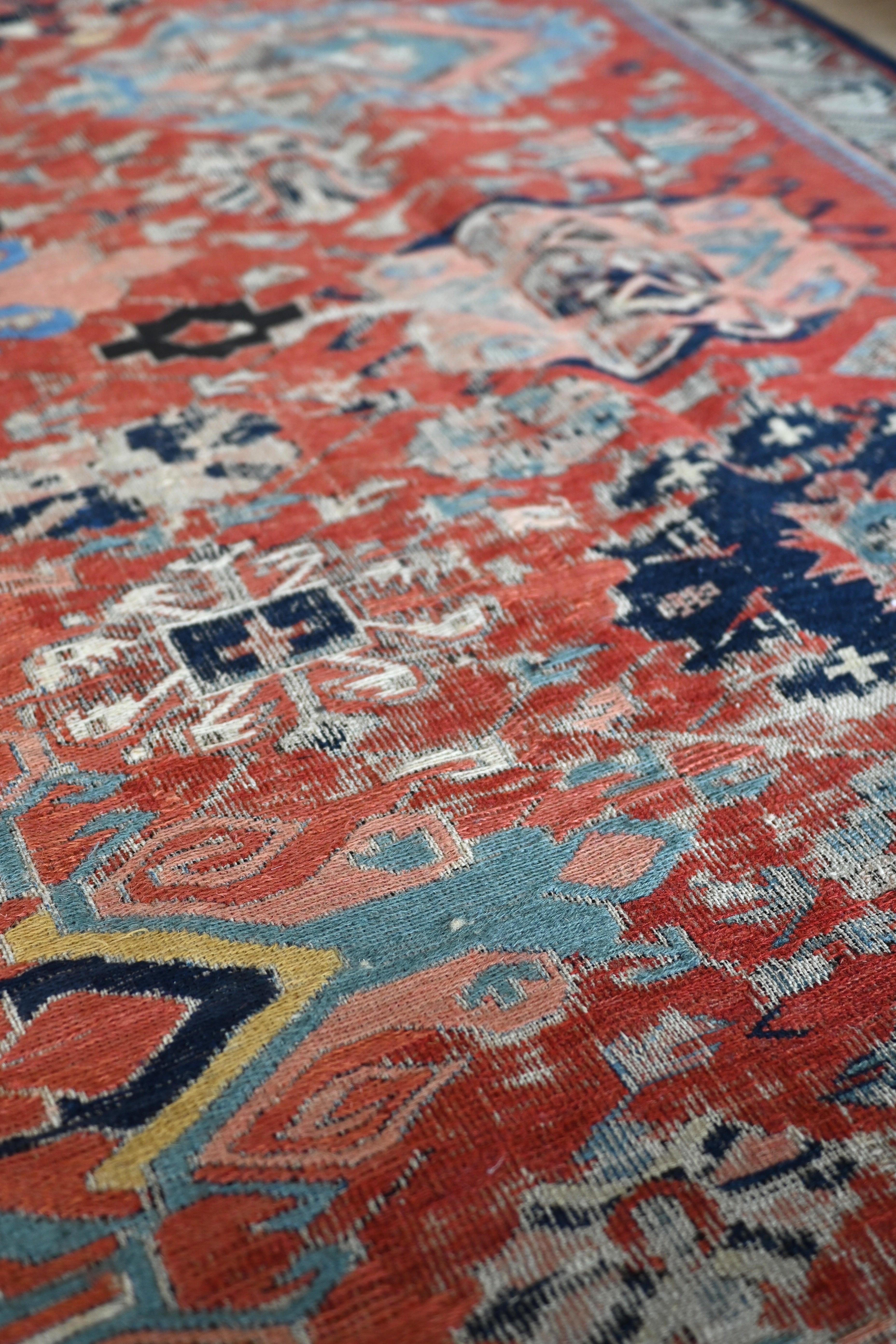 Late 19th century Sumac with deep coral, blue tones and soft pink