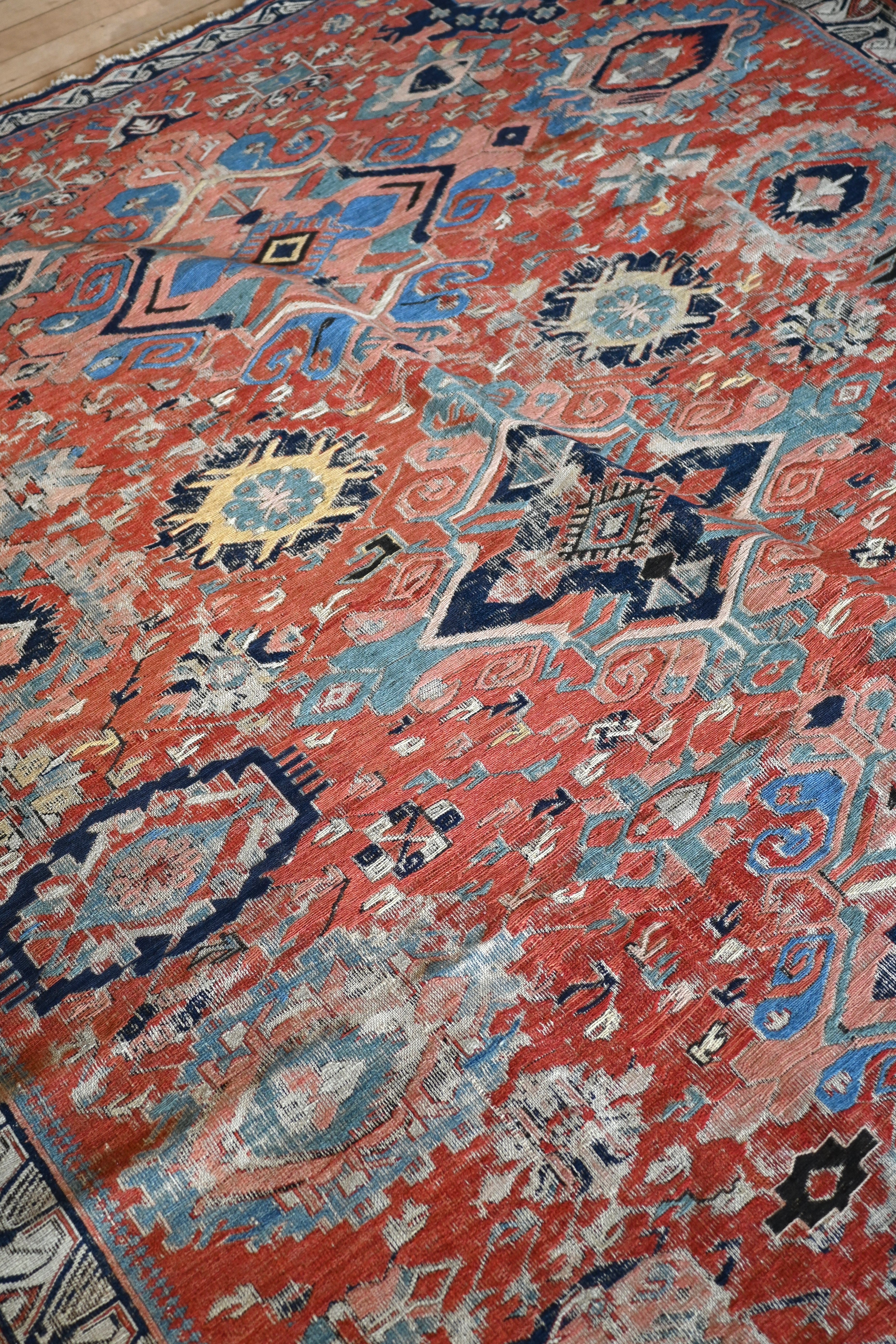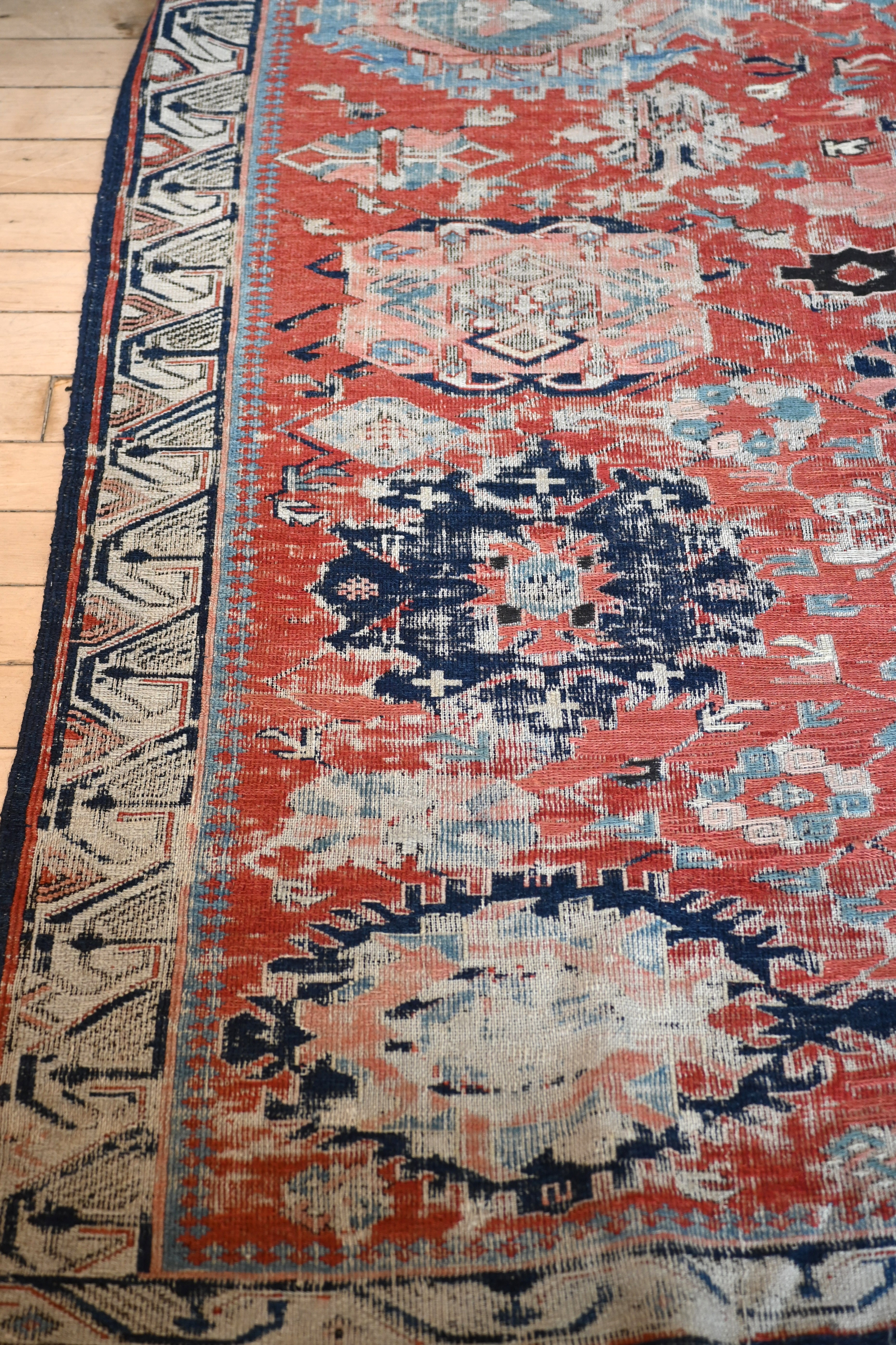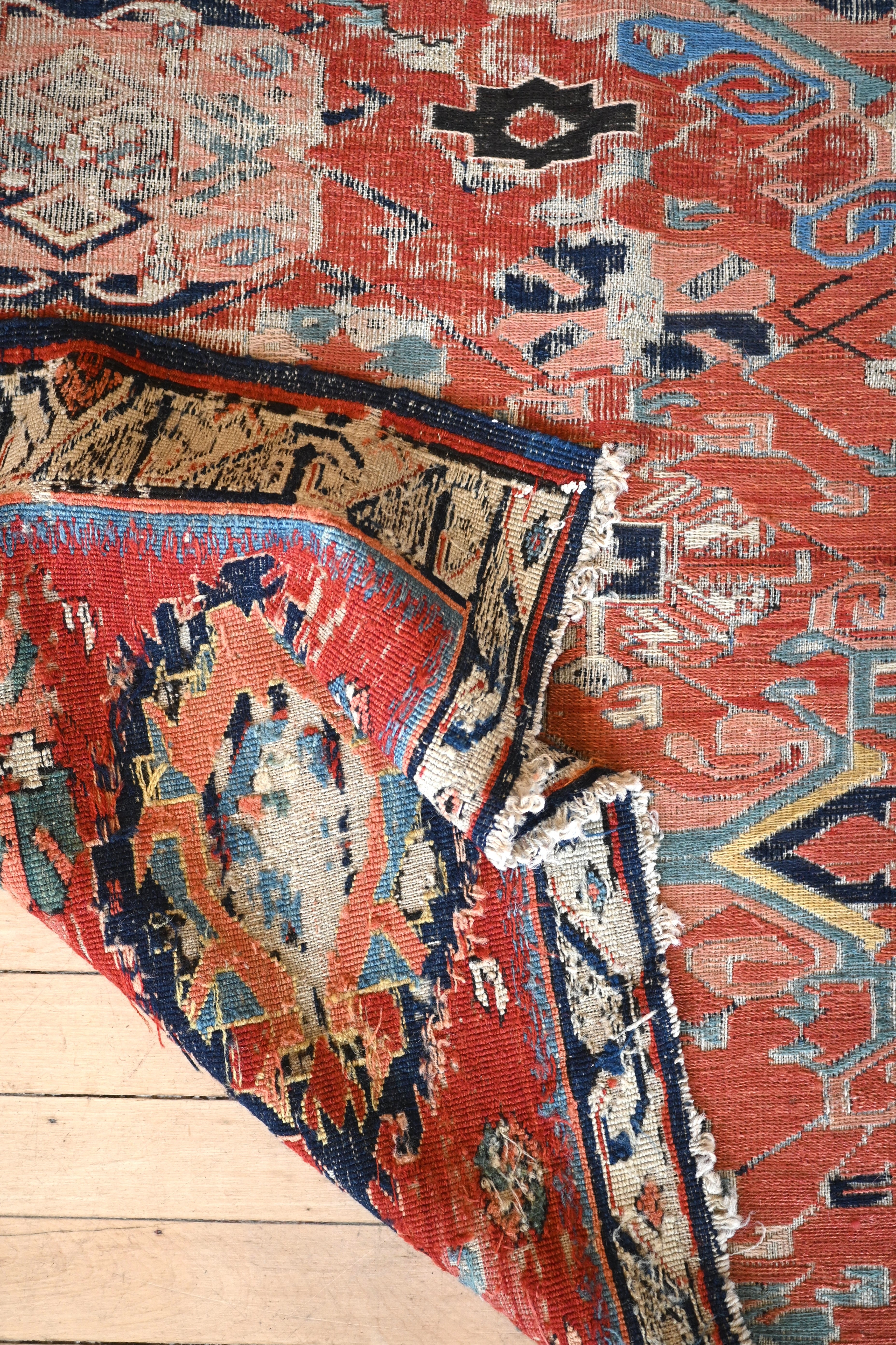 Late 19th century Sumac with deep coral, blue tones and soft pink