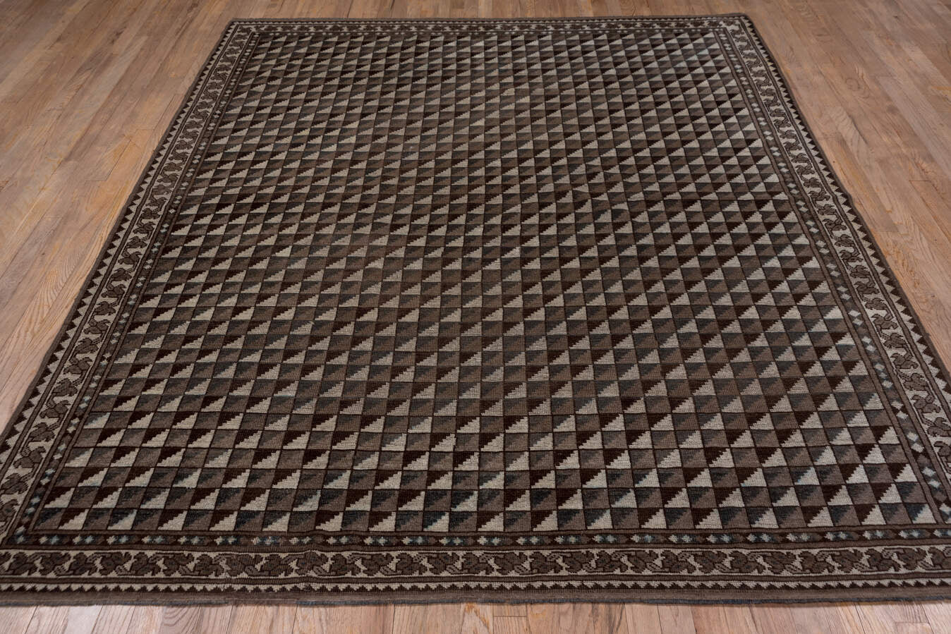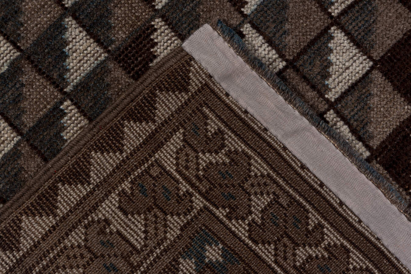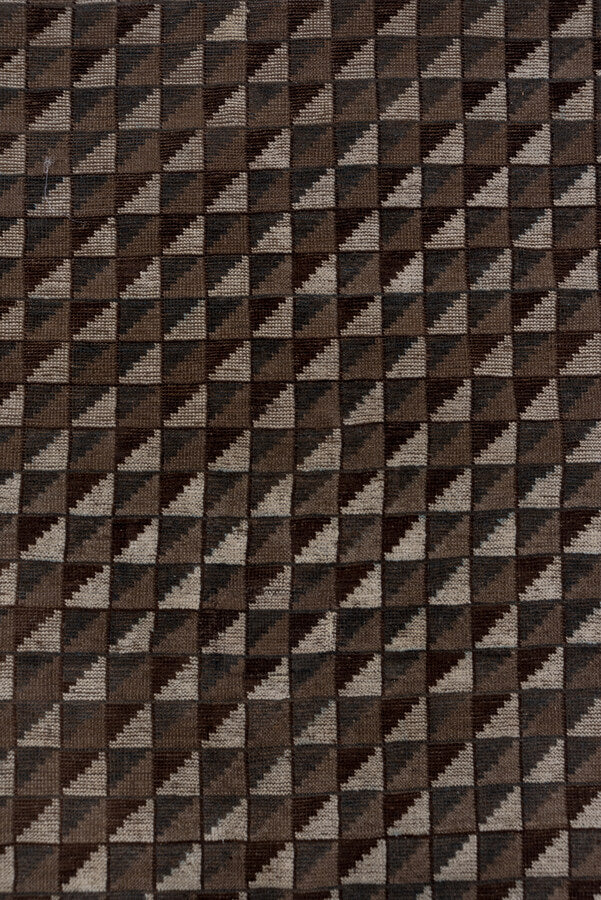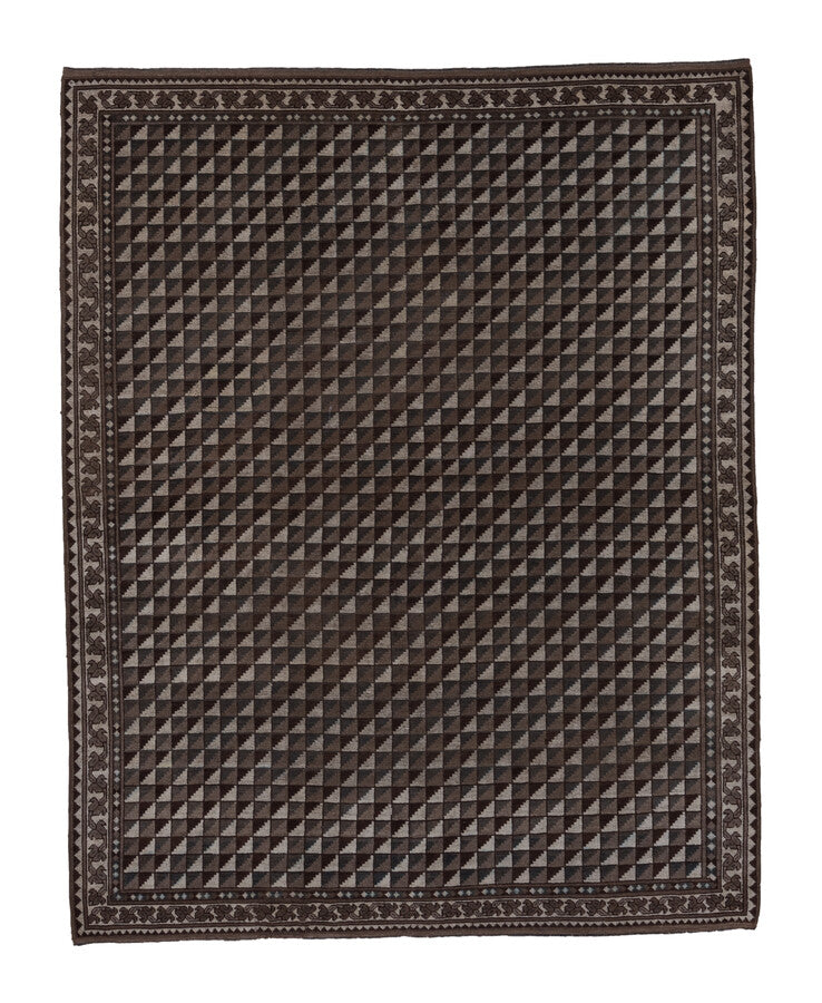 A deep toned Afghan with chocolate, charcoal and gray