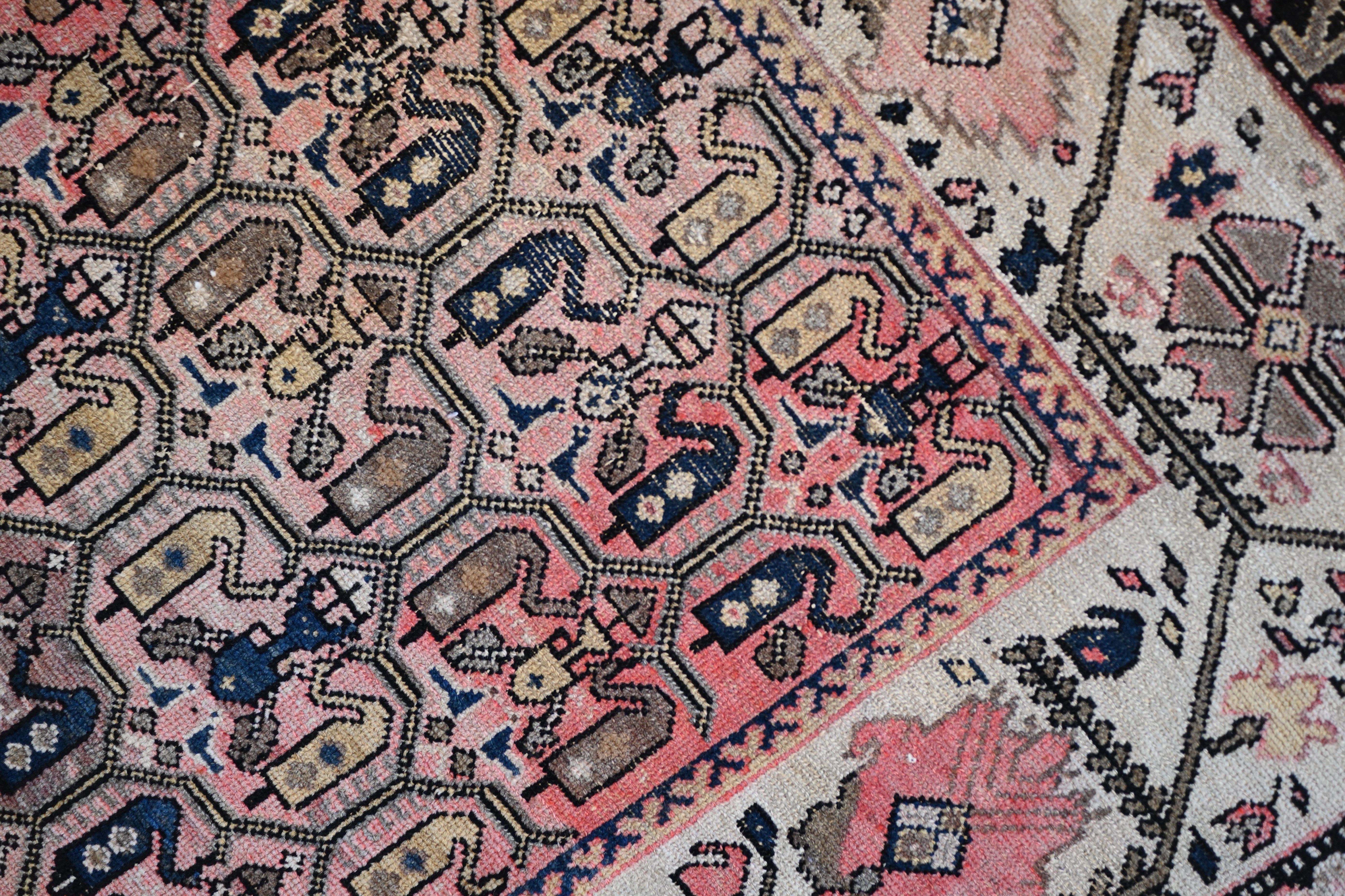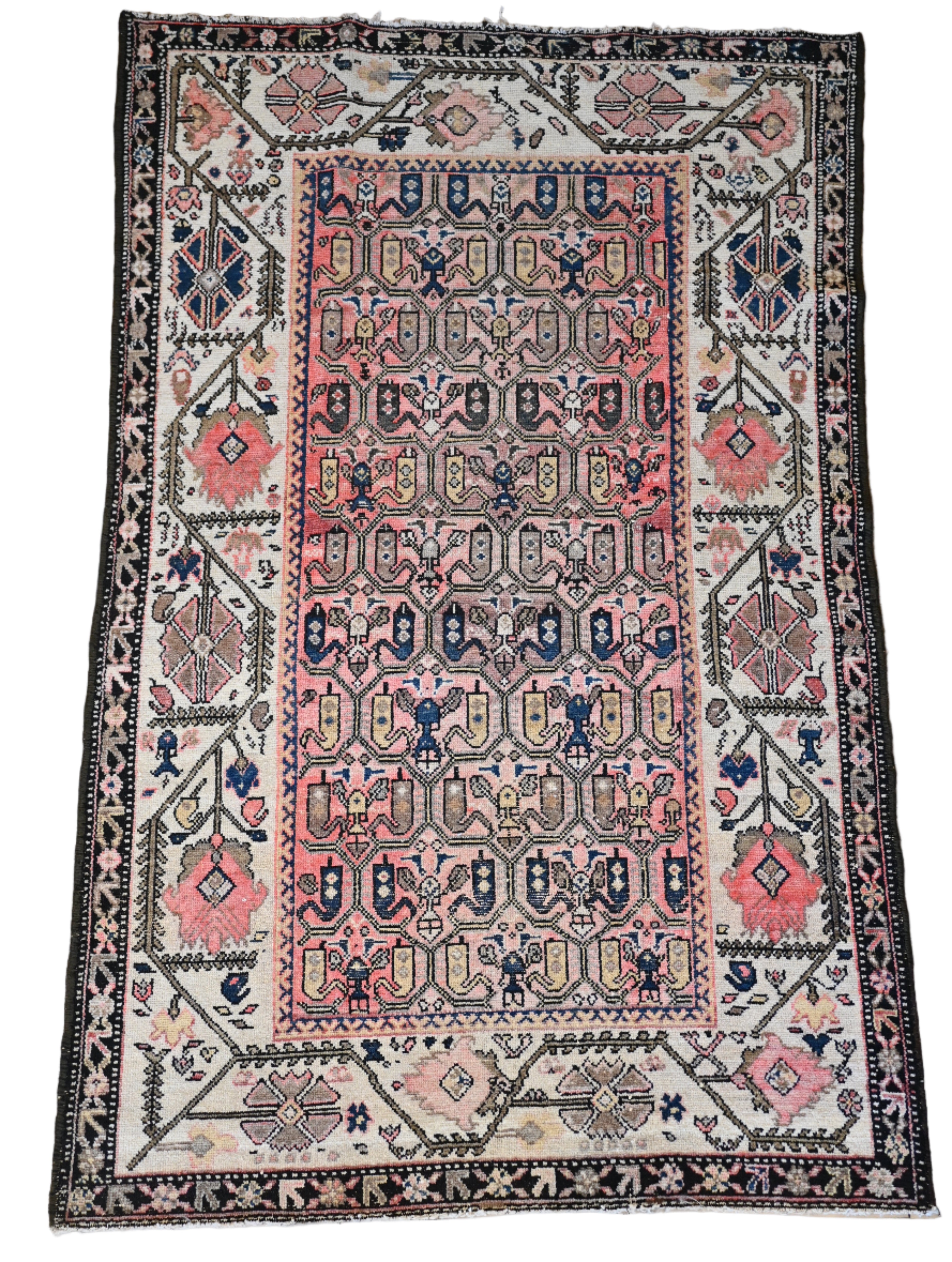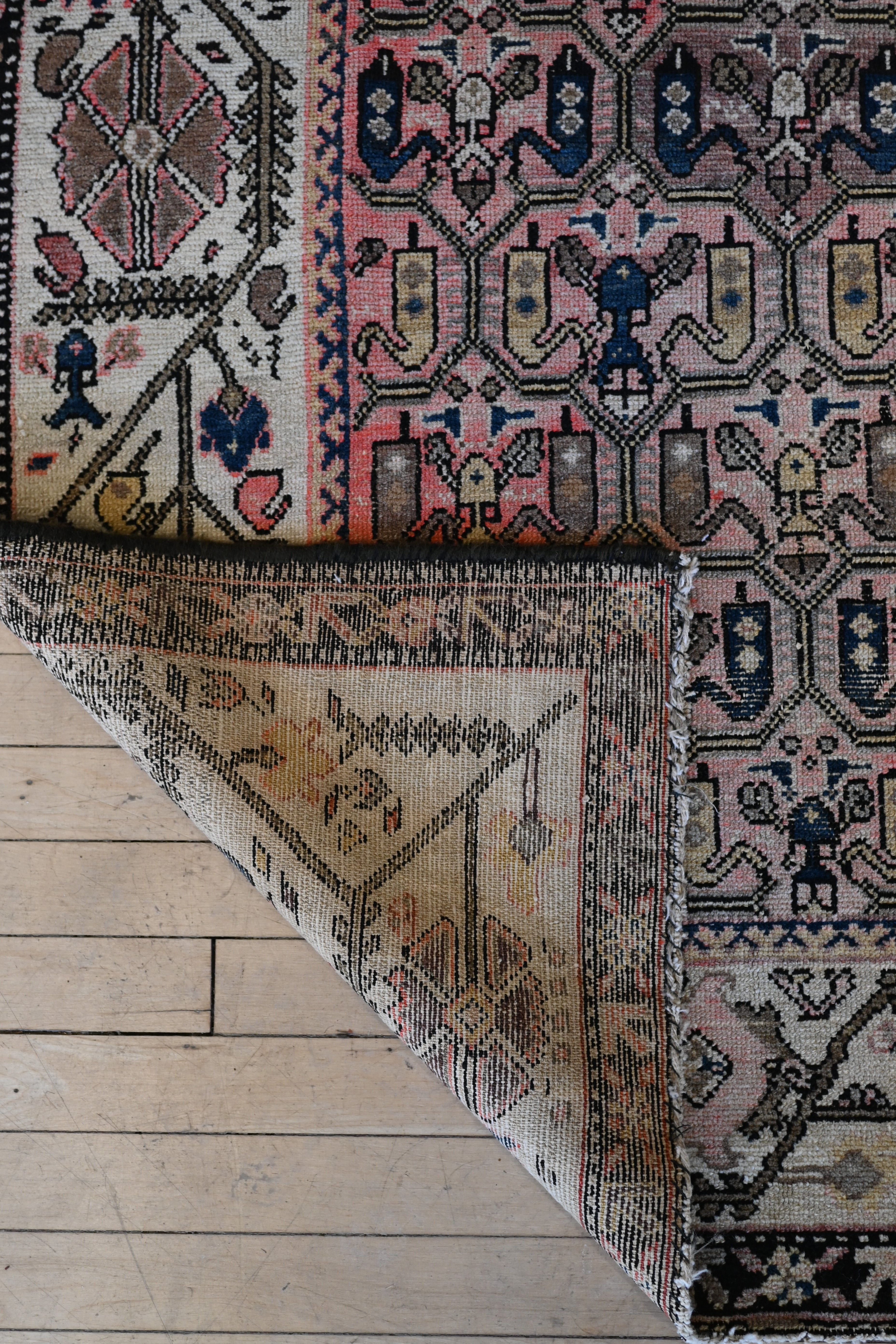 Early 20th century Malayer with a pink field and all over boteh design. Tones of olive green, indigo and taupe with a wide ivory border.