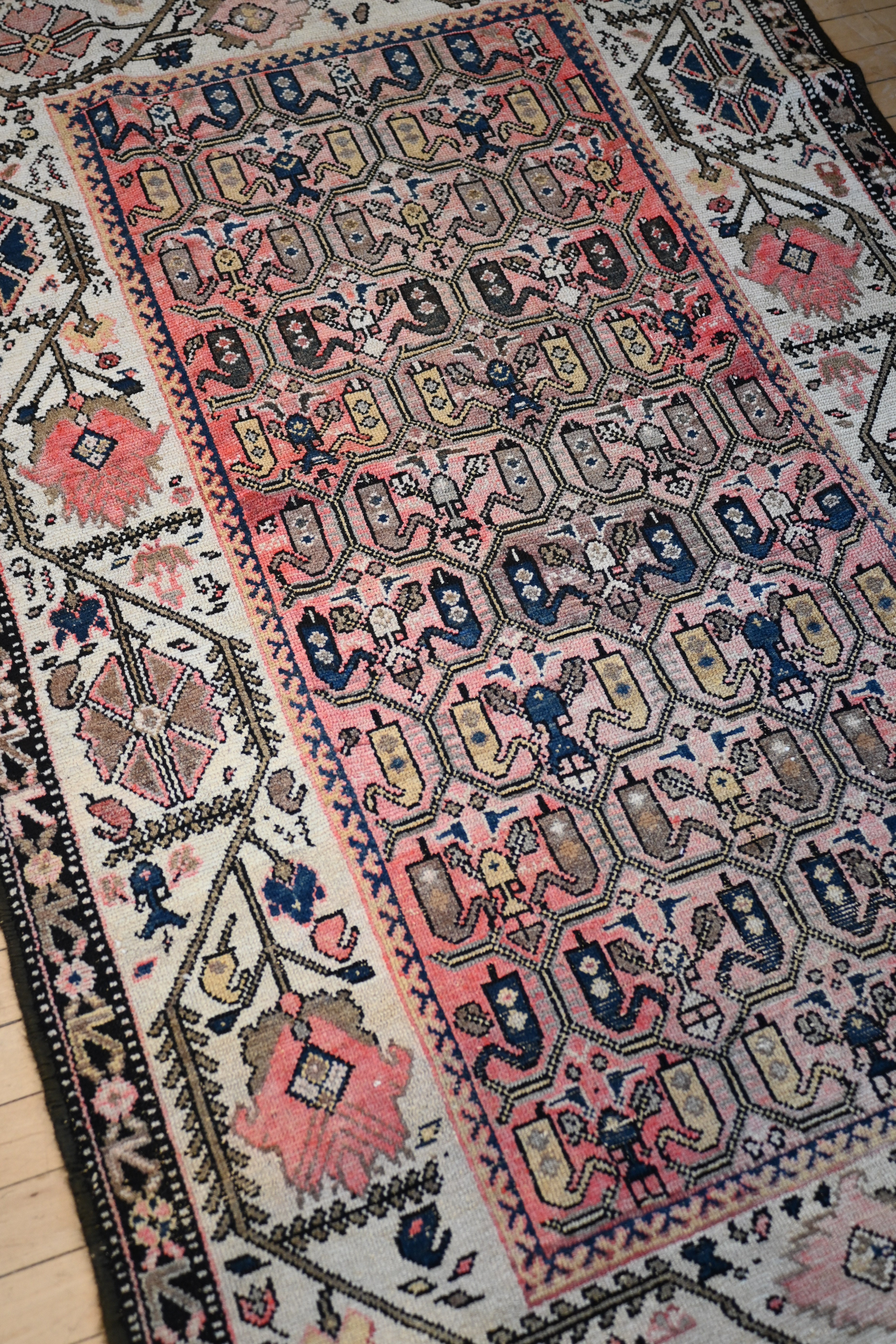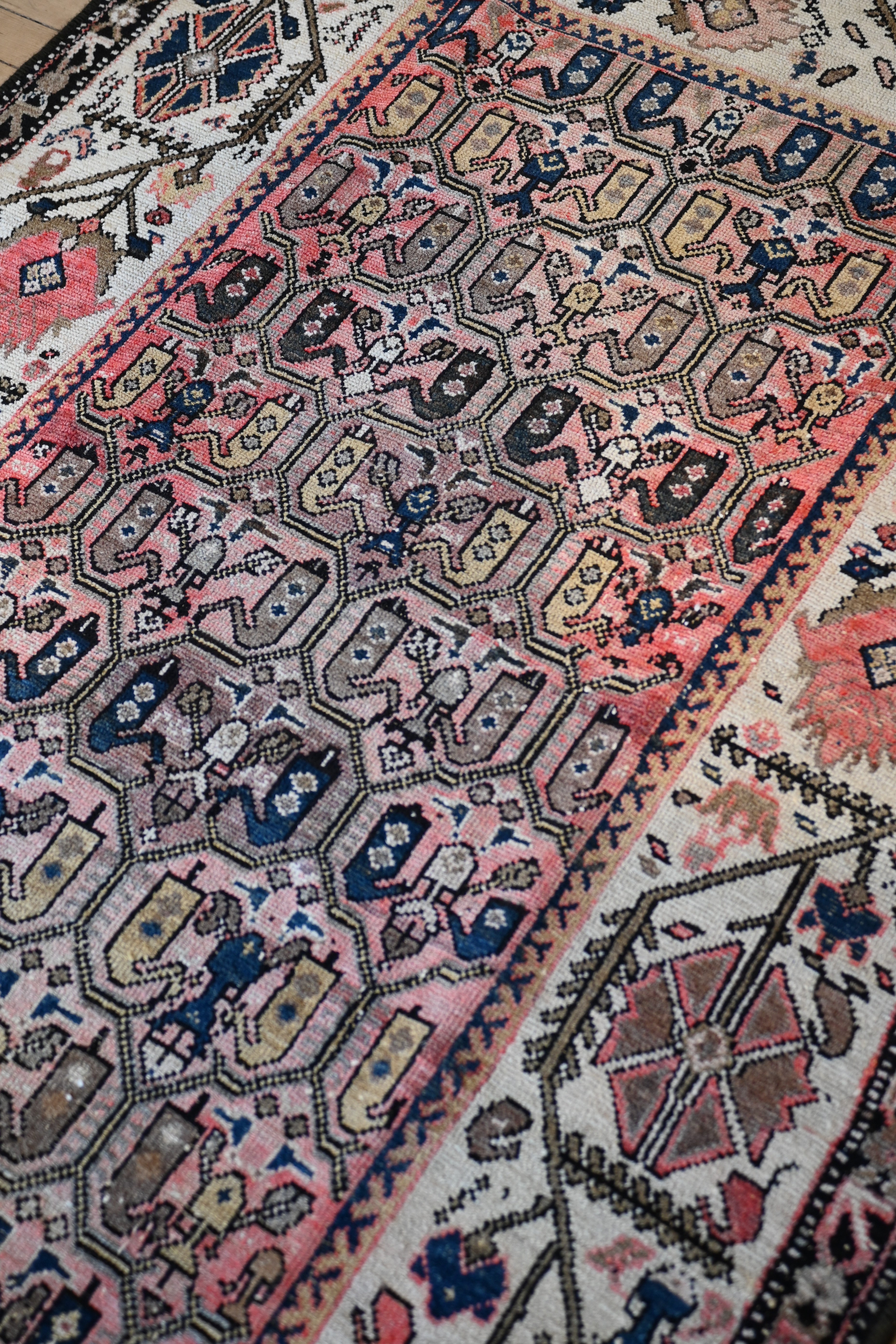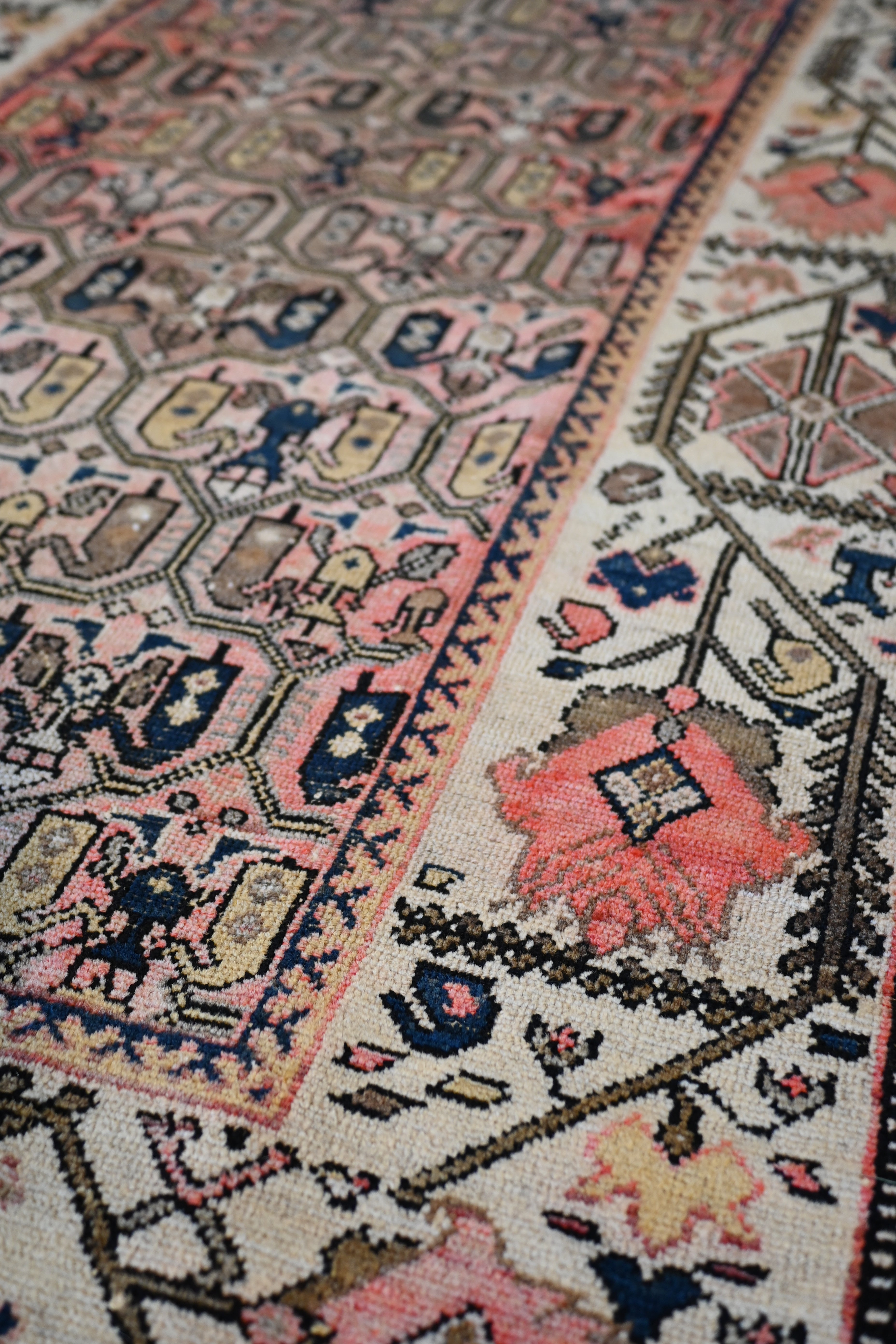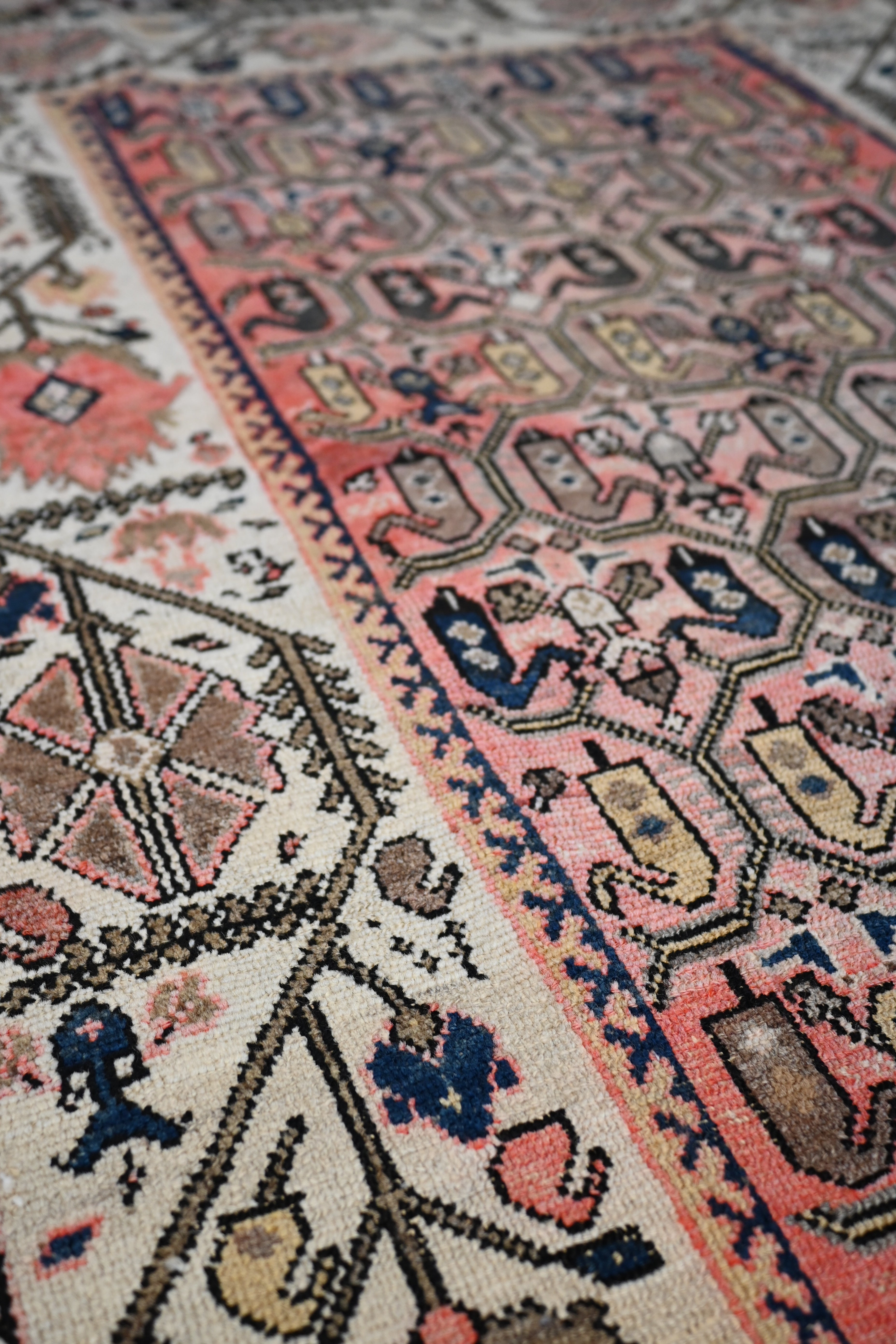 Early 20th century Malayer with a pink field and all over boteh design. Tones of olive green, indigo and taupe with a wide ivory border.