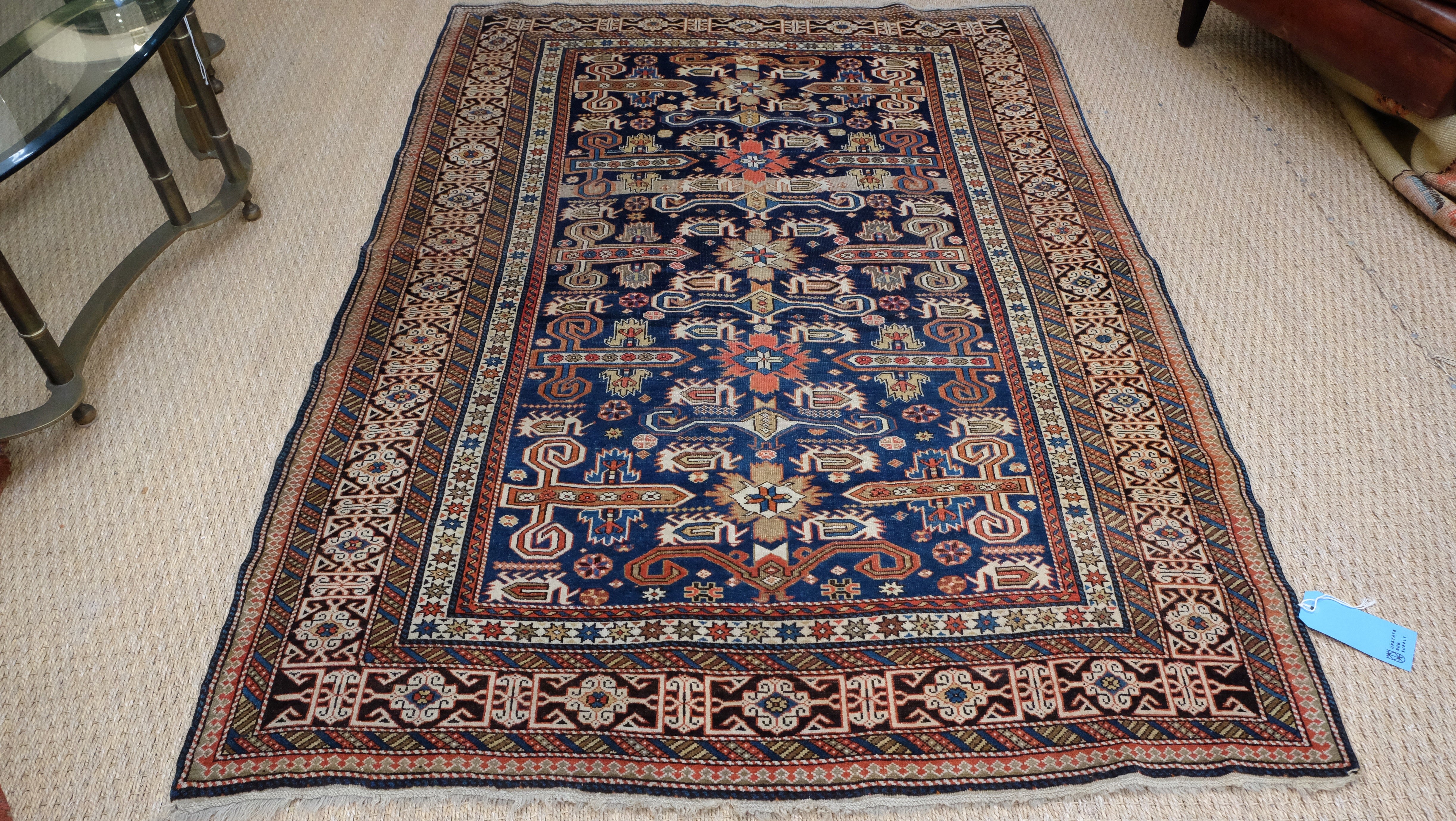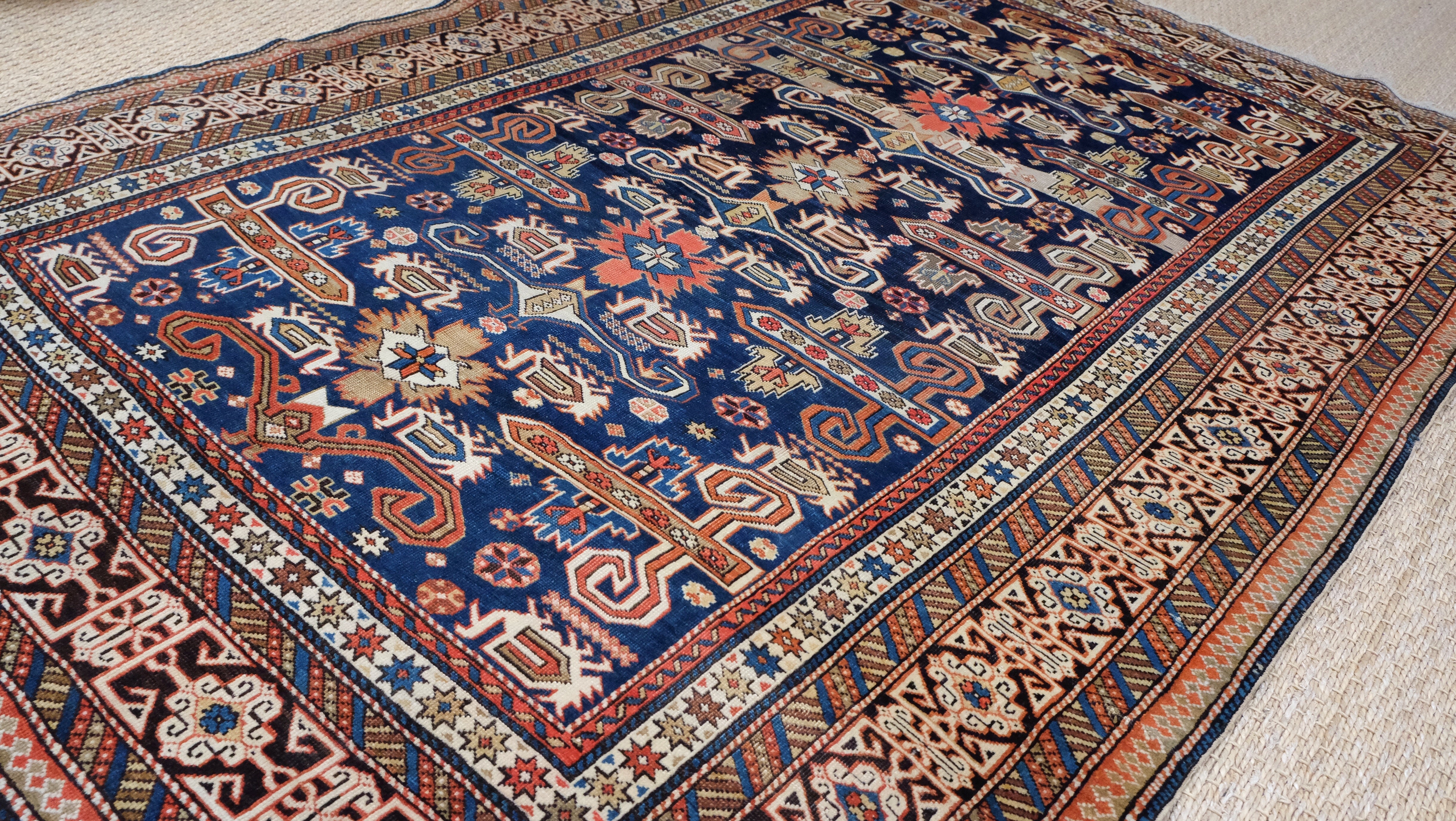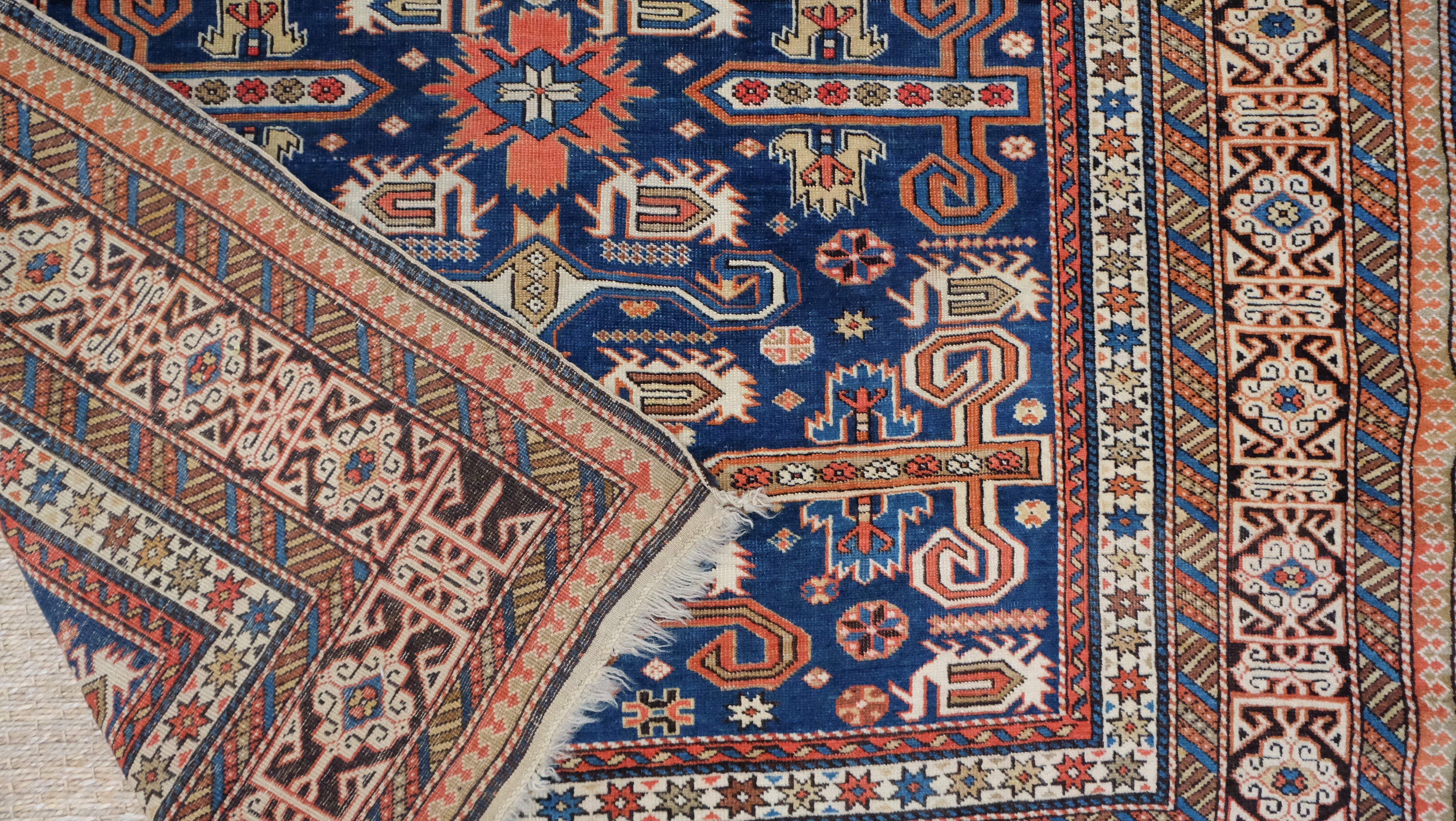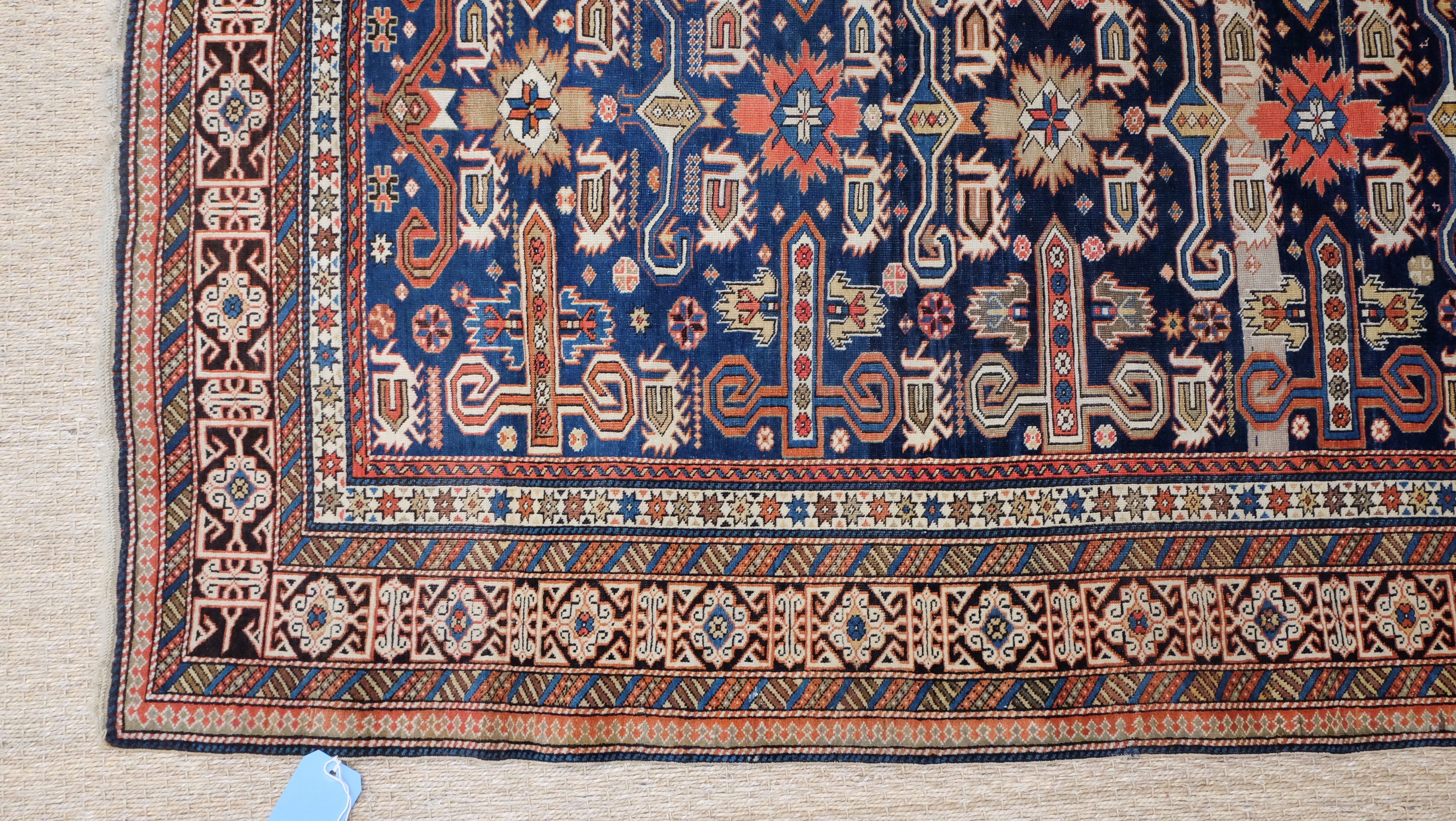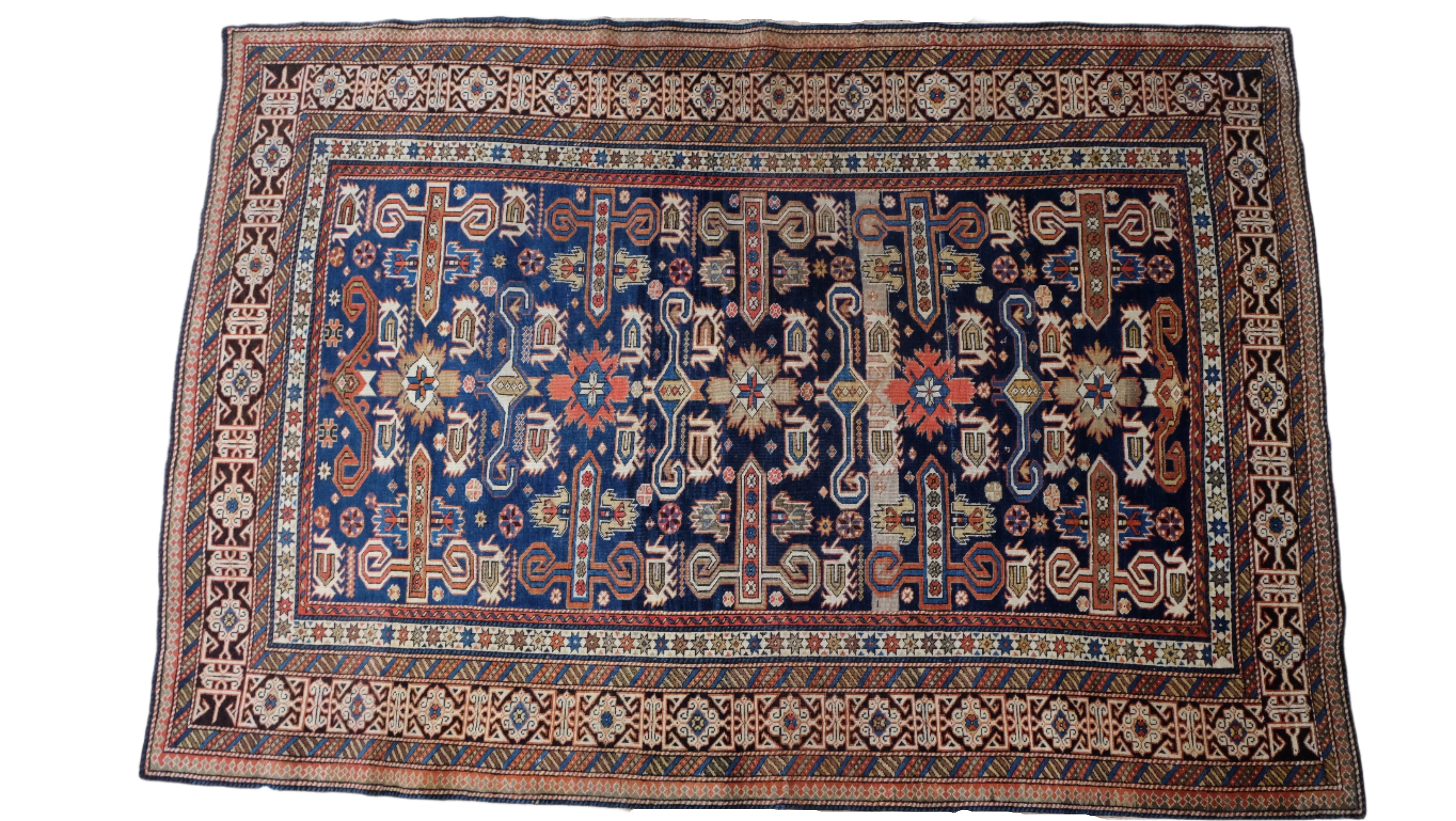 A fine quality Perpedil Kazak with indigo blue, camel brown, ivory and tomato red.