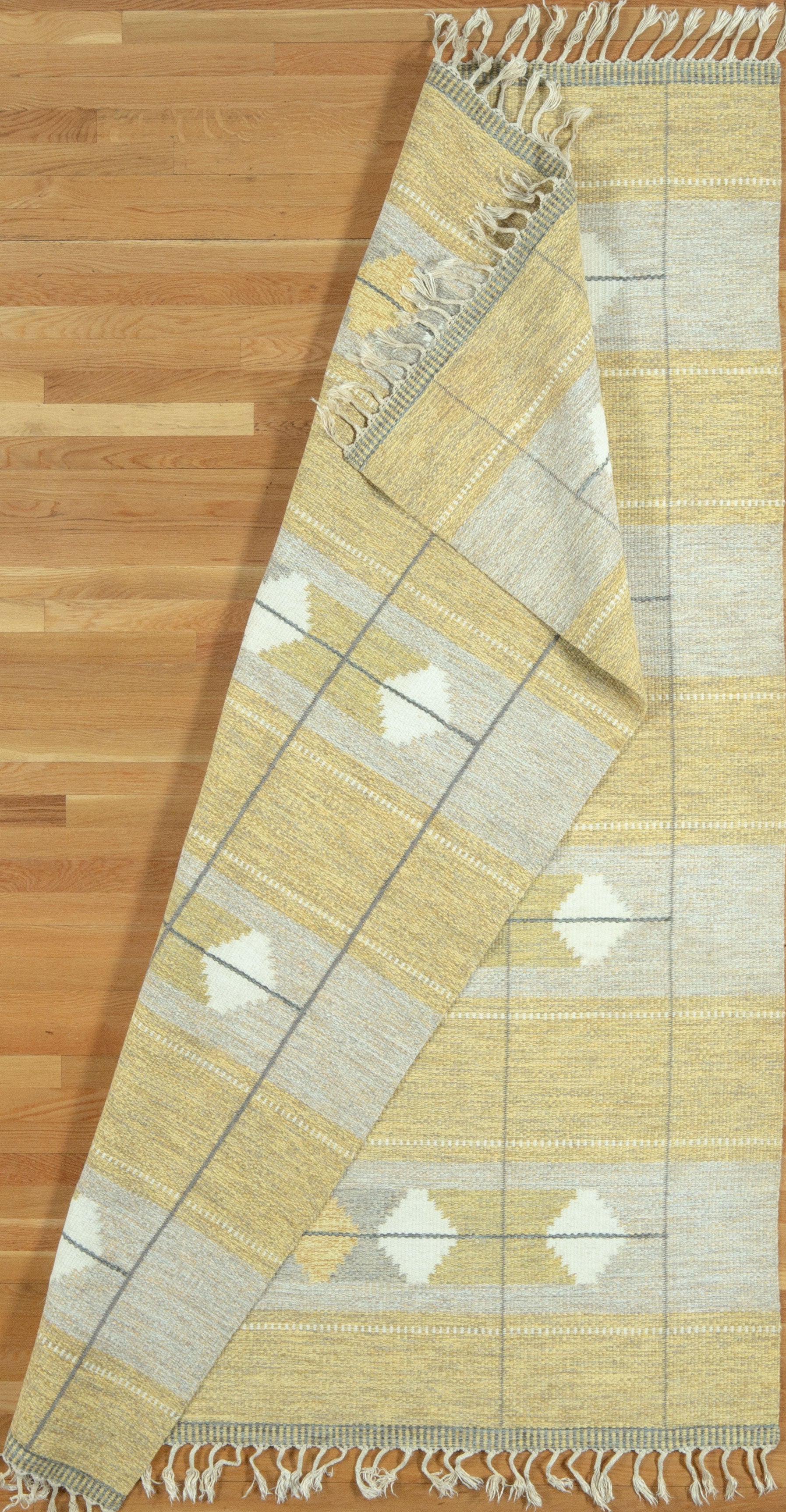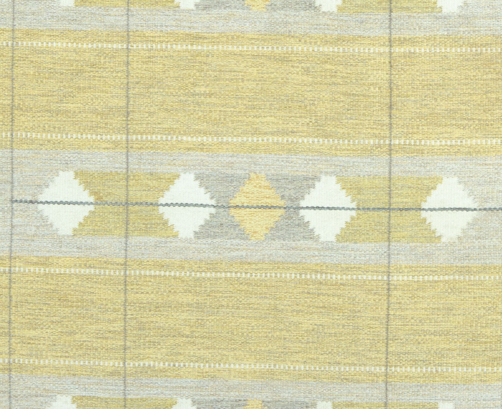 mid century Swedish with a subtle diamond pattern and tones of pale yellow, lime green, grey, beige and ivory