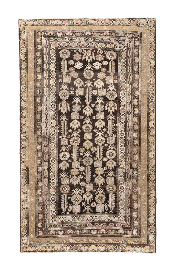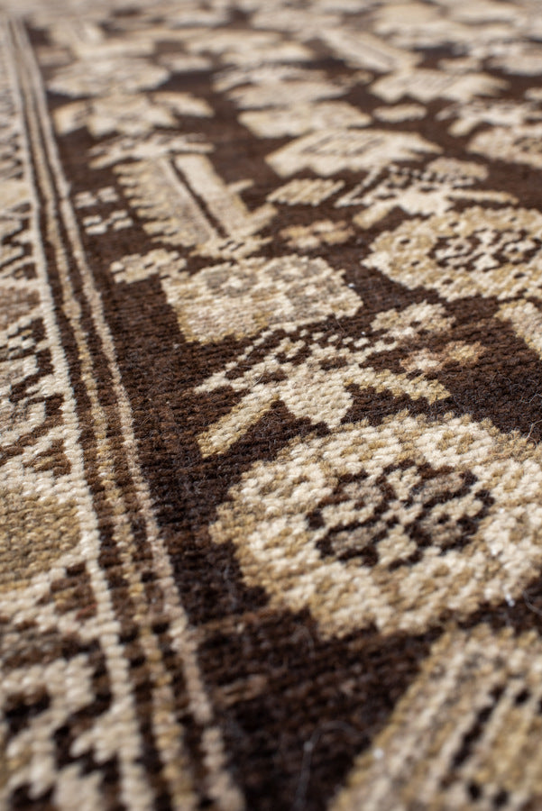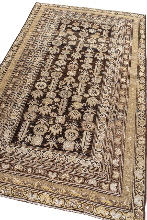 Karabagh with a cocoa field and tones of taupe, nutmeg, ivory and pale yellow