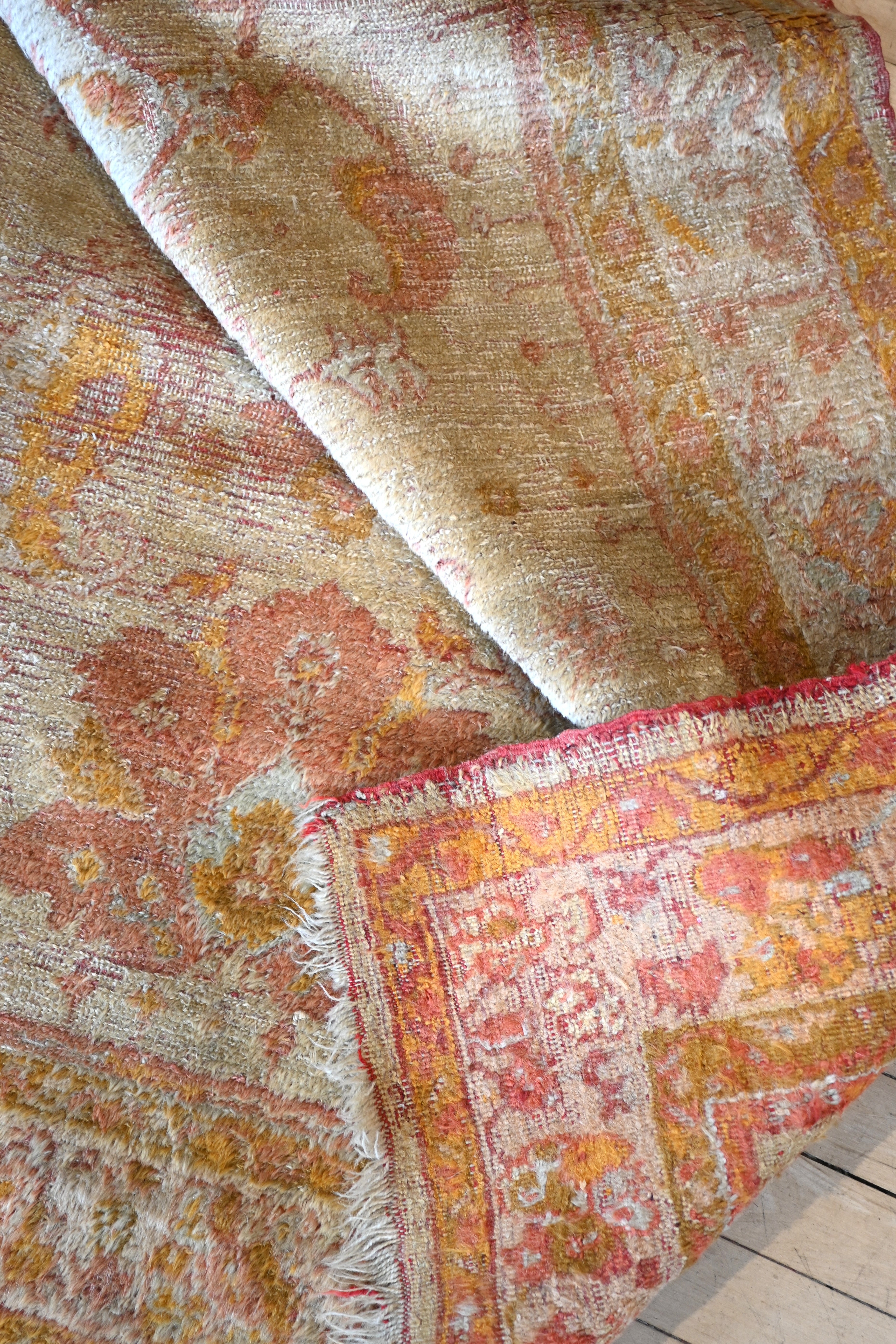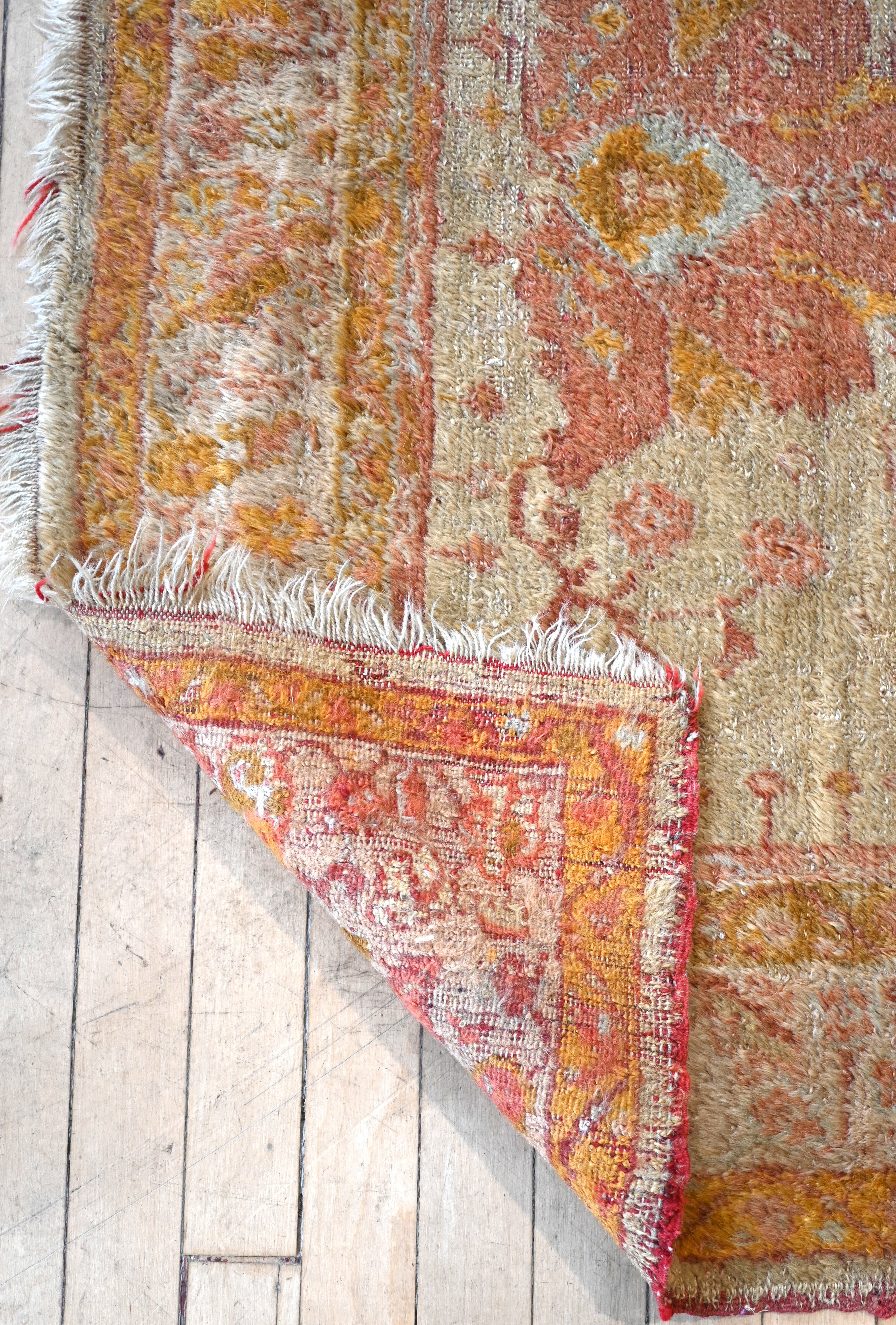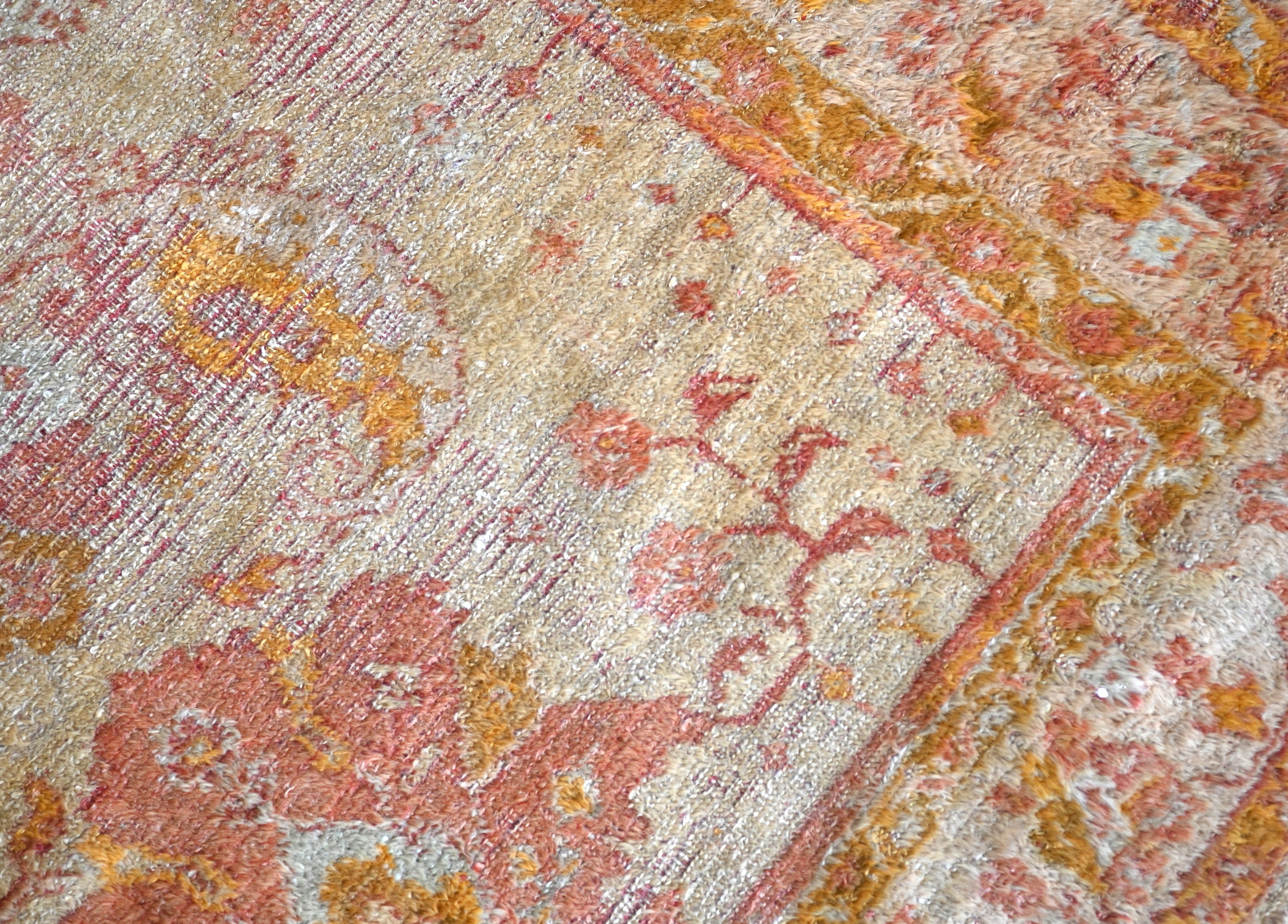 19th century angora wool Oushak with cream, soft pink, ivory and tangerine