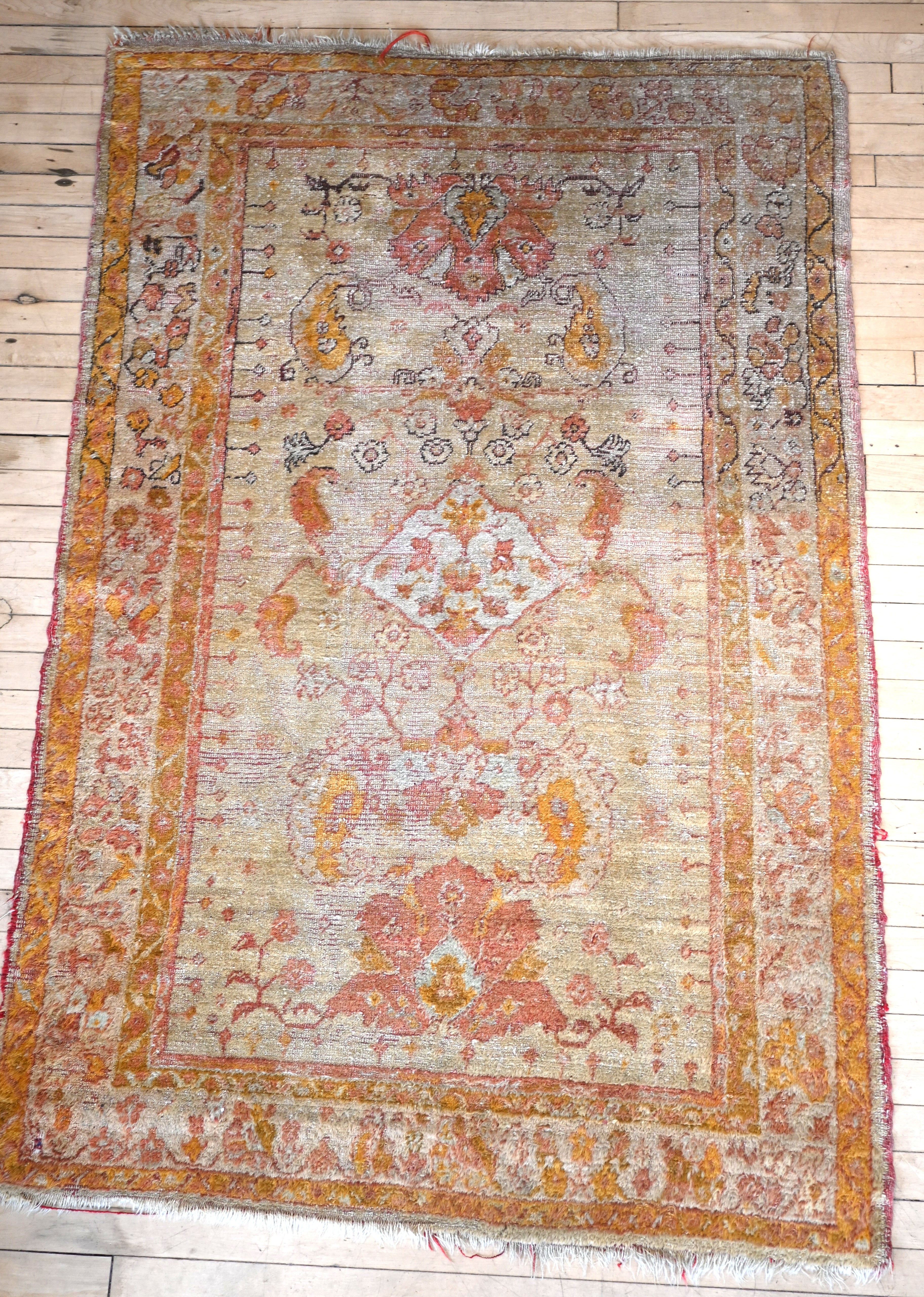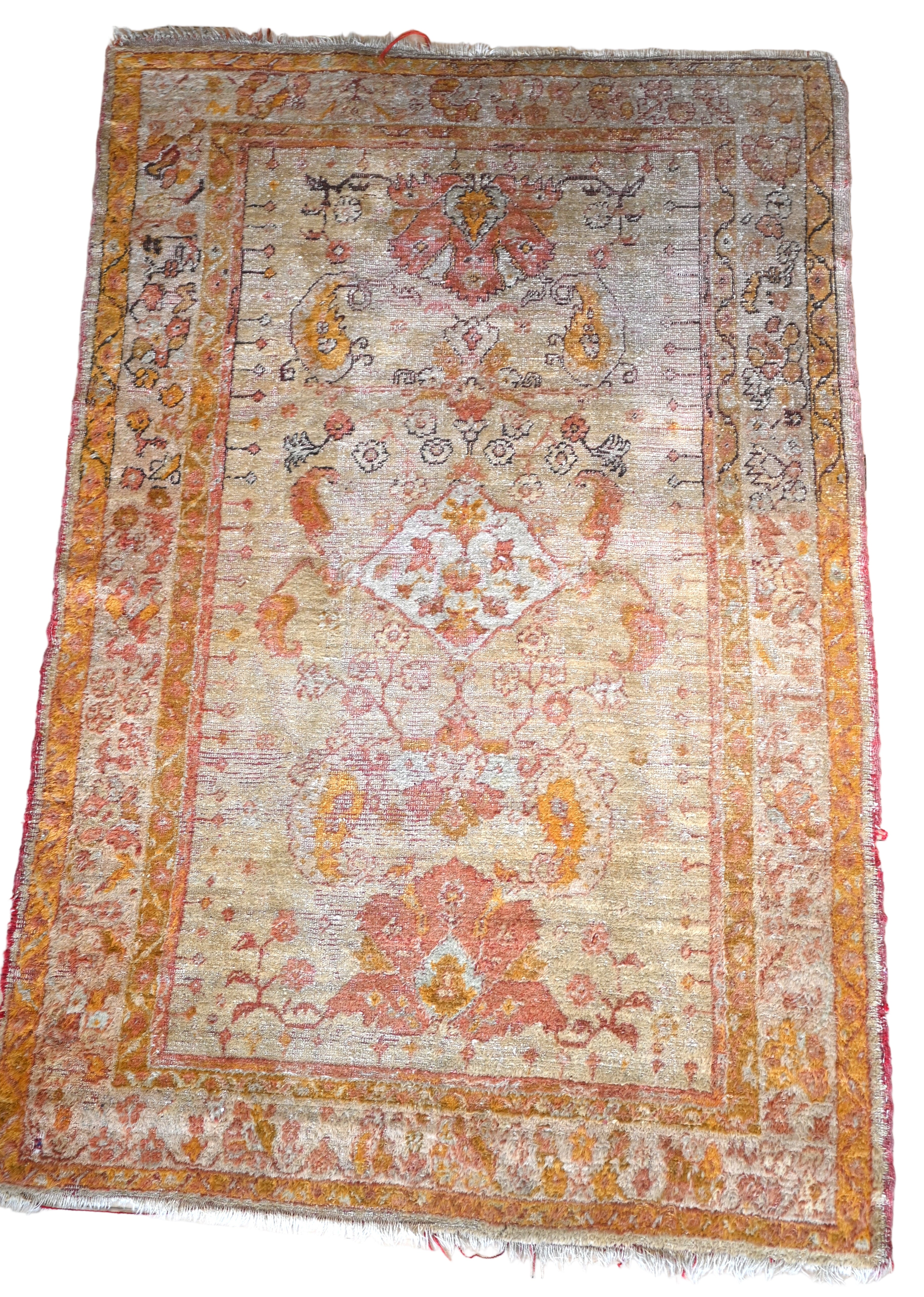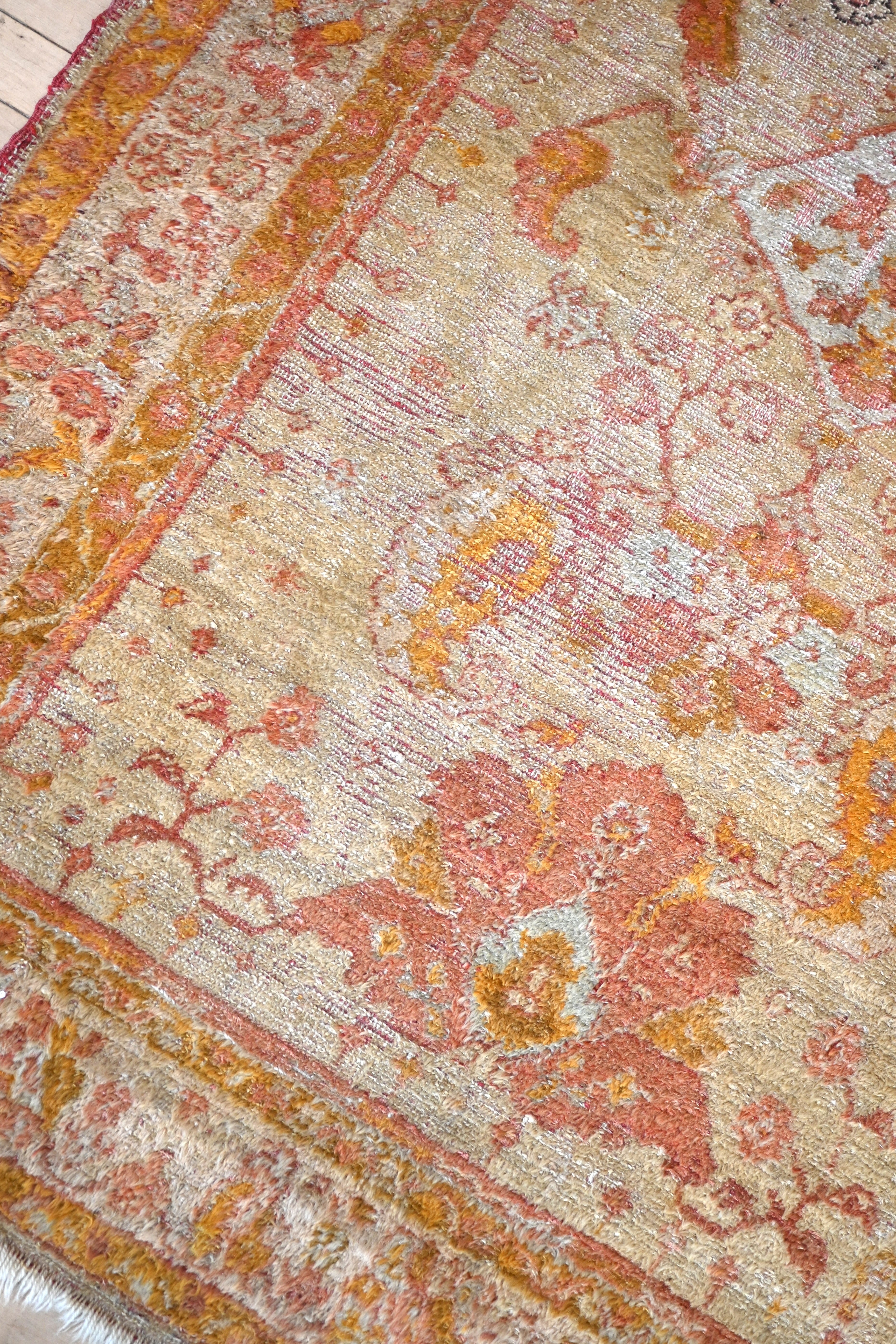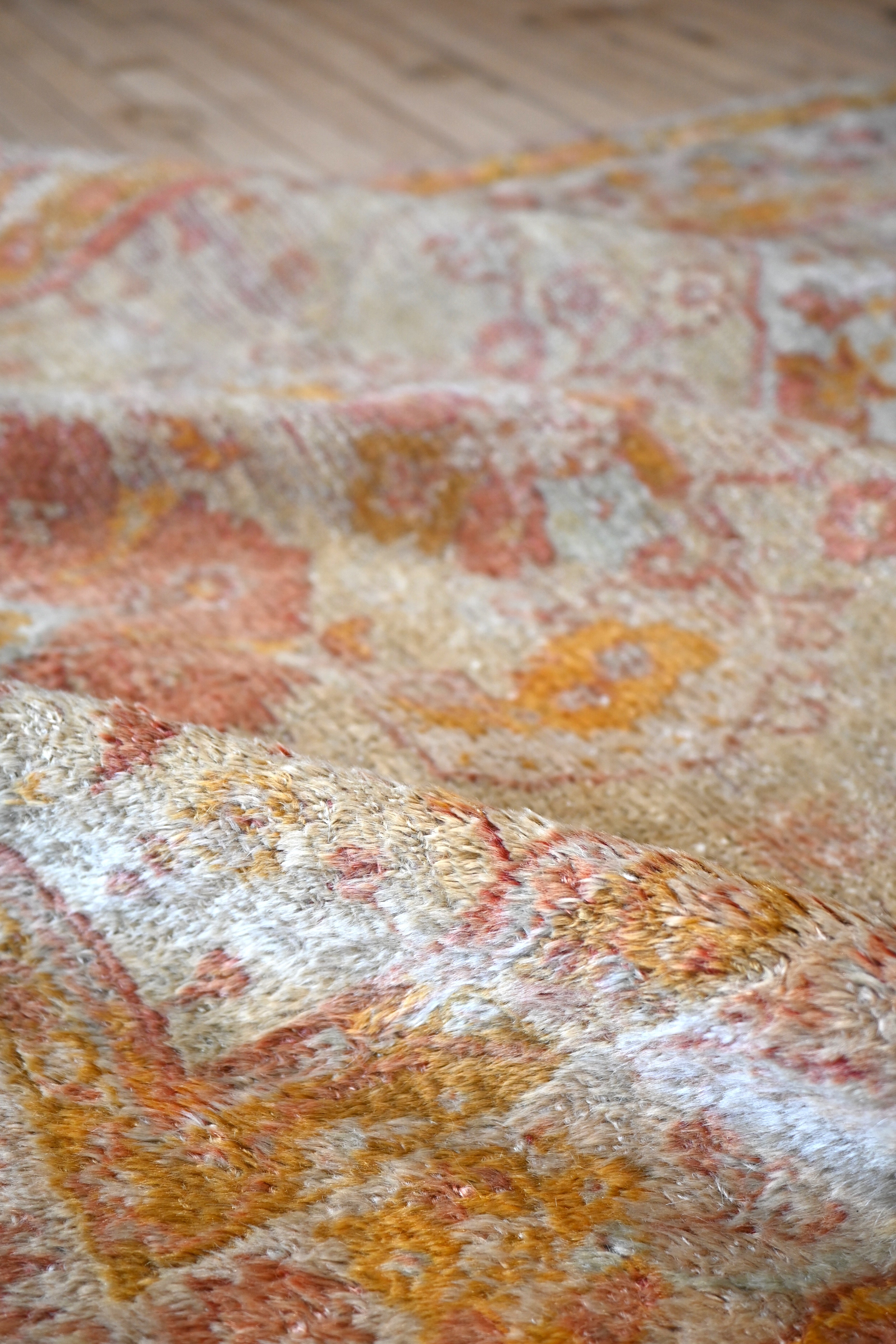 19th century angora wool Oushak with cream, soft pink, ivory and tangerine