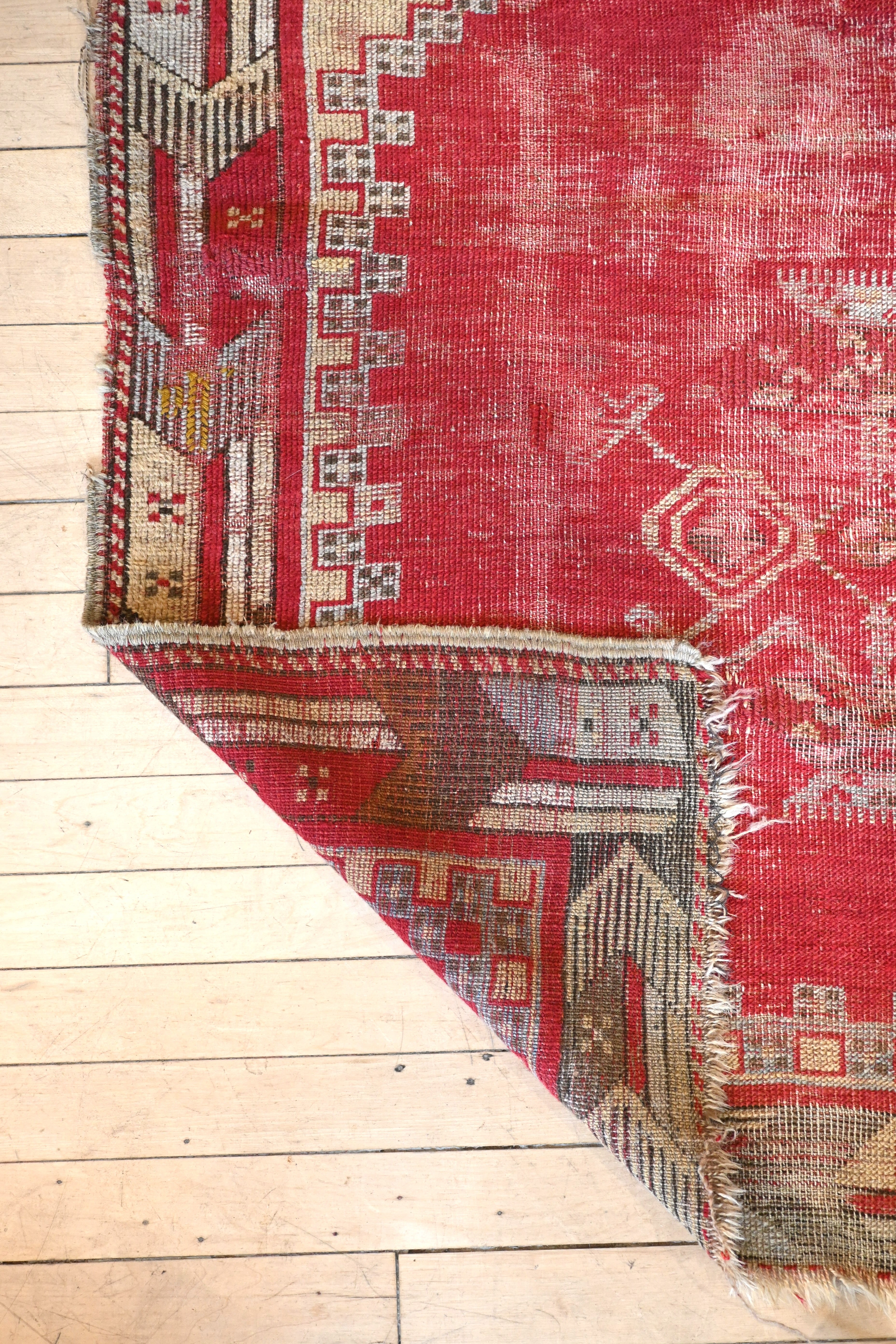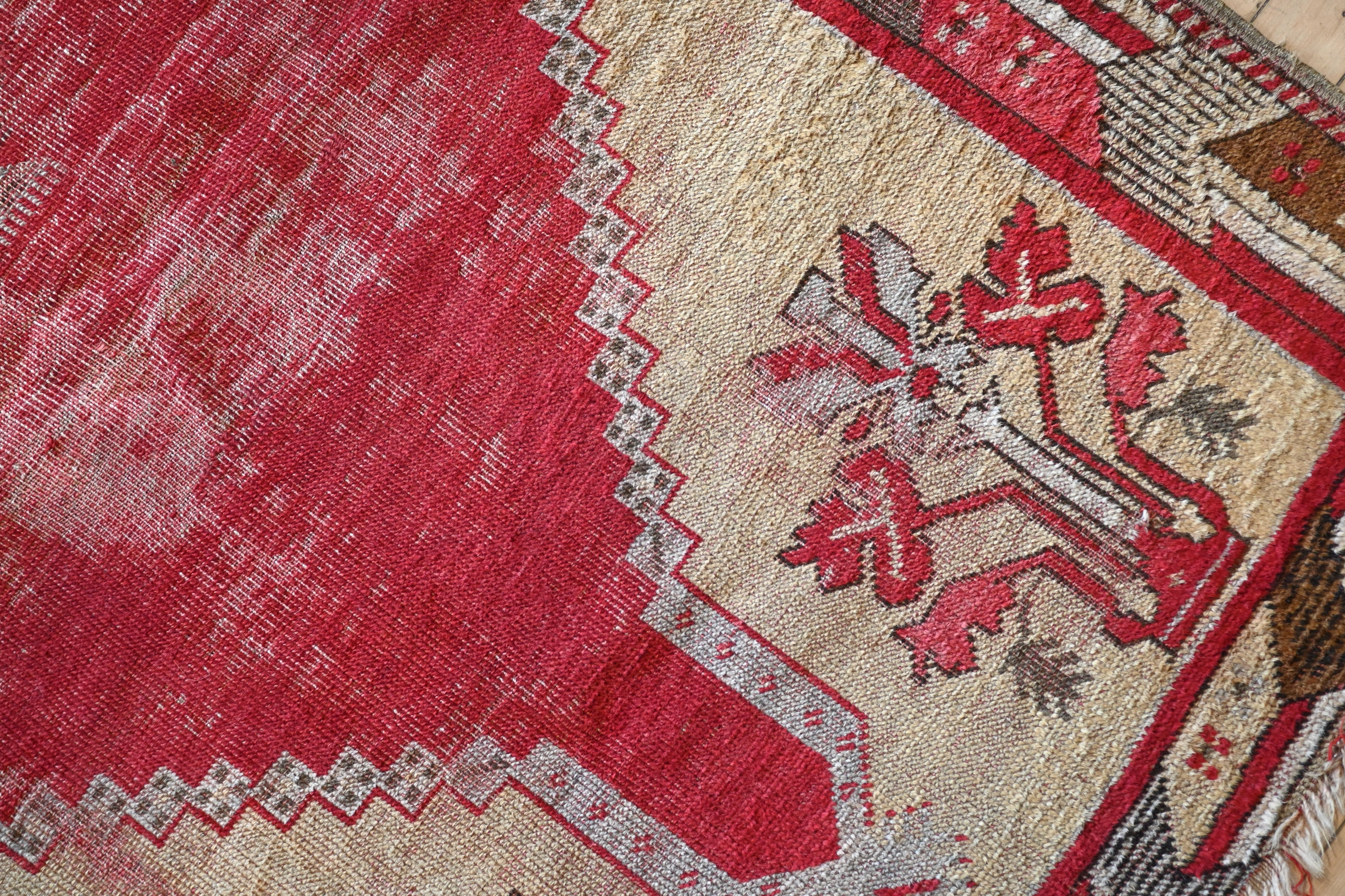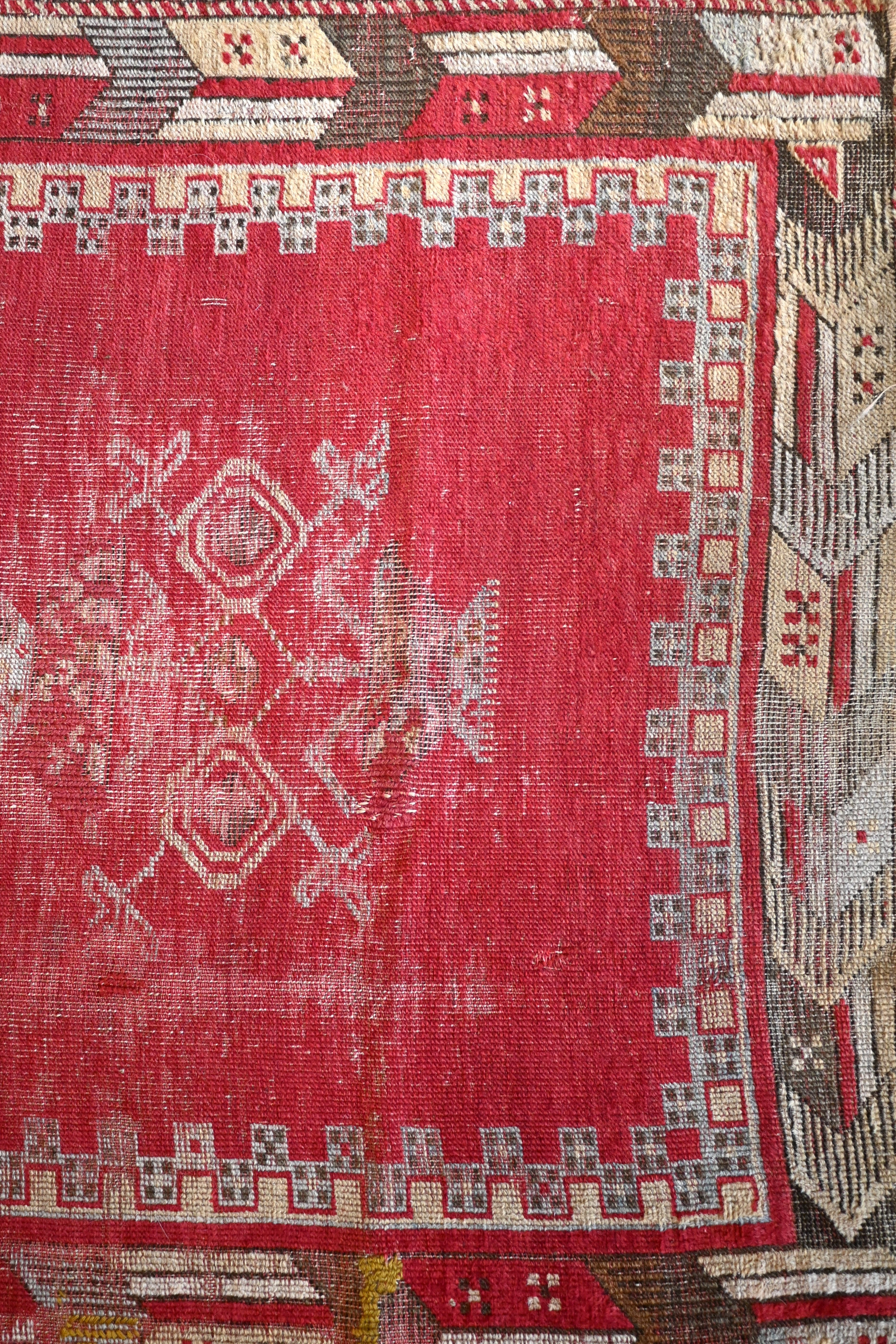 19th century Turkish prayer rug with vibrant pink, brown, soft yellow and gray