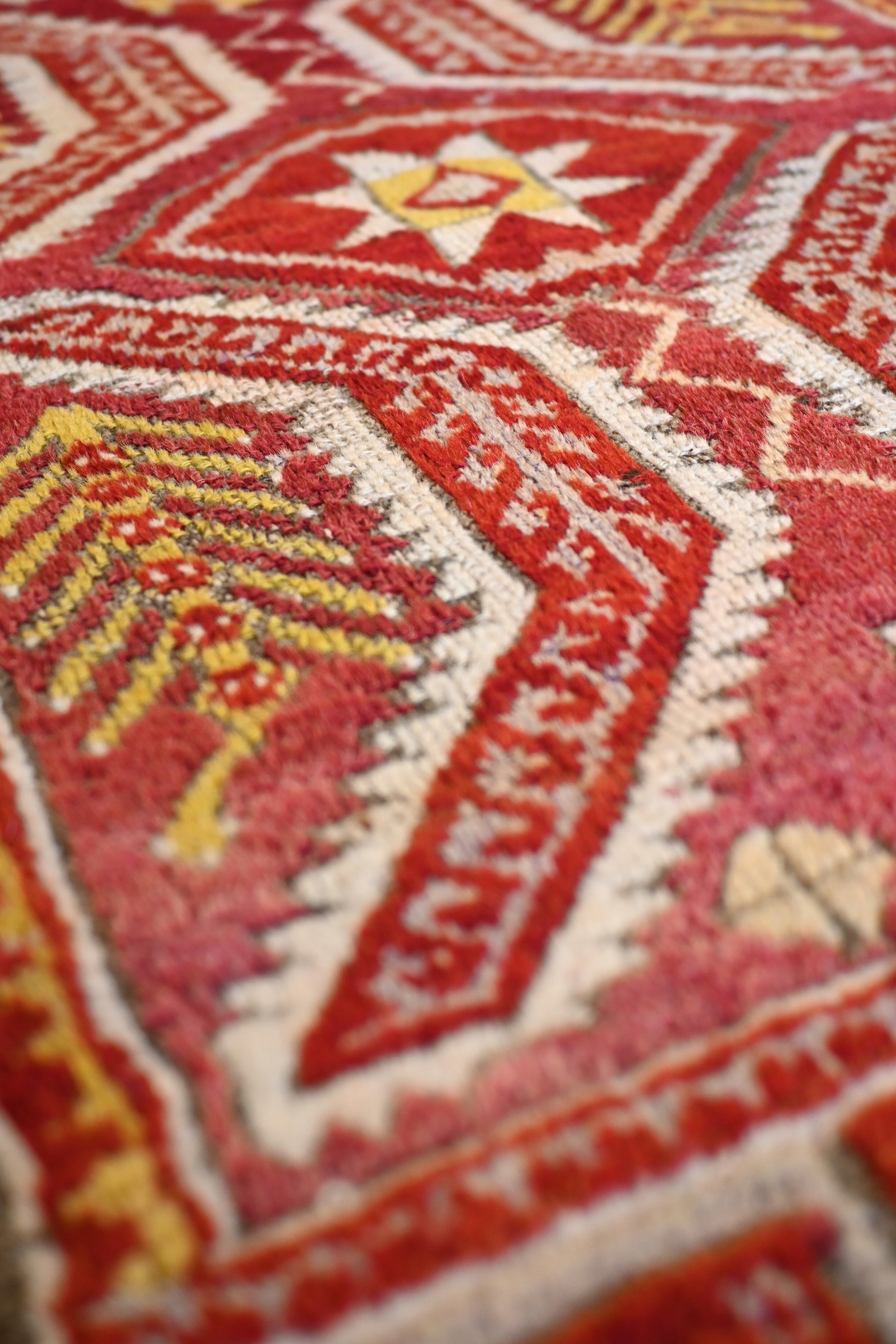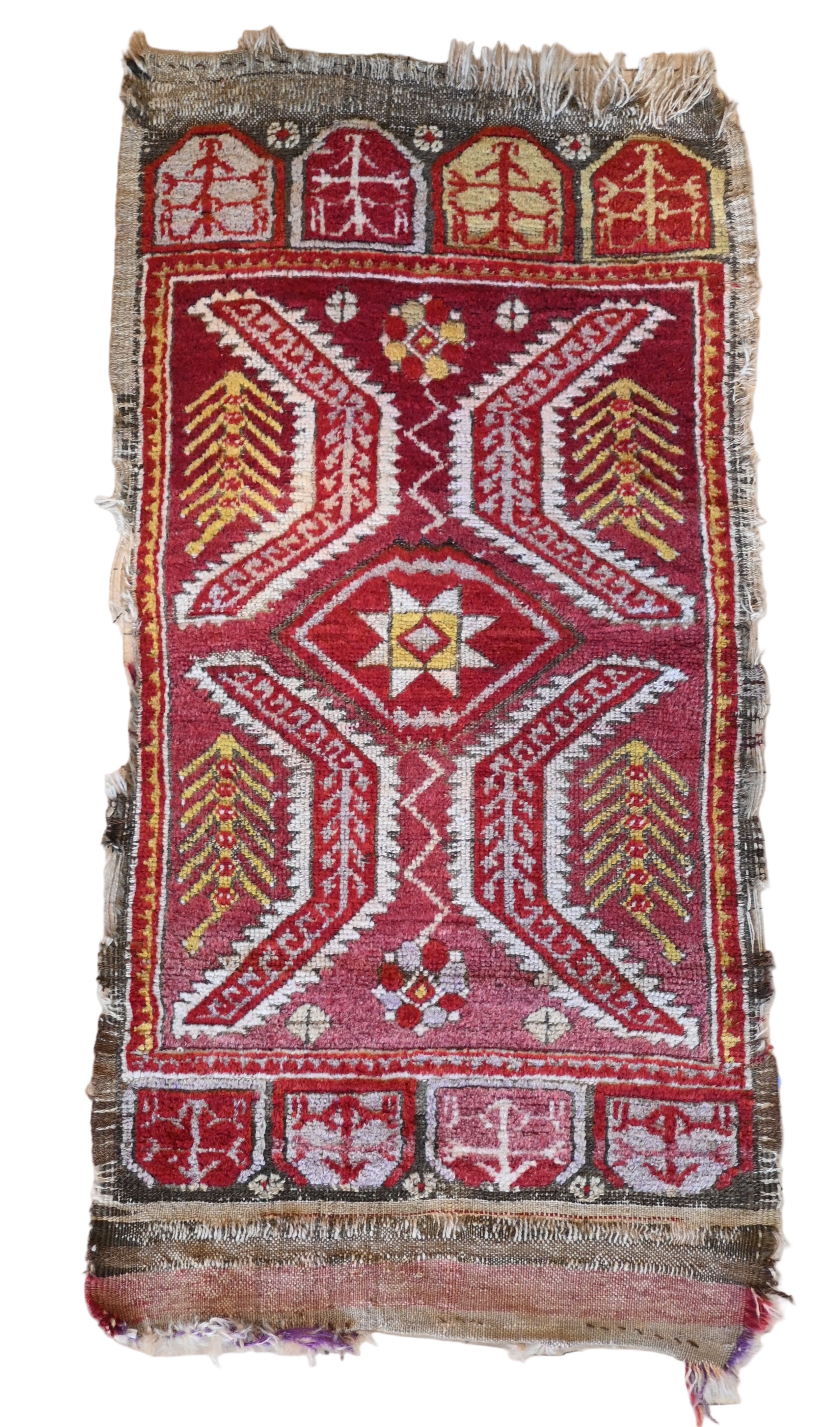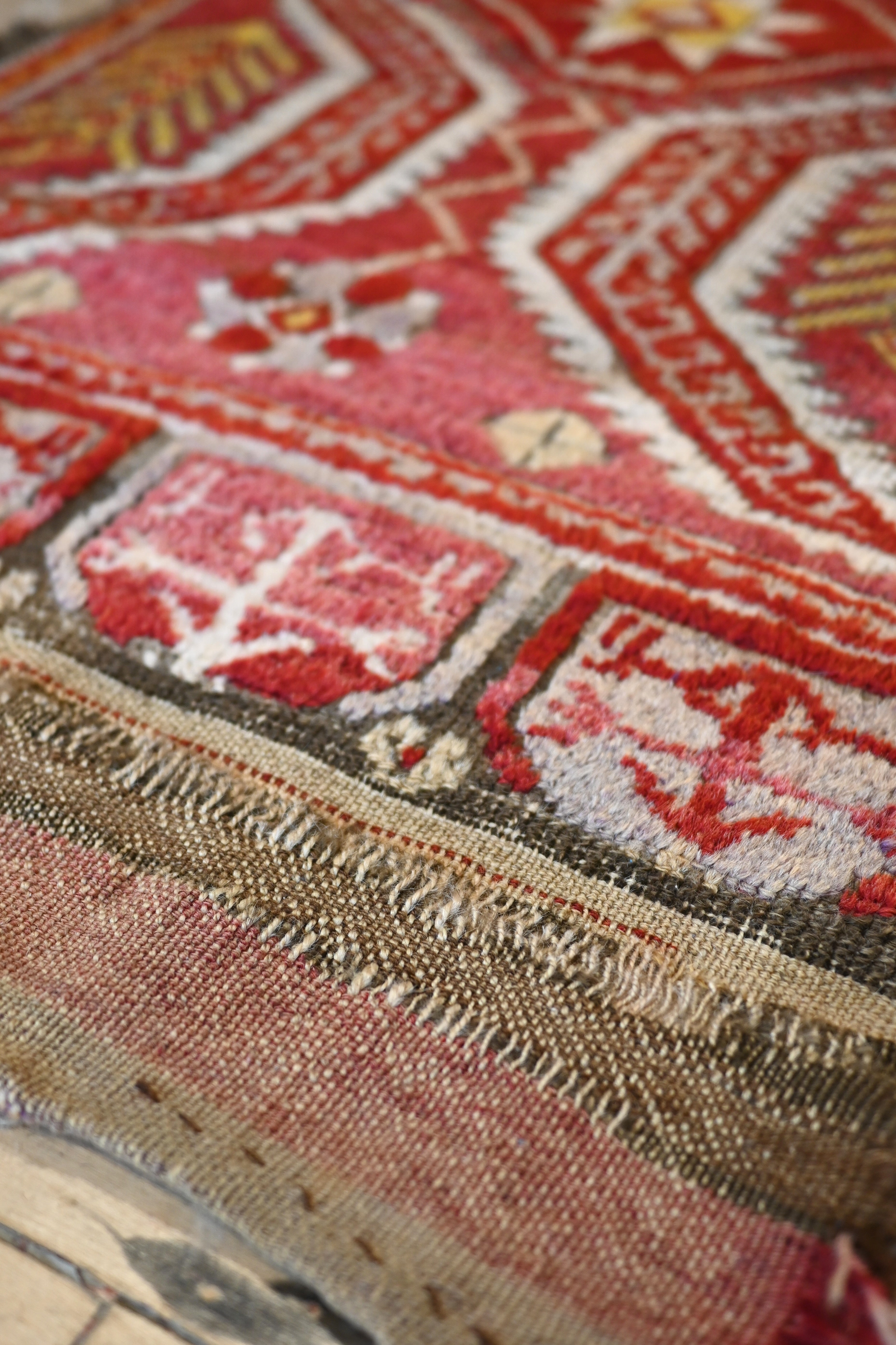 Antique Yastik with rose pink, red, ivory and yellow with kilim ends