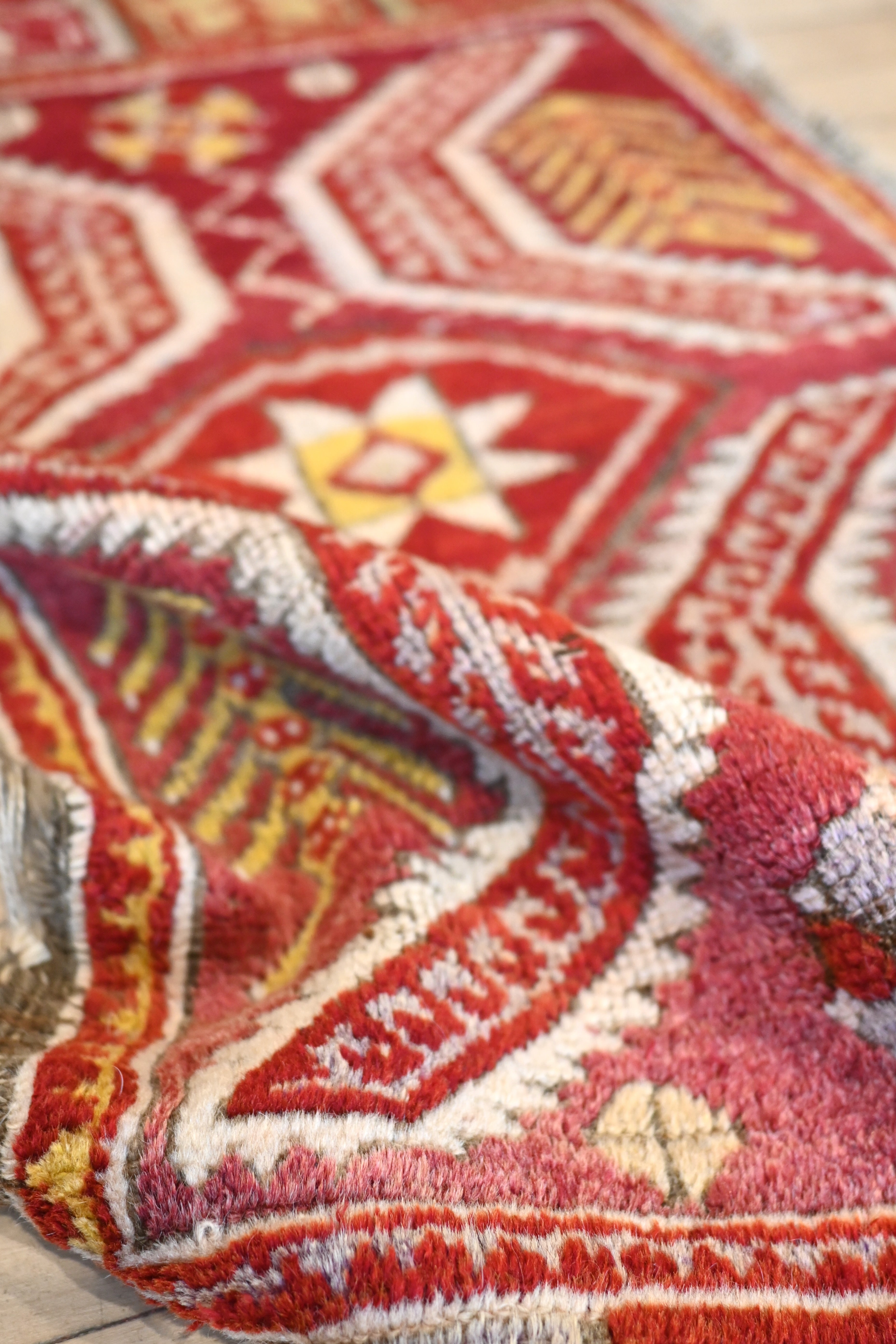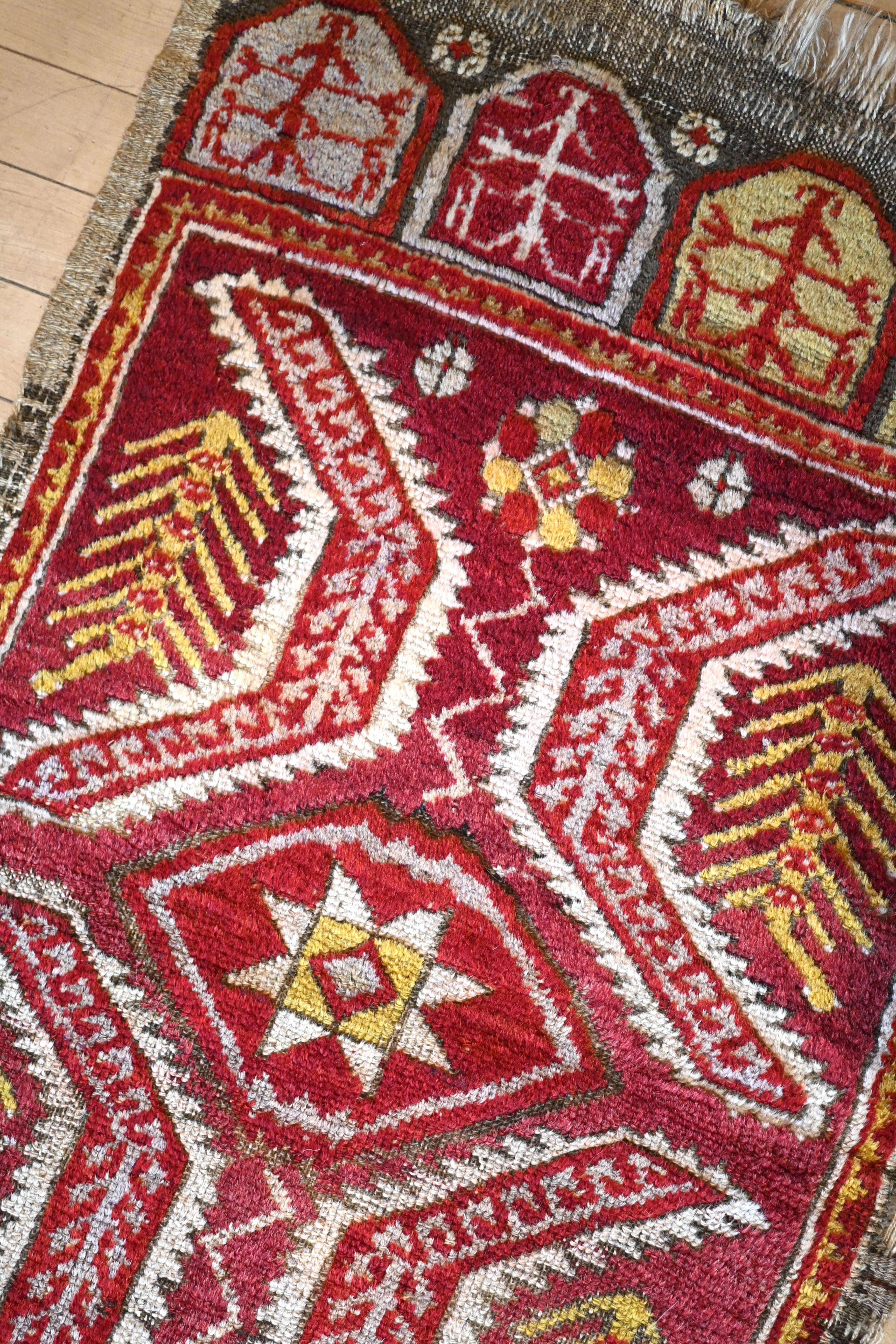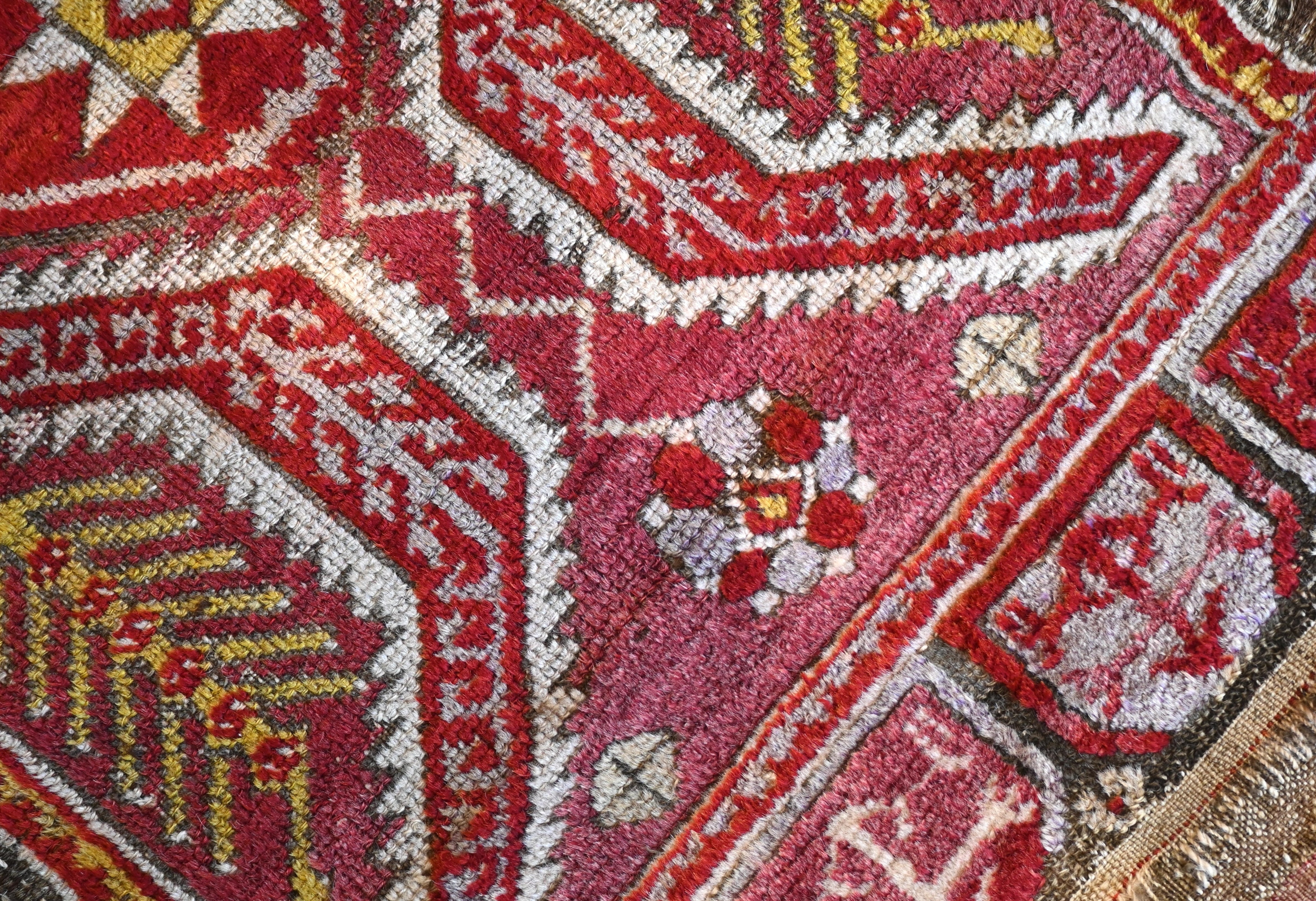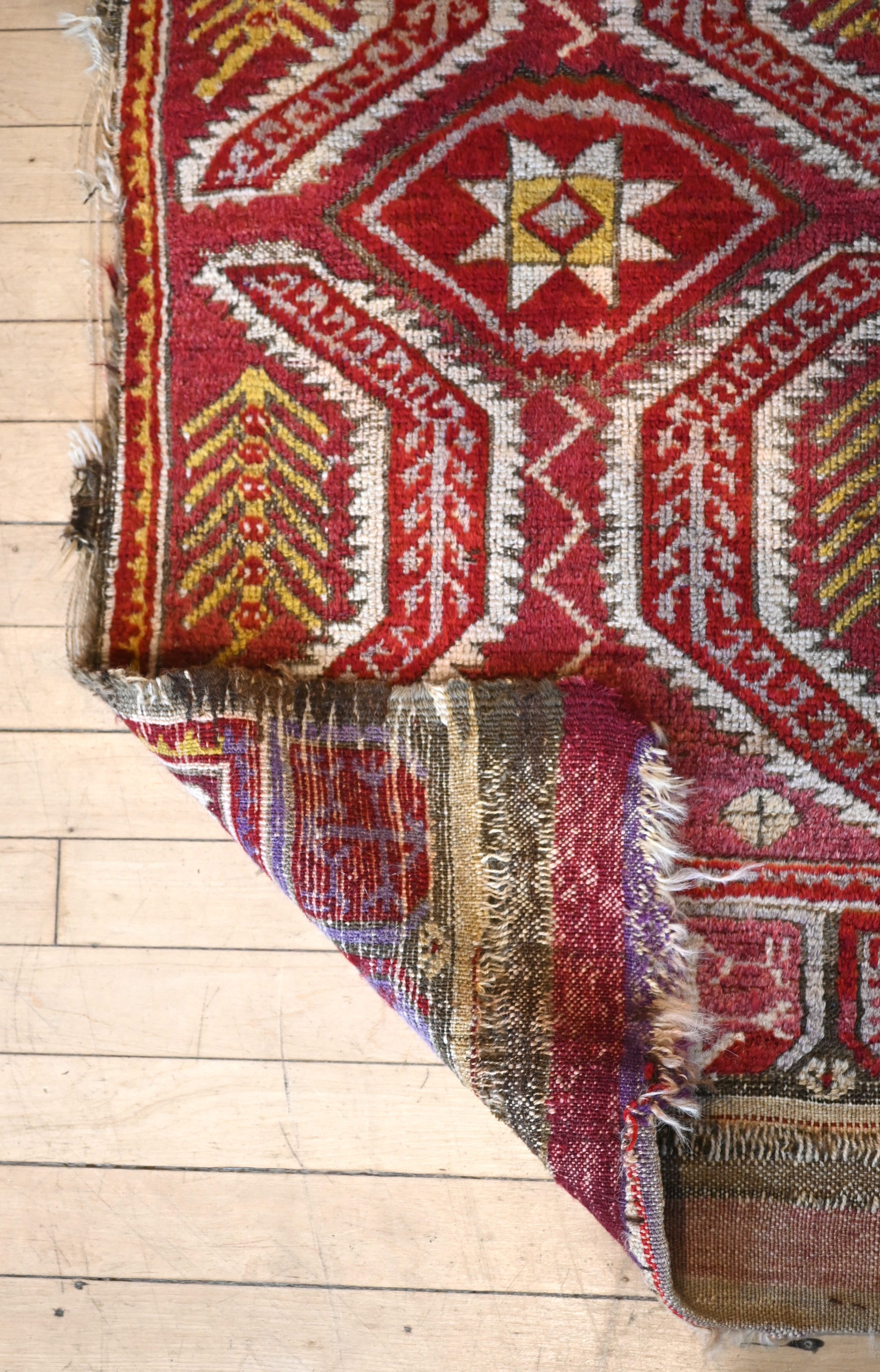 Antique Yastik with rose pink, red, ivory and yellow with kilim ends