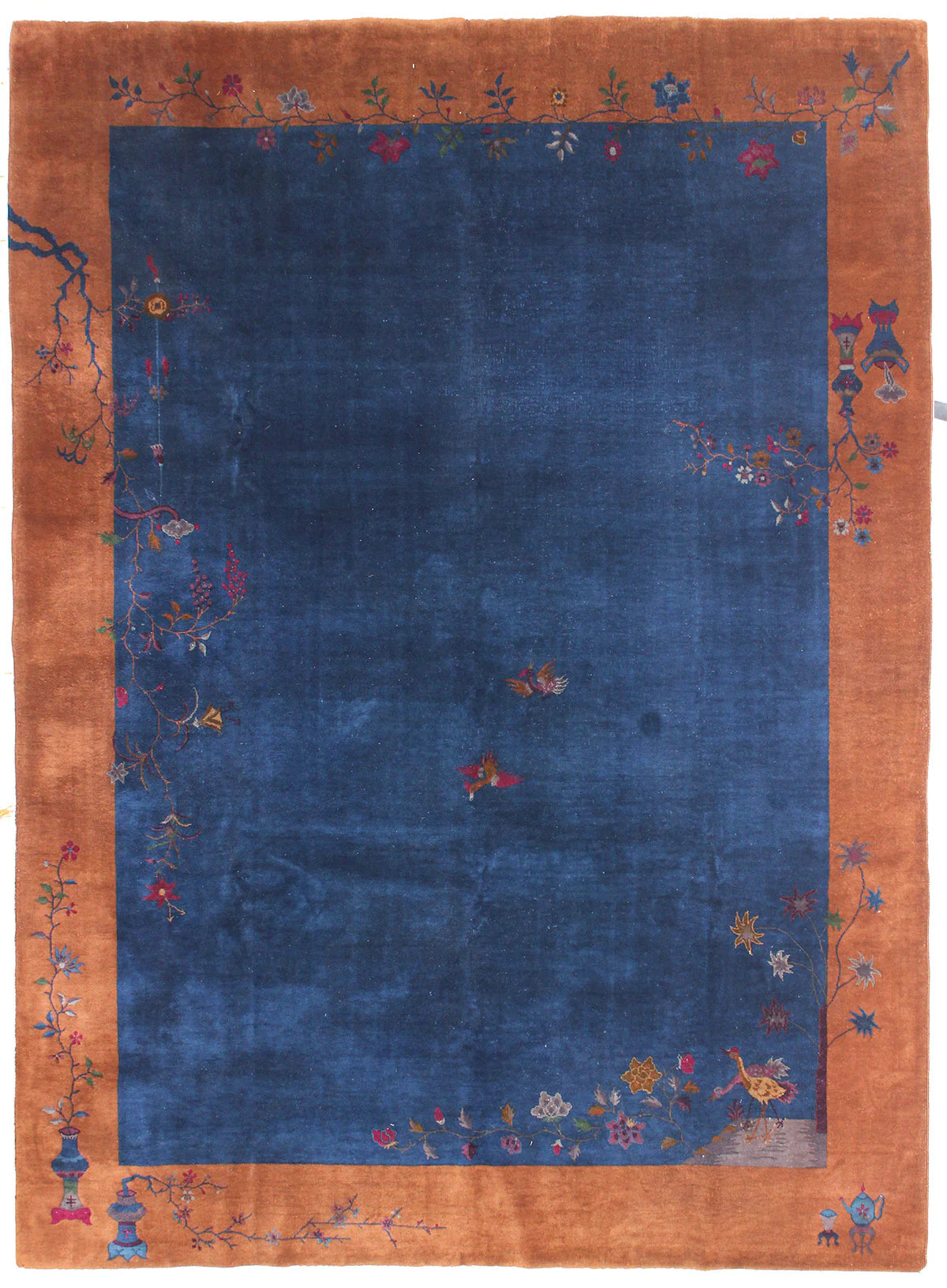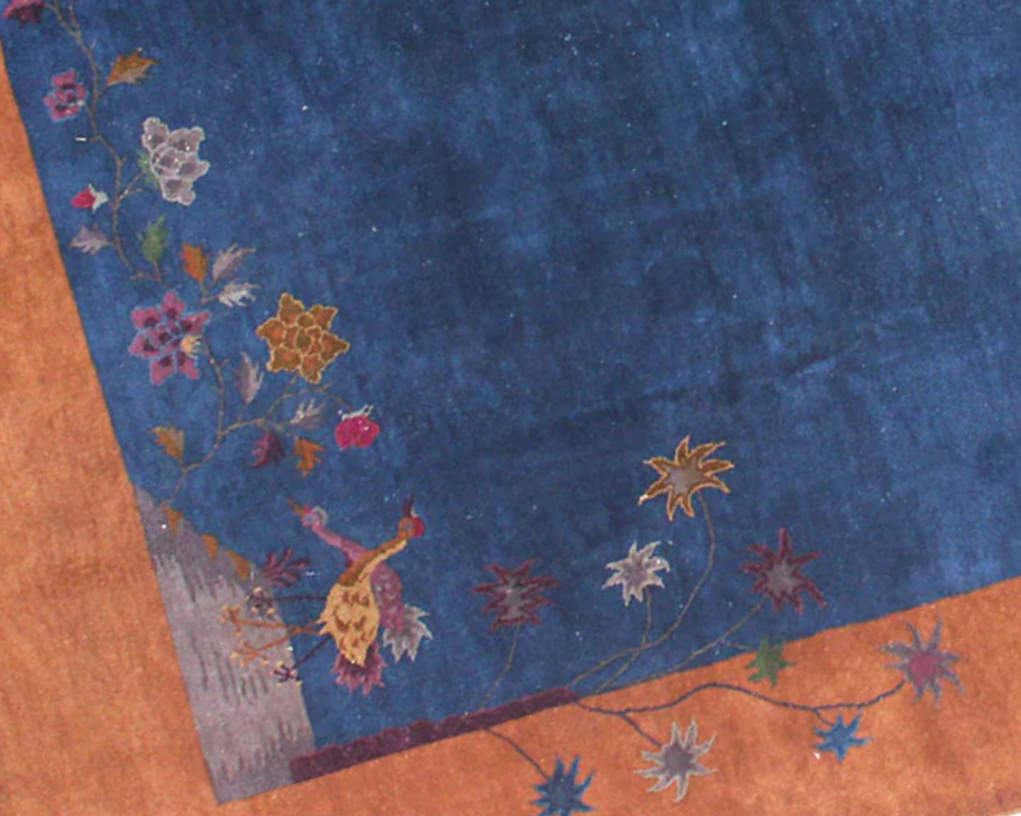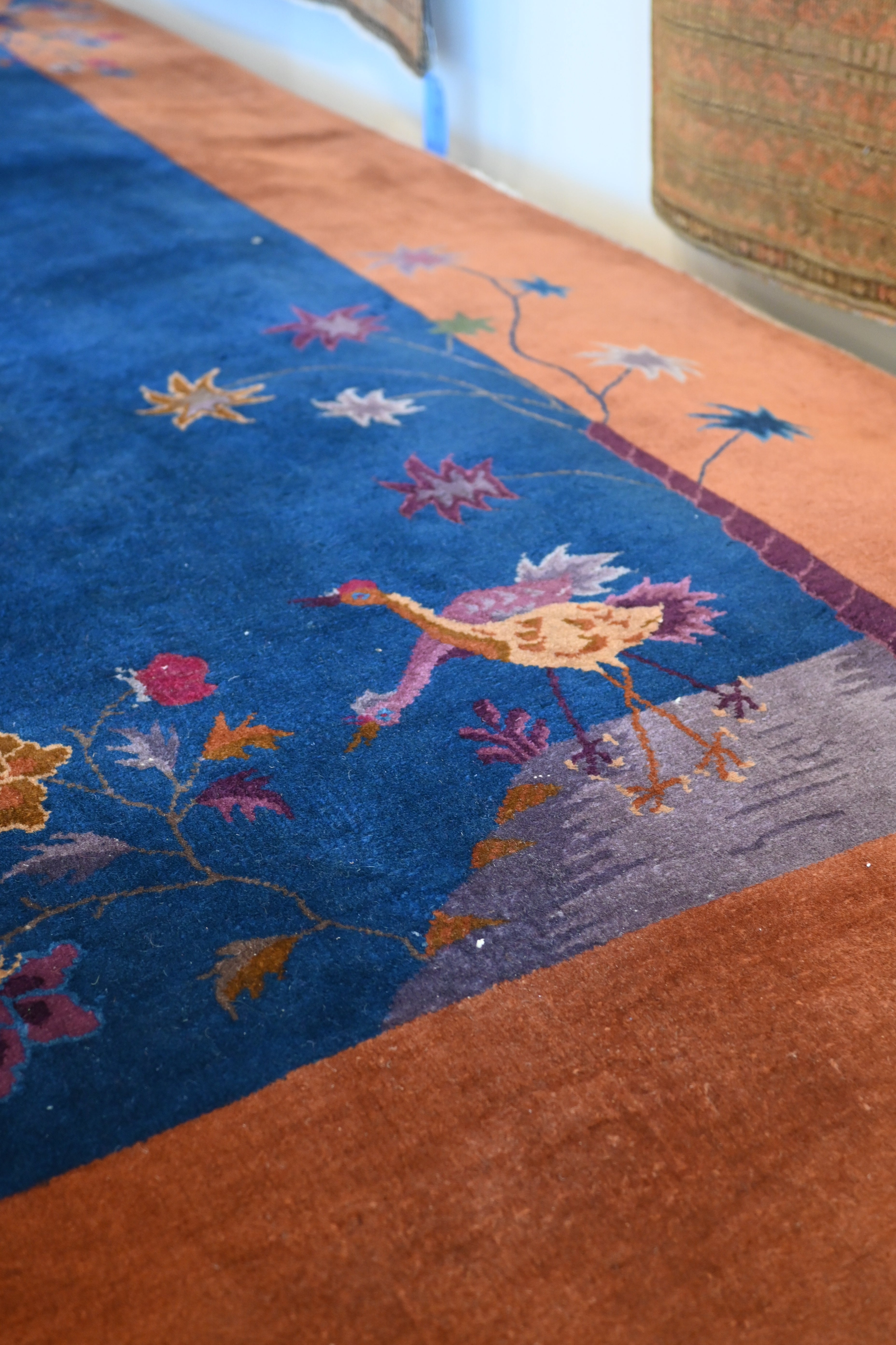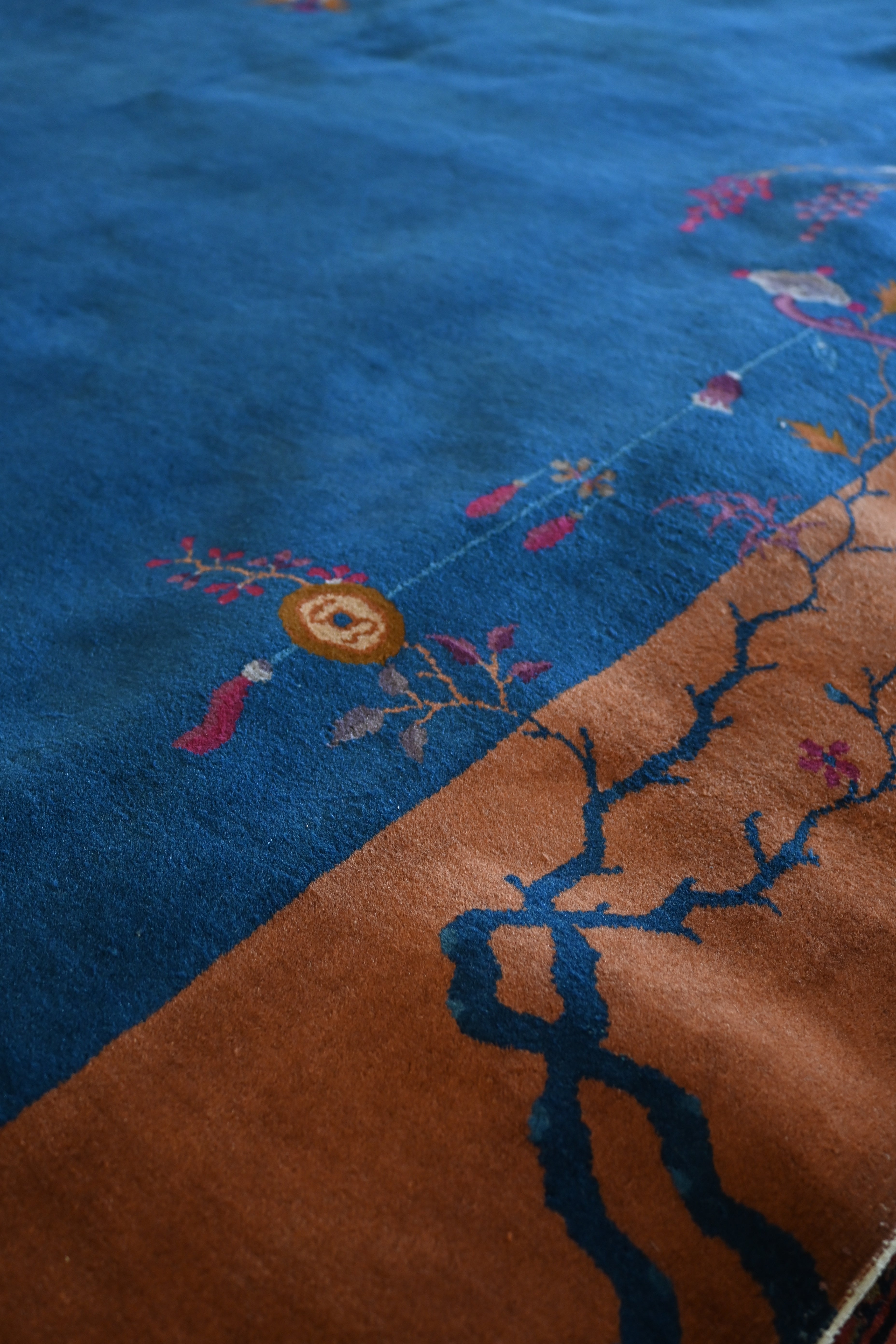 Art Deco Chinese with a midnight blue and rich caramel brown
