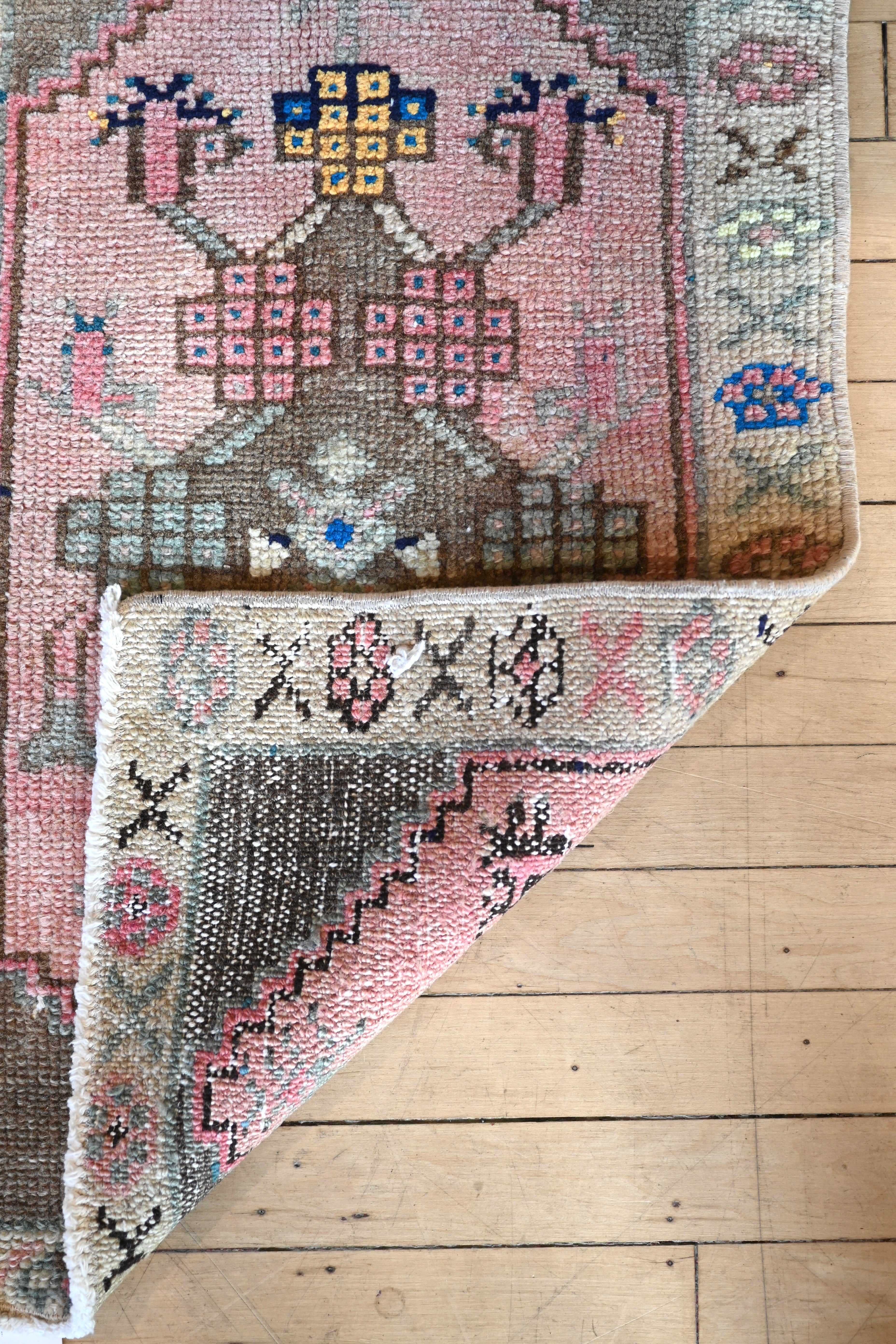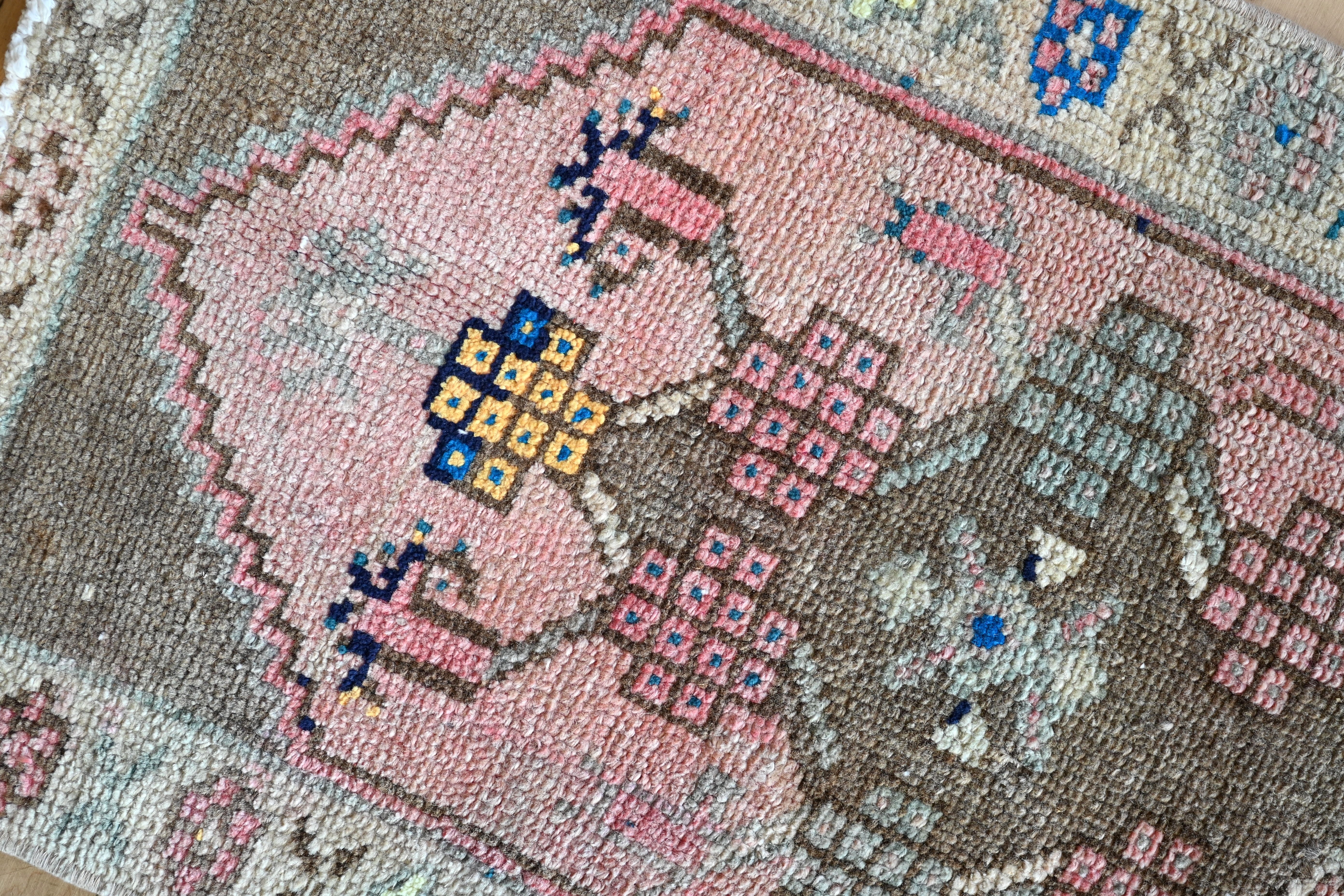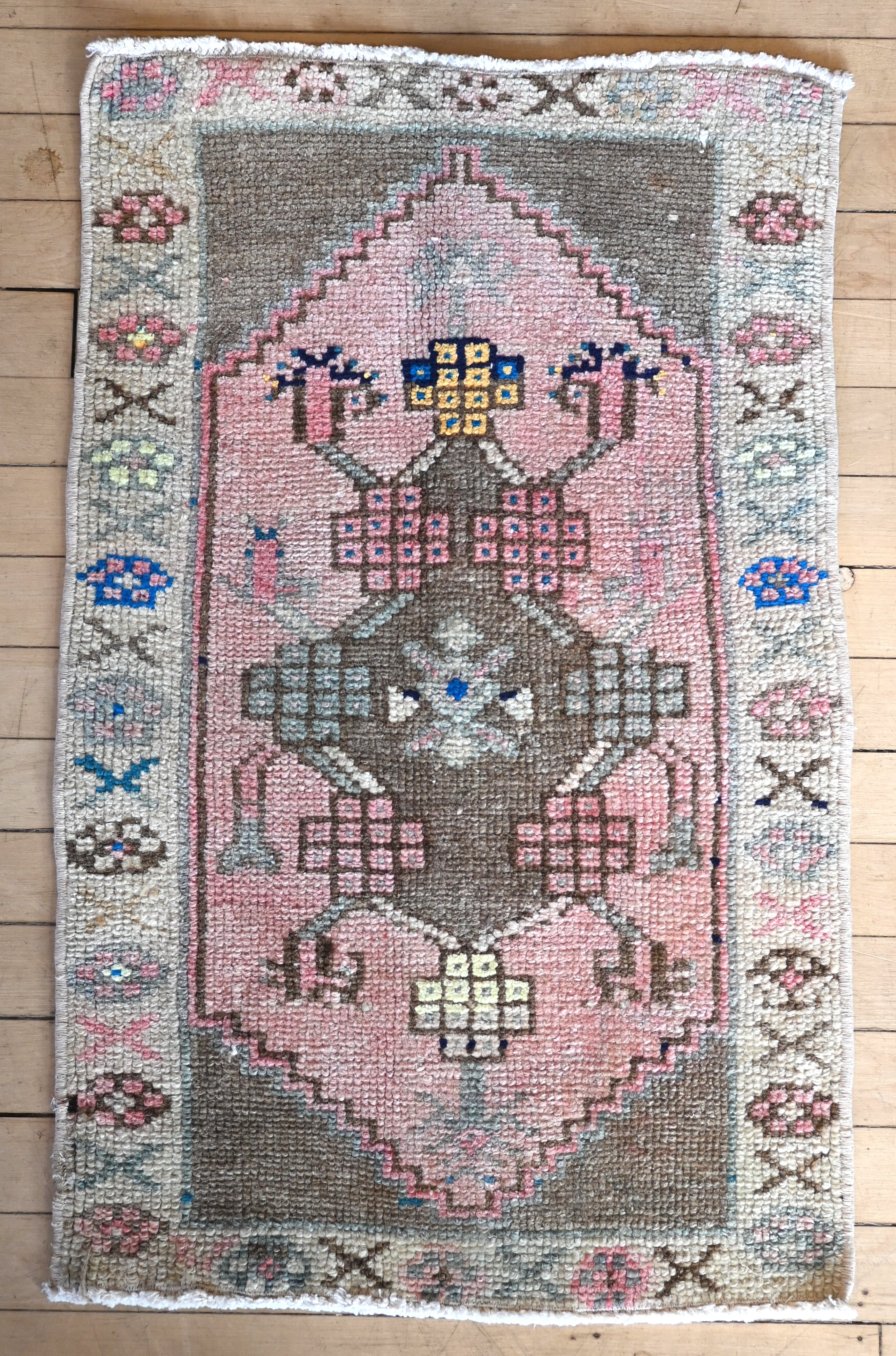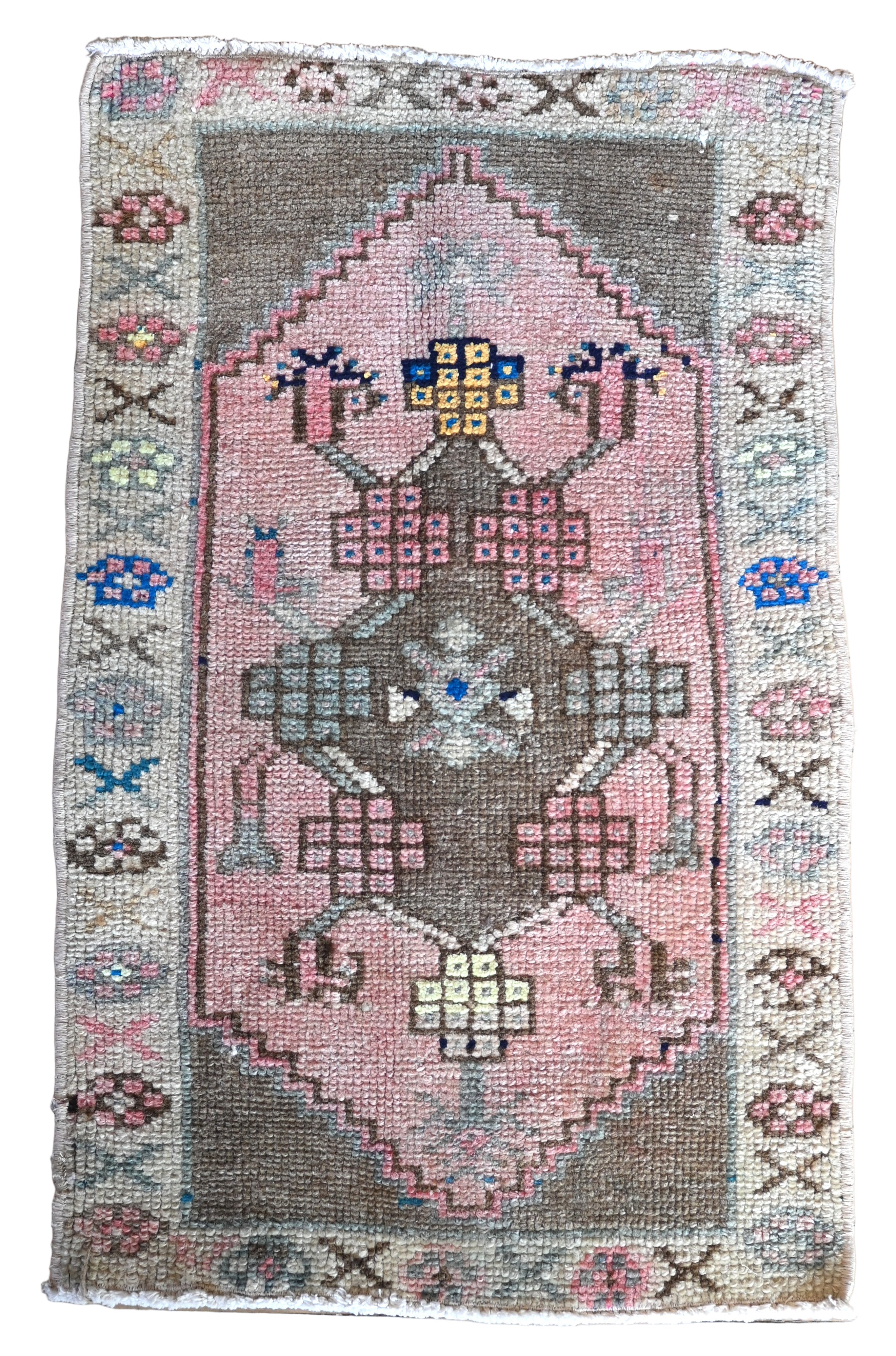 Petite Turkish Mat in soft brown, pink and accents of blue and yellow