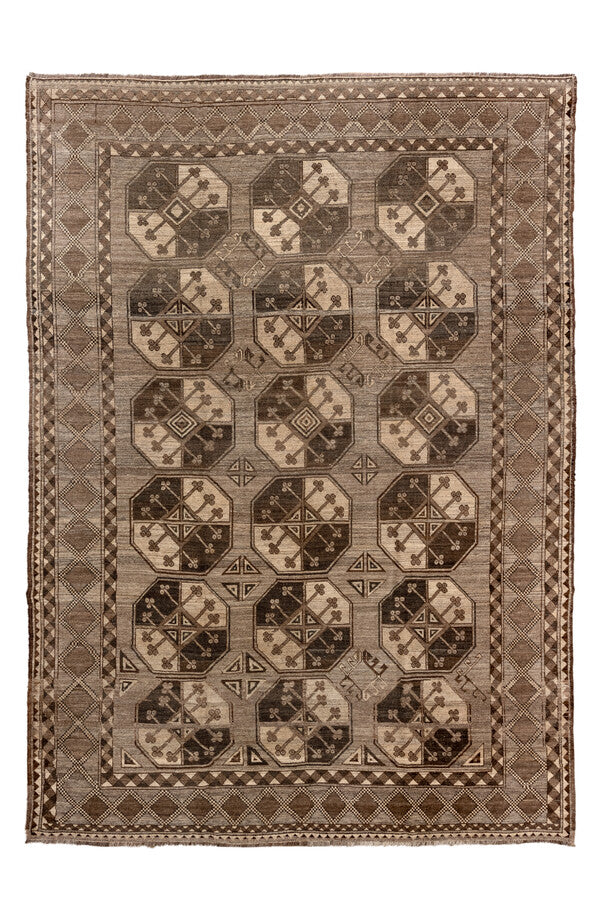 Ersari with neutral brown tones of cocoa, camel, and tan