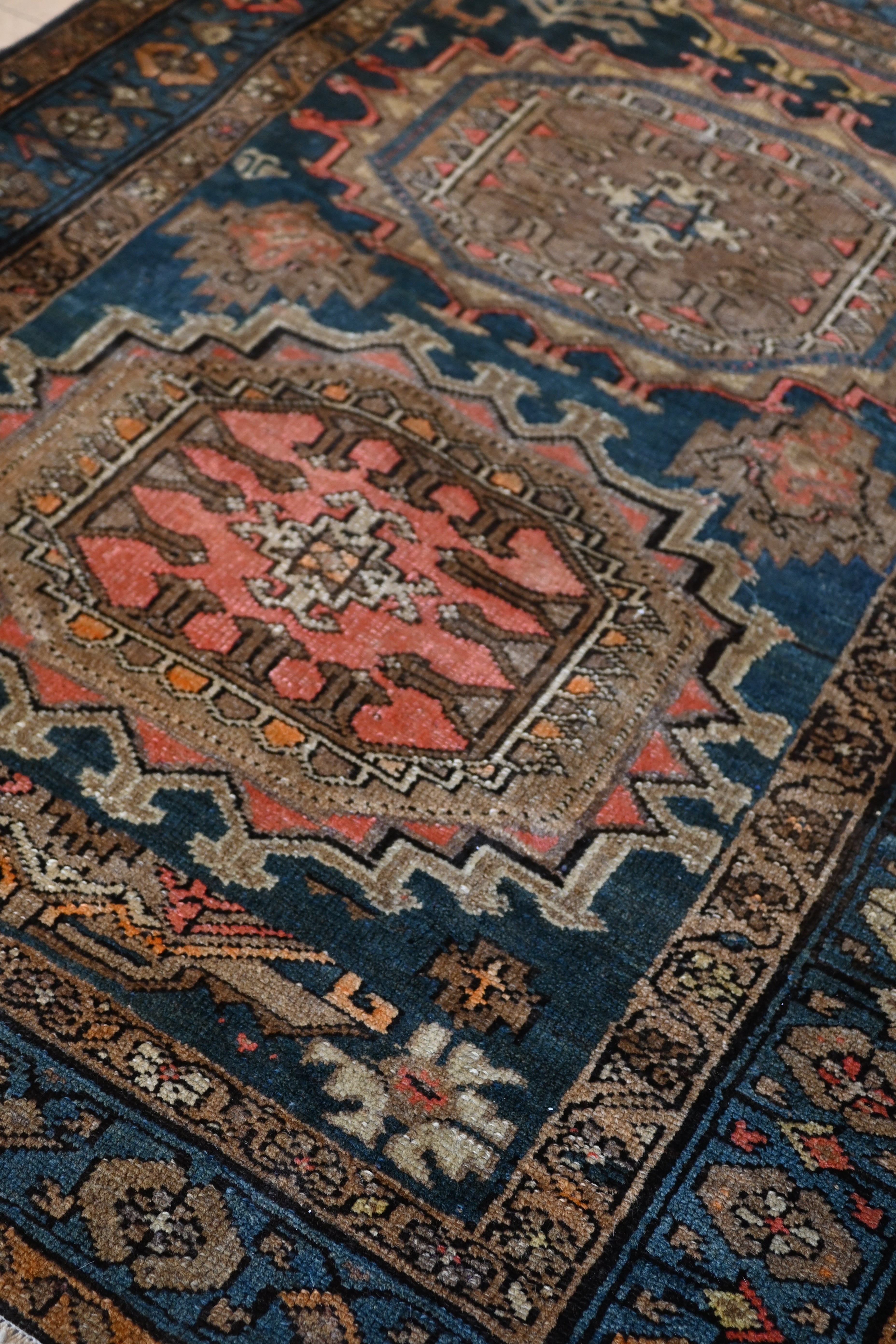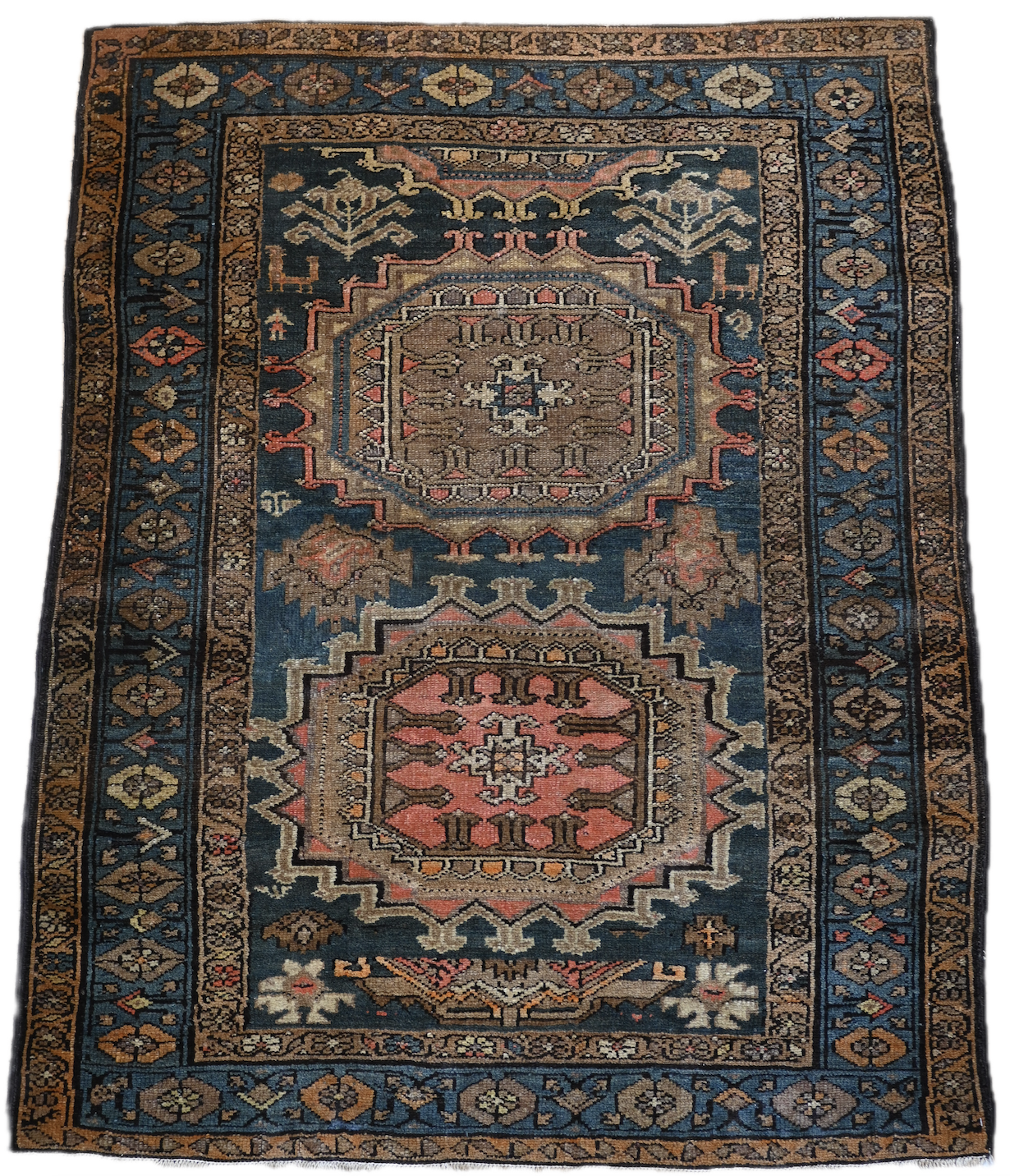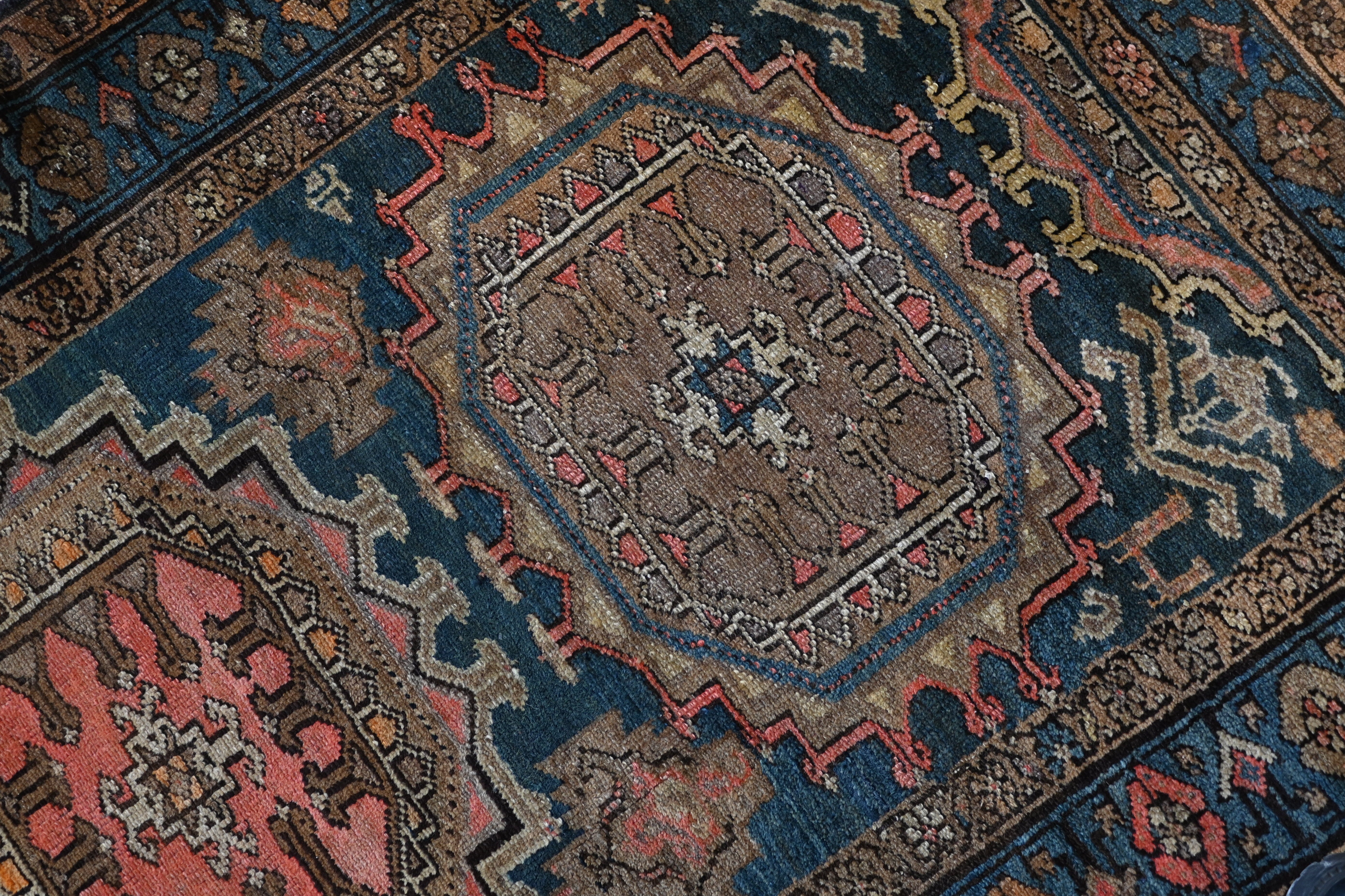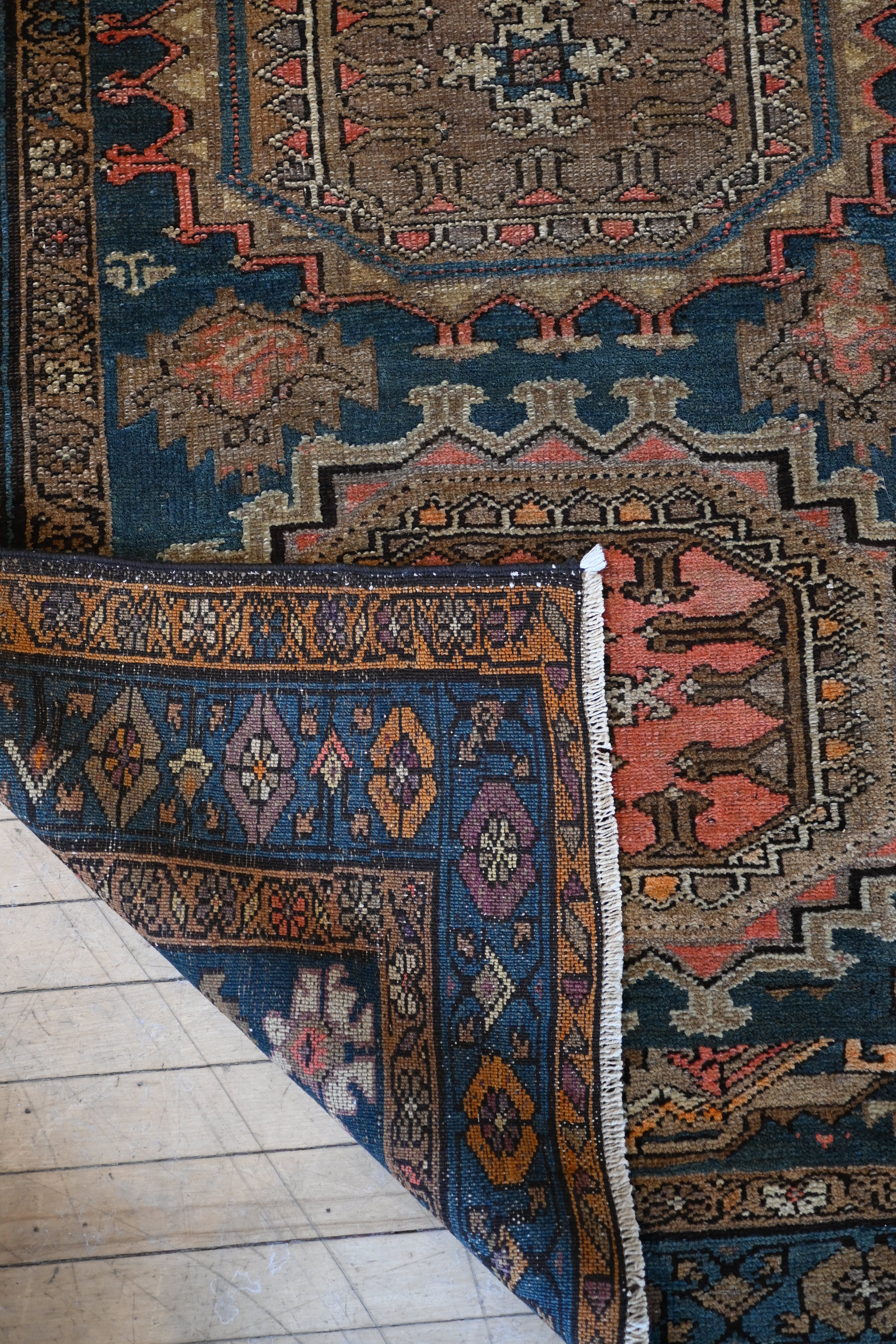 A fine quality Hamadan with indigo blue, camel brown, tangerine and ivory.