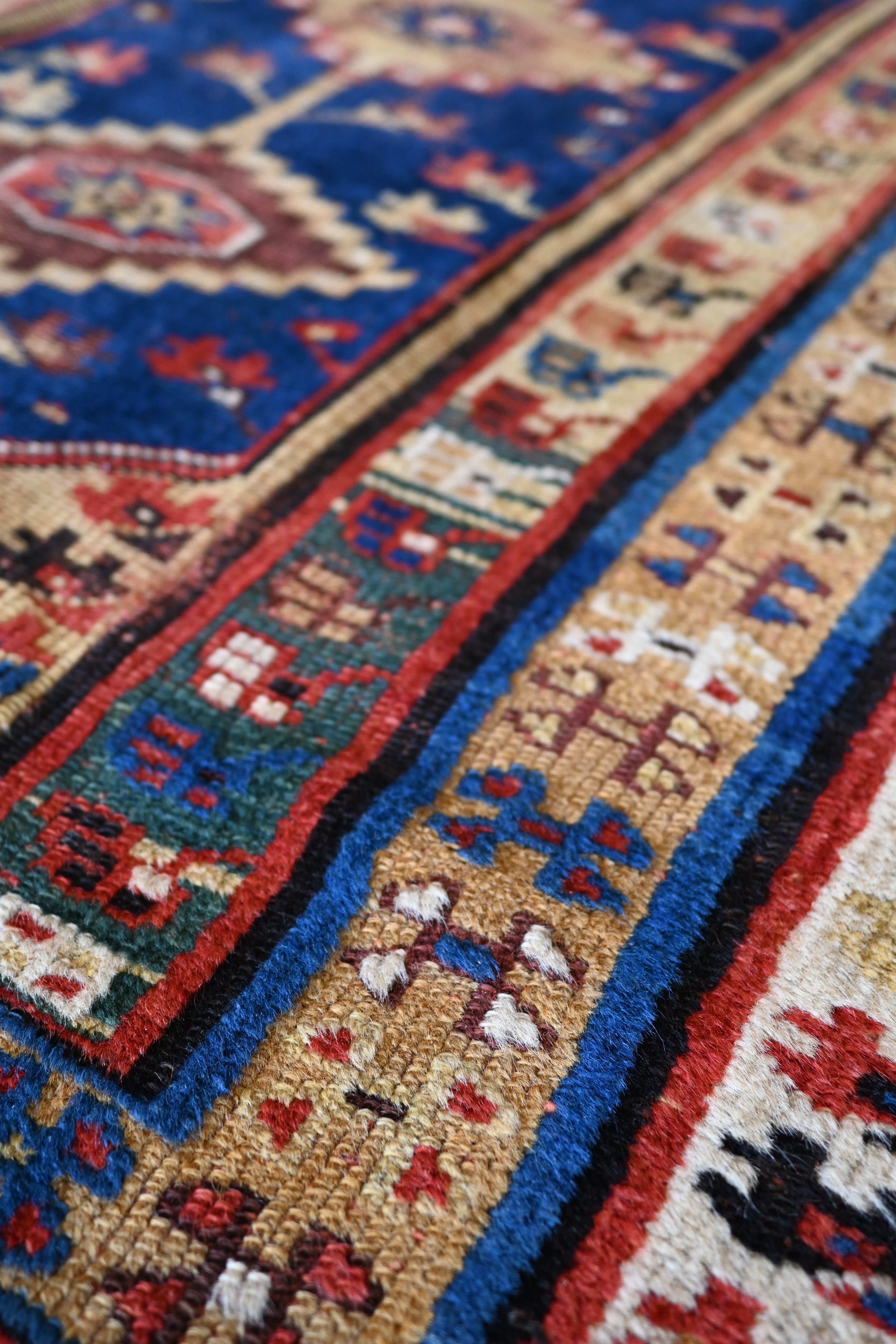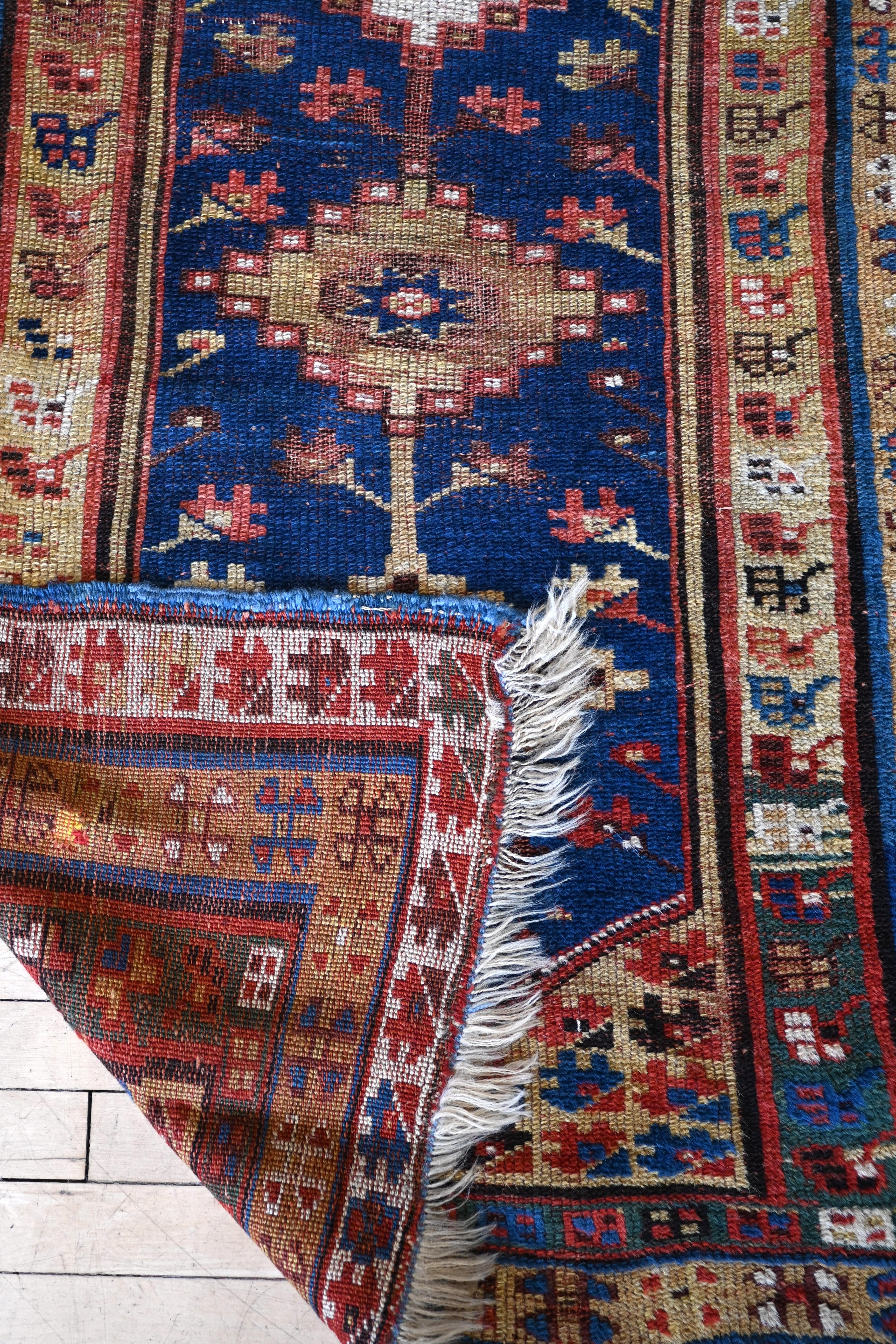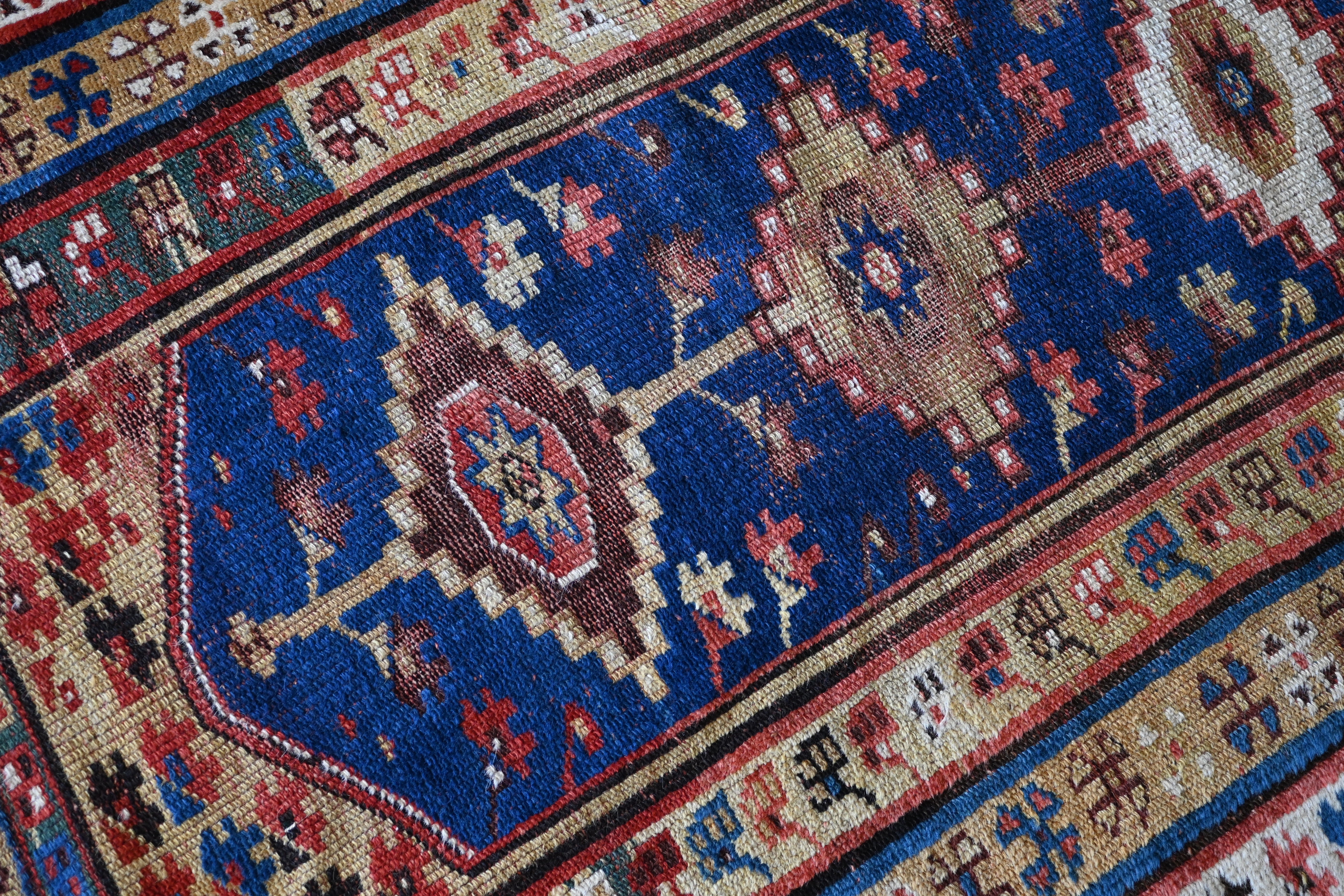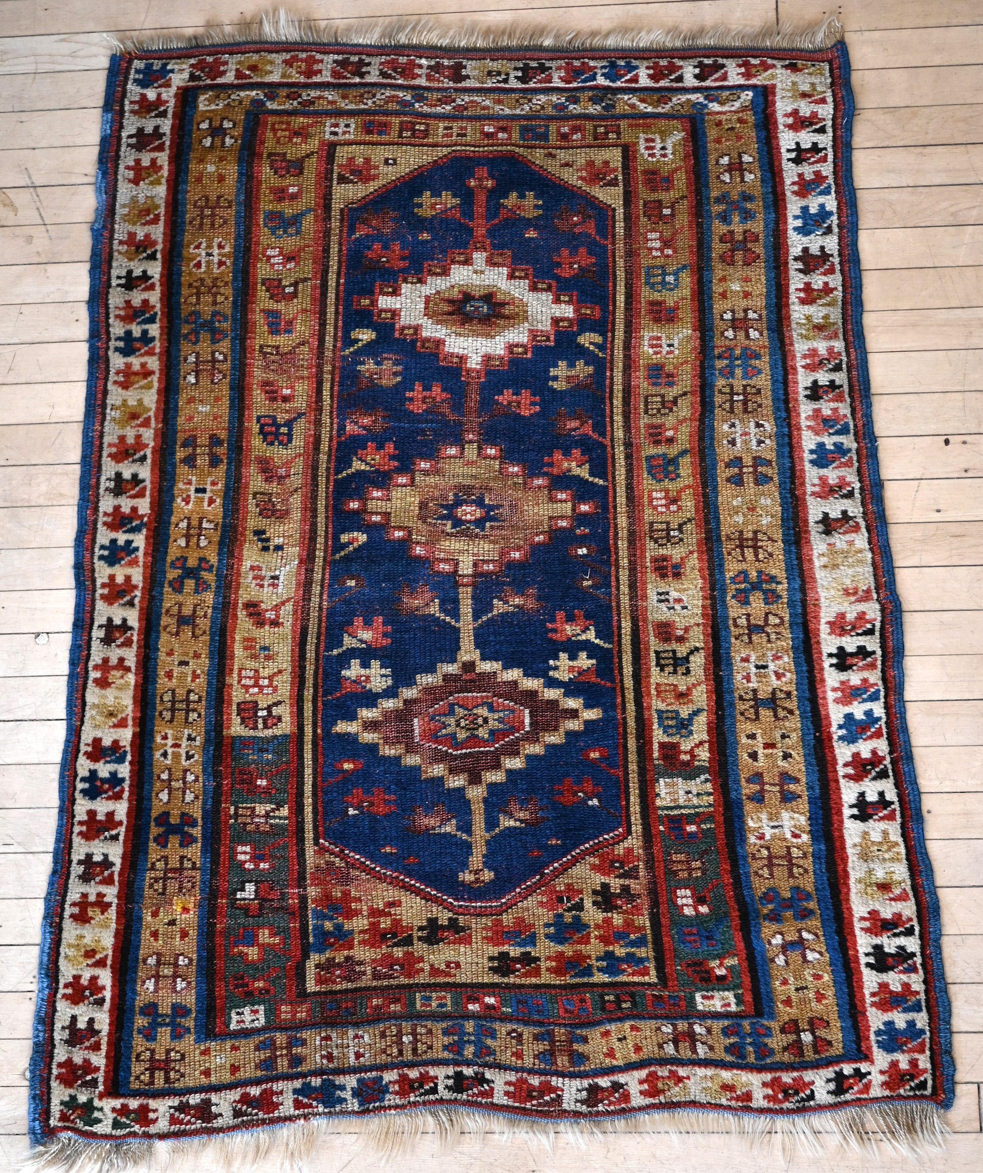 Late 19th century Turkish rug with indigo blue, golden yellow, coral, brown and ivory