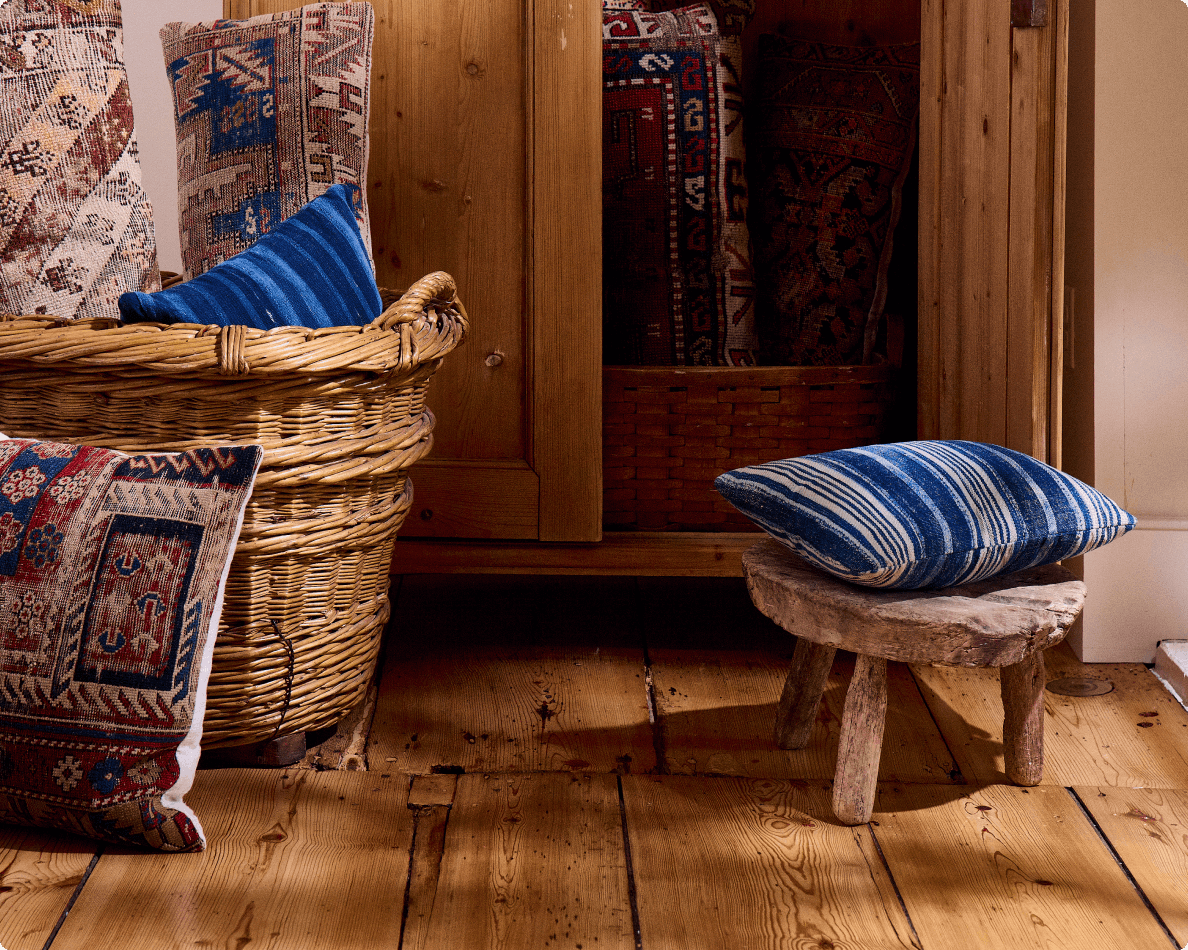 We gather and create smaller home furnishings utilizing antique textiles to complete your space.